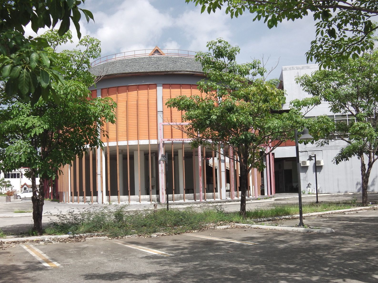 そこで、驚き。工業団地の一角にあった商業施設が、閉まっていた。裏にまわってみると。完全に閉館。