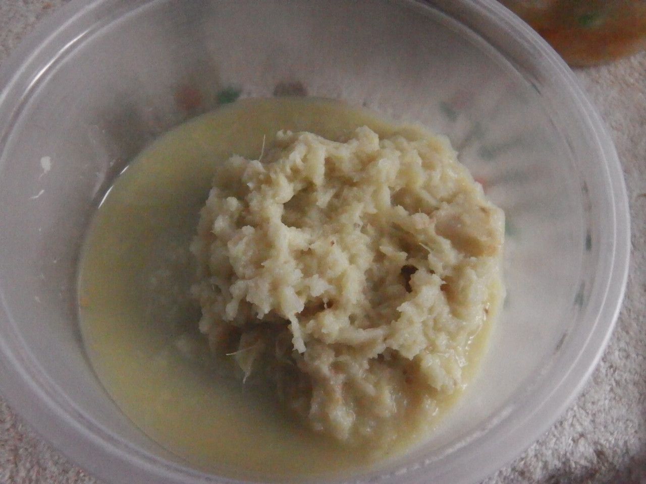 苦いといった情報もあったが、苦くも無し。これは、辛かった。この2種類に普通の生姜を加えて、すりおろす事に。水分がいつもより随分と多い。これに、いつもの如く。モズク三杯酢を入れてかき混ぜると、生姜だらけ。