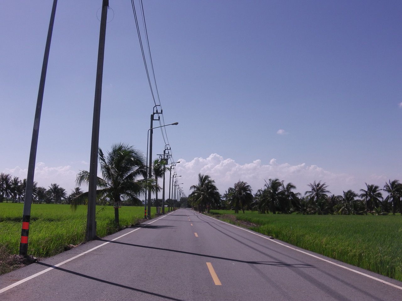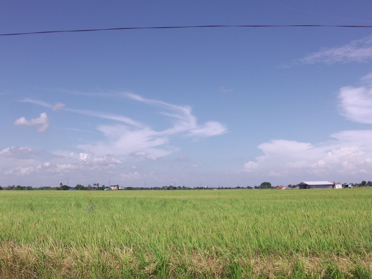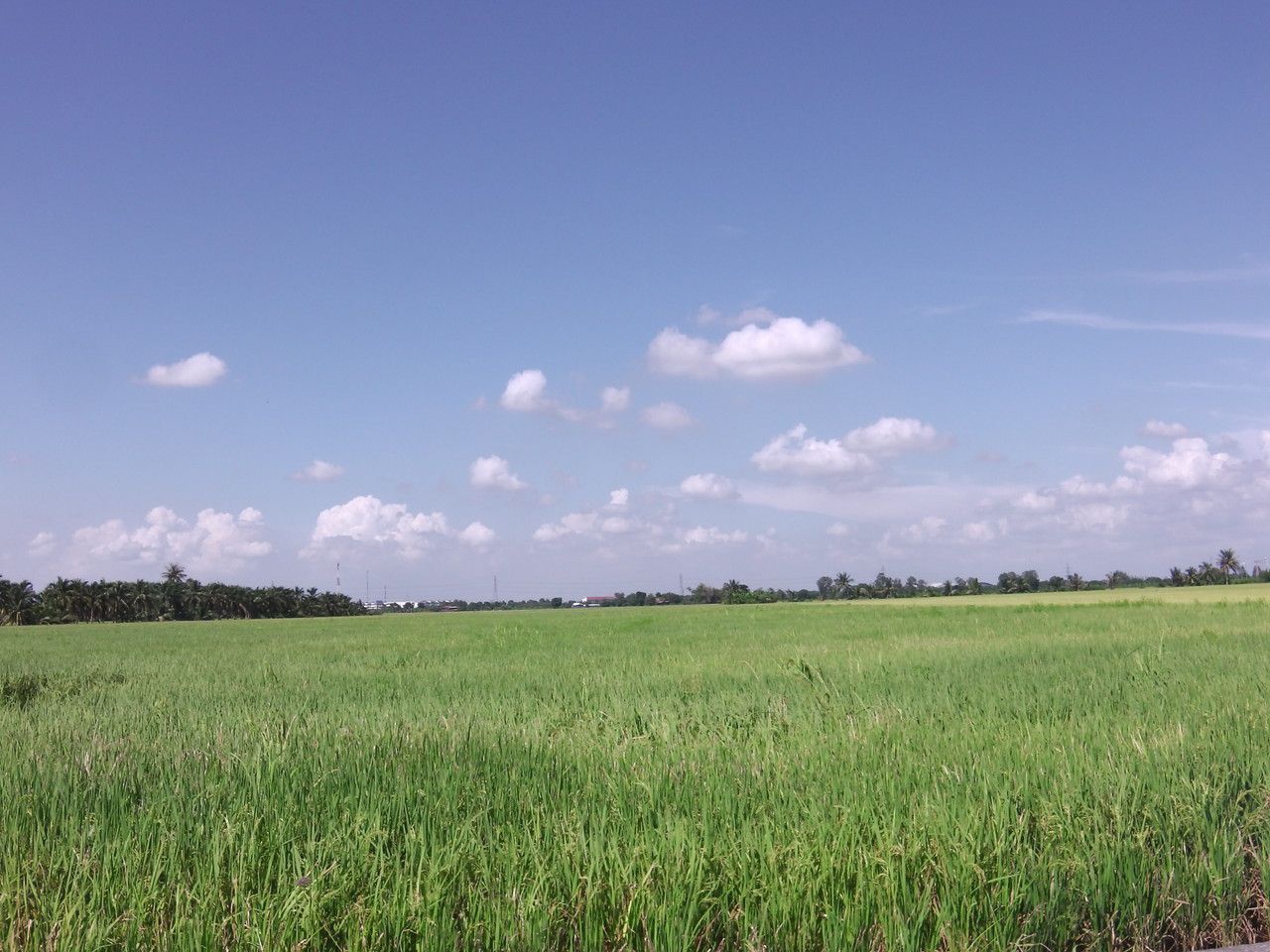 空の青さと、地面の緑が綺麗でたまらない。バンコク郊外でも、こんな景色が観られるとは感激。