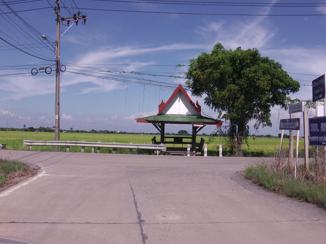 それにしても、少し密集していて日本の田んぼの姿とは異なる。その先には、溜池も。道のドン突きには、バス停かな??