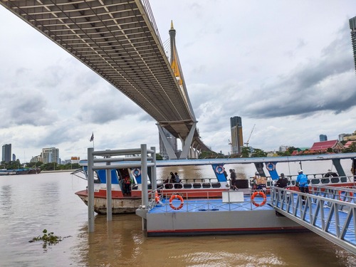 プミポン橋を見上げながら渡し船でサムロンへ 2022年08月17日 ワット パリワート見学の後は帰宅です。。。 まずは、プミポン橋の近くまで来ました。 現在地は、星で表しています。 此処から、川沿いの船着き場まで歩いて行き、渡し船で渡った後に、更に船着き場まで歩き、渡し船で渡る計画です。 船着き場までは、10分程度。 橋 ... 続きを読む