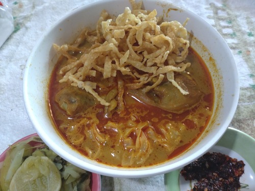 タイ料理店 ”マーン ムアン” カオソーイ 2022年09月27日 今回の最終目的地へ向かいます。。。 この通りを、グーグルマップで確認すると。。。 まさに、サマコーン通りでした。 閑静な住宅地を歩き続けて、何とか到着しました。 何んとも、入り口の雰囲気が良くてジロジロ。 味の或る入り口です。 テイクアウトしますと告げ ... 続きを読む