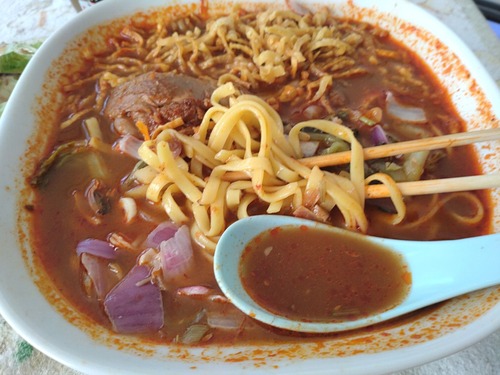 麺料理店 ナイウアン イェンターフォー 2024年01月26日 センチュリーを出た後は。。。 ソイ79へ。 入って、少し歩いた所に、こんな店が在ります。 何度か来た事があるのですが、麺料理の店なんです。 スープやら具材やら選択肢が多いので、悩んだ結果! これの”S”を注文しました。 すると、麺の種類を聞かれたので、中 ... 続きを読む