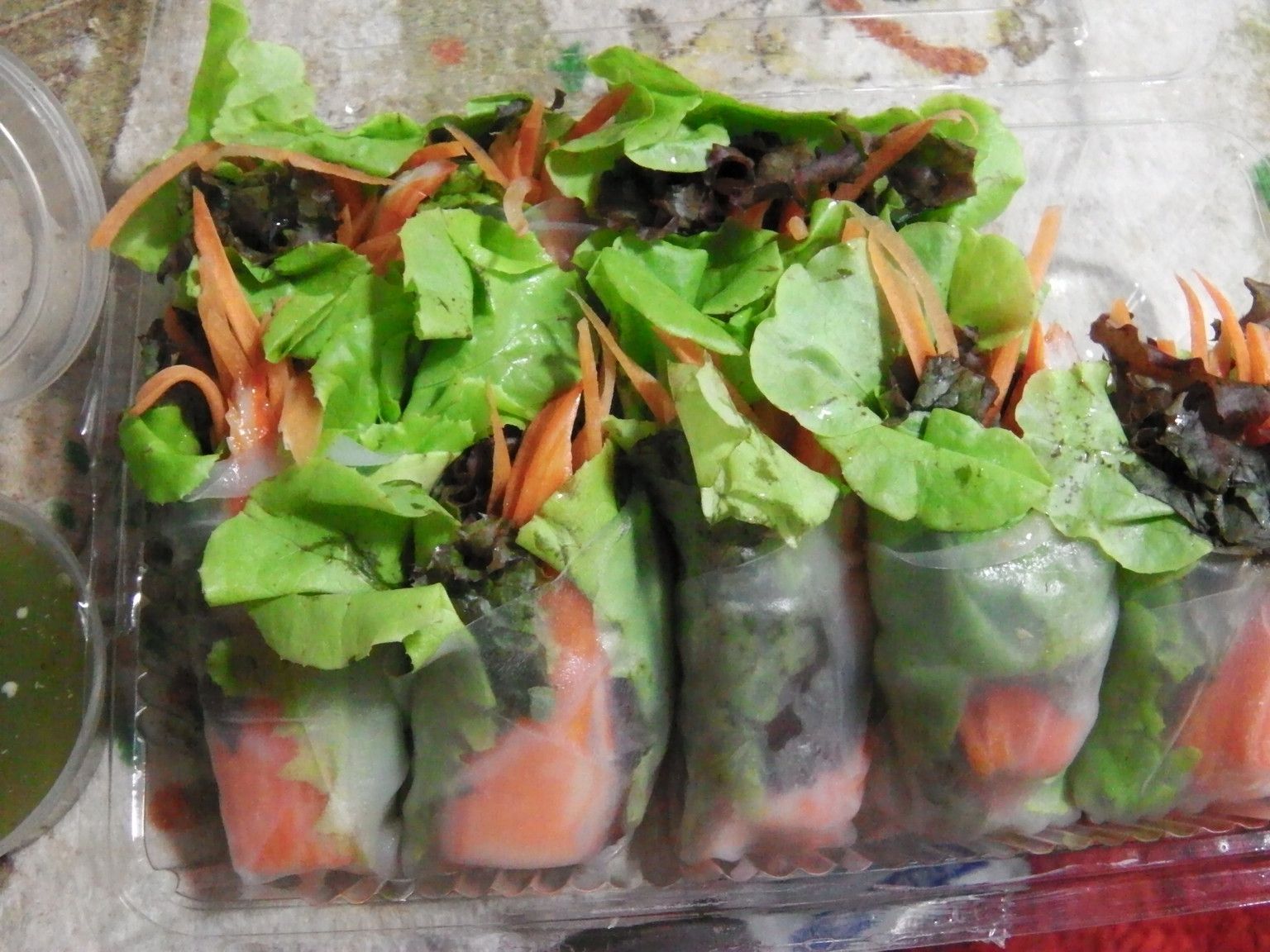 少し甘めの味なので、少し摘まむだけ。野菜には、ゴマドレッシングを少なめに掛ける。茶わん蒸しは、レンジで1分。