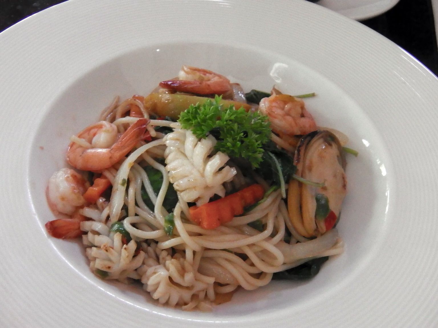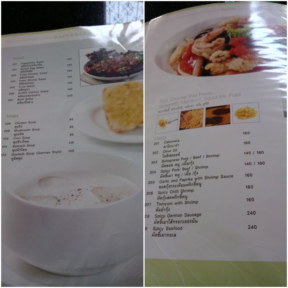 何と言う贅沢な時間。洋食から、タイ料理まで幅広い内容で、価格もお手頃。テーブルには呼び鈴が置かれ、店員を呼んでオーダーを告げた。お客さんの殆どが、タイ人の家族連れ。