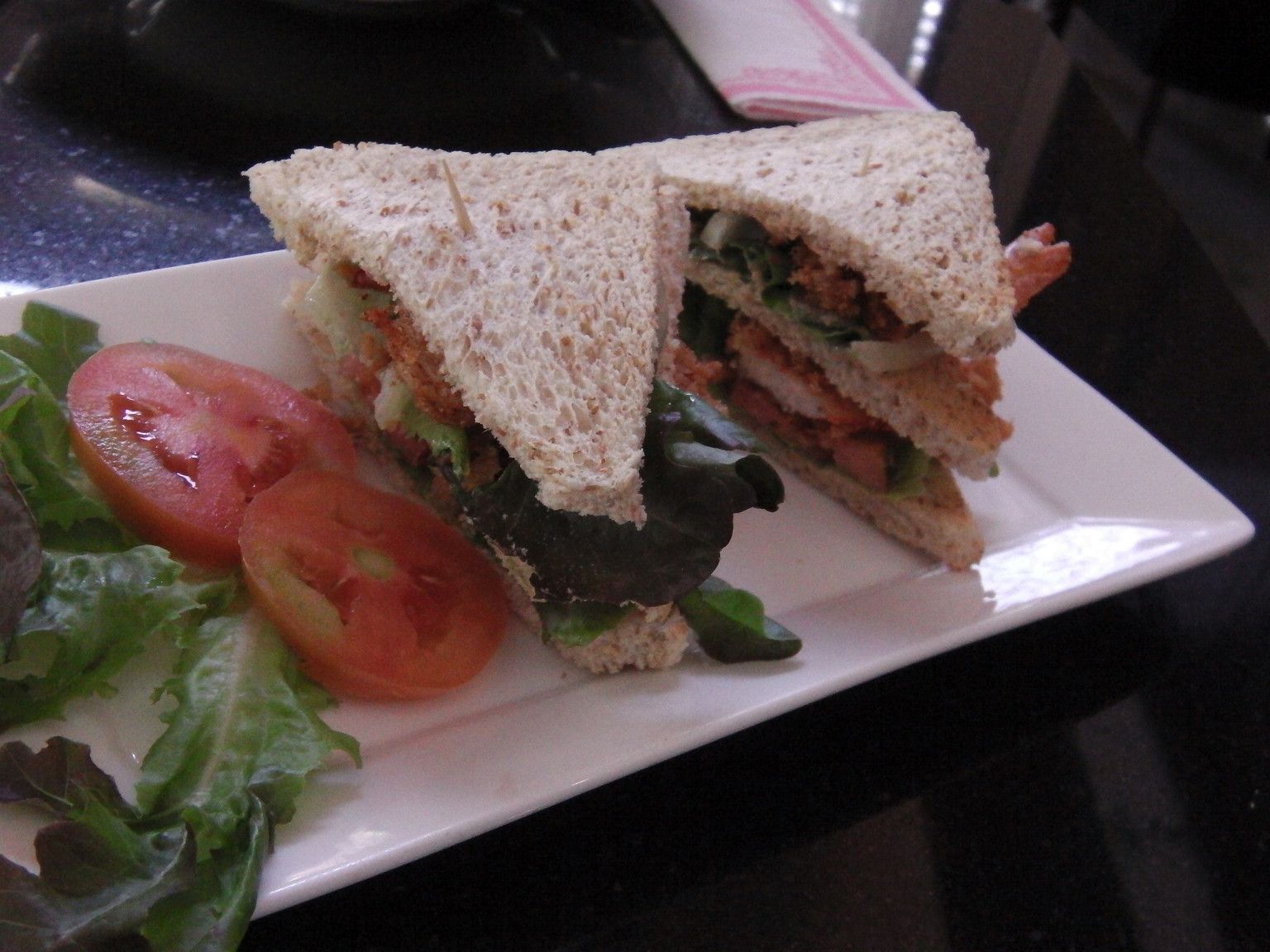 口の中で、コーンの粒々感が味わえた。そして、海老の唐揚げのサンドイッチ。かぶりついて食べた。彼女は、スパイシーパスタ。絵も苦手です!!