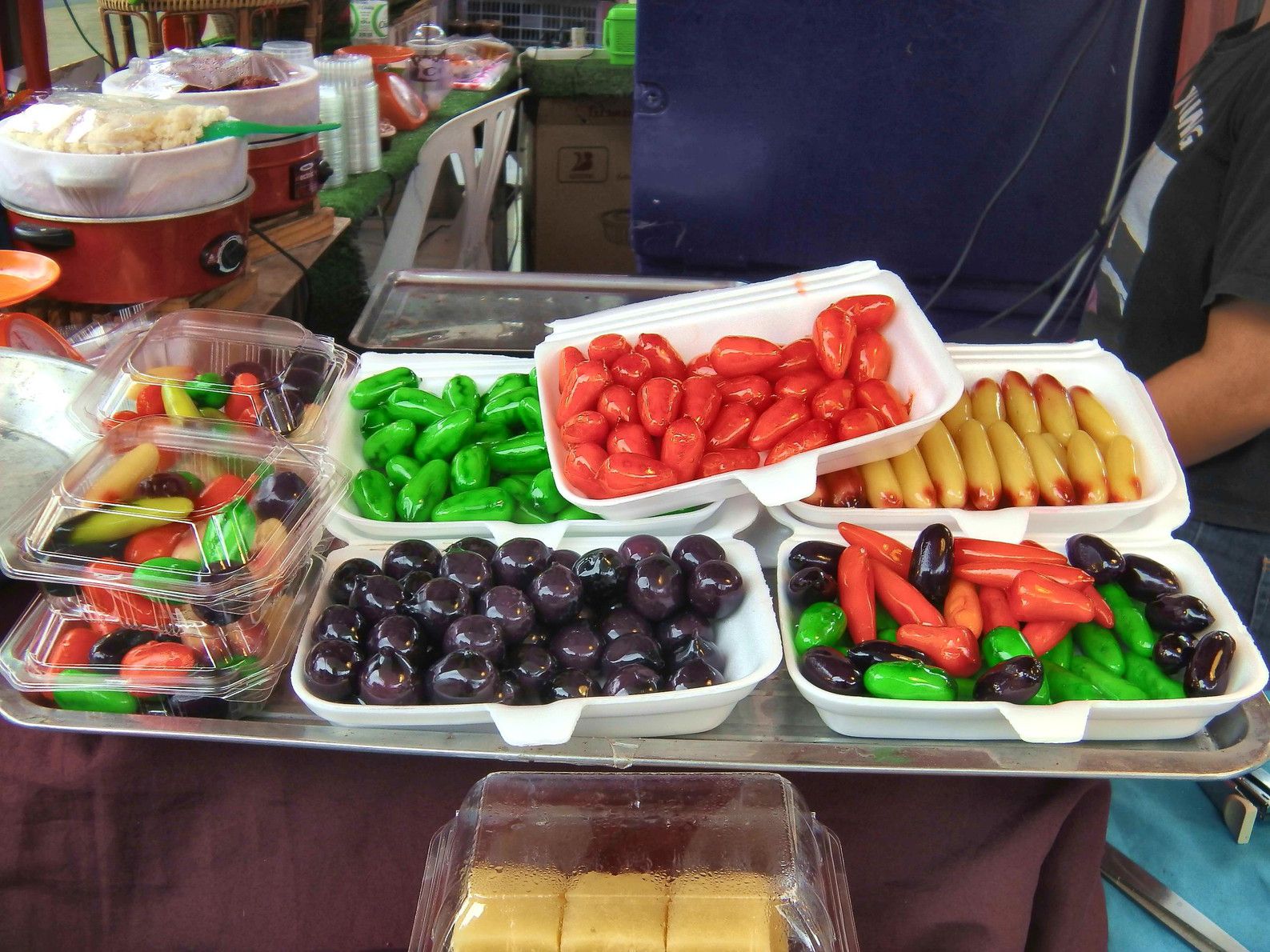 そして、ちょっと興味を引く売り場が。餅菓子があったので、しかも3つで100バーツだと言うので購入。