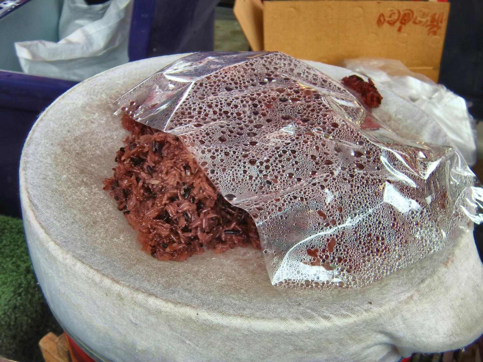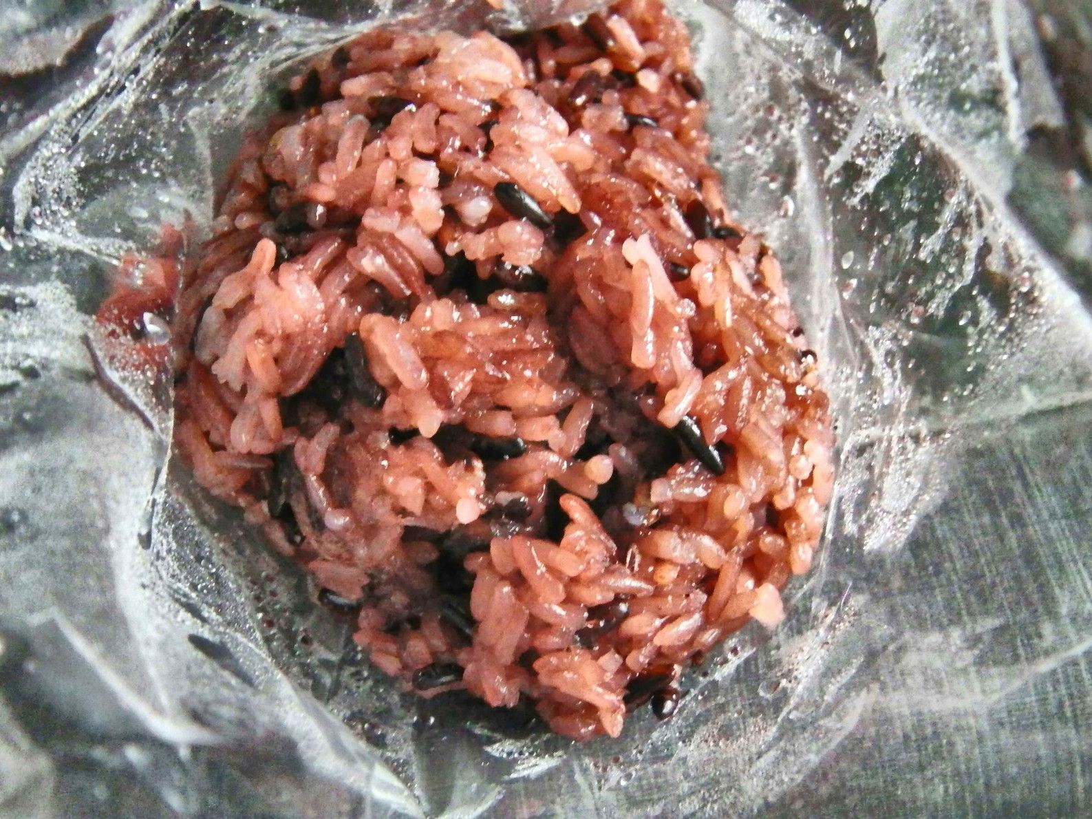さて、家に戻って見てみると。そして、よーーーーく見ると。タイには、濃い紫色の米が売っているが、それかな??