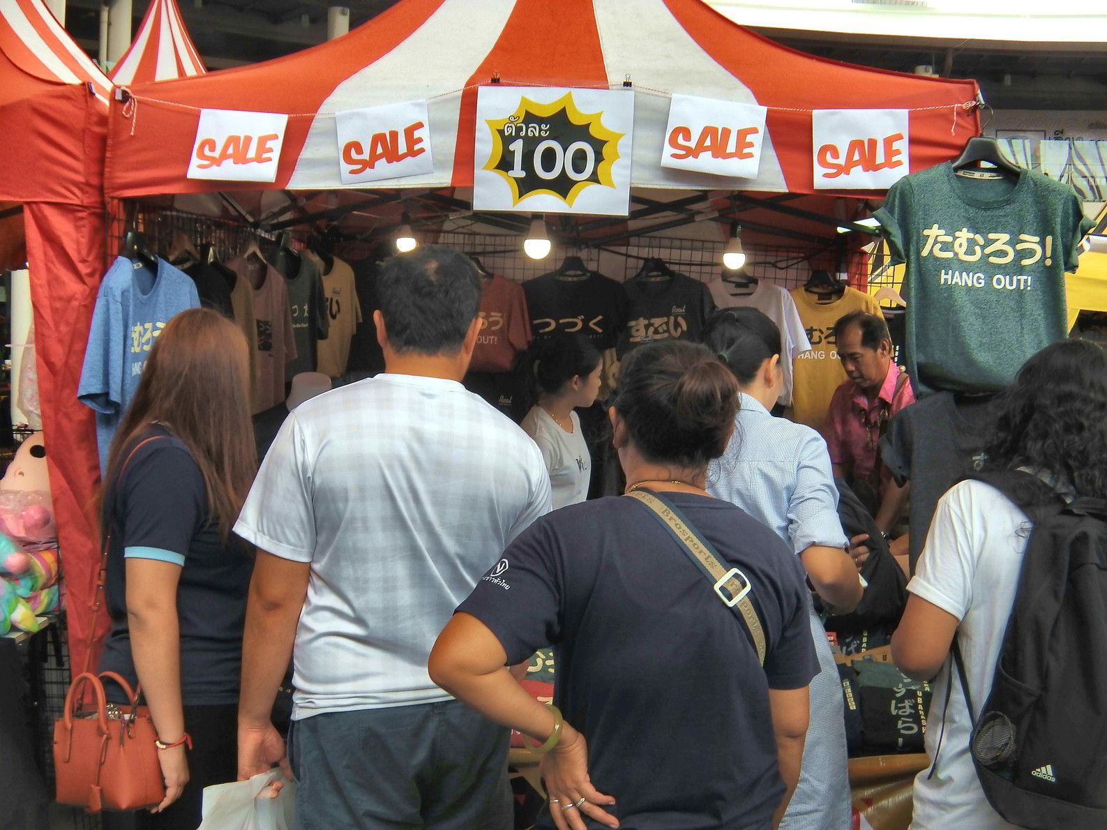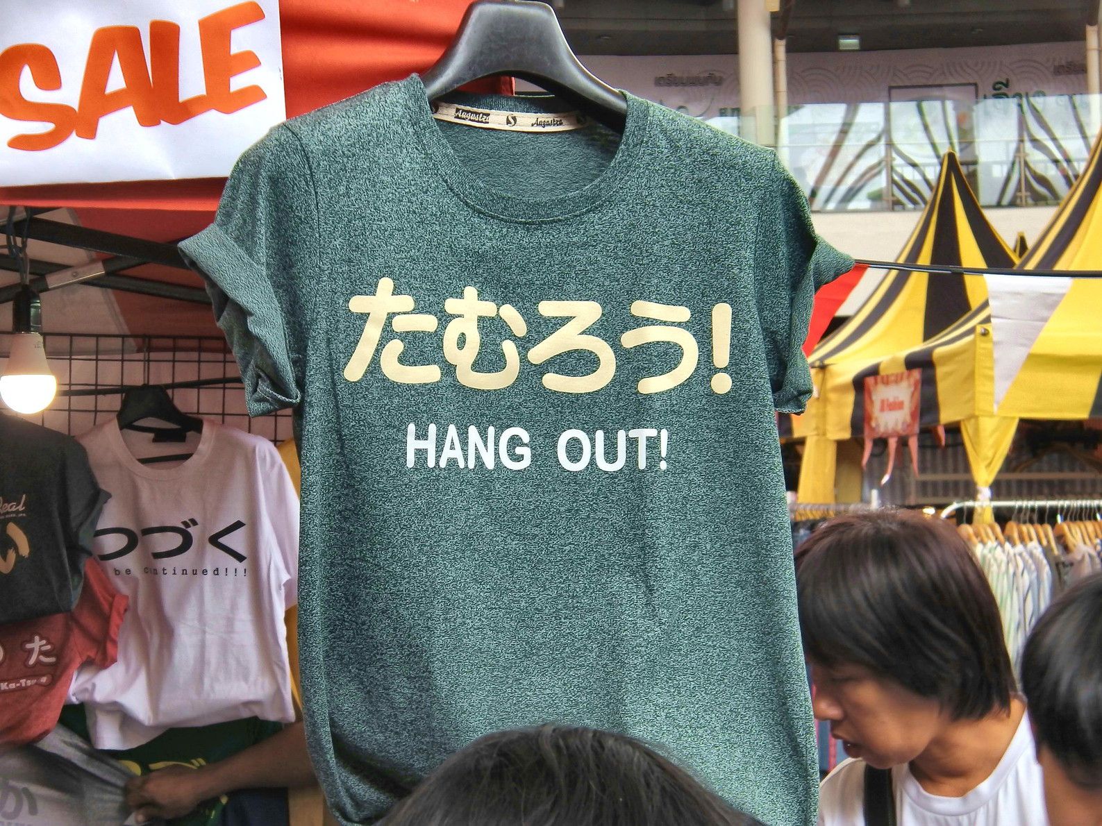 折角なので、ぶらぶらと見て周った。特に興味を引かれる物も無く、見ていた。地方の名物のような物も無かったが、一応最後まで見ようと思った。一番の評判は日本語が入ったTシャツの販売。訳が判らん!