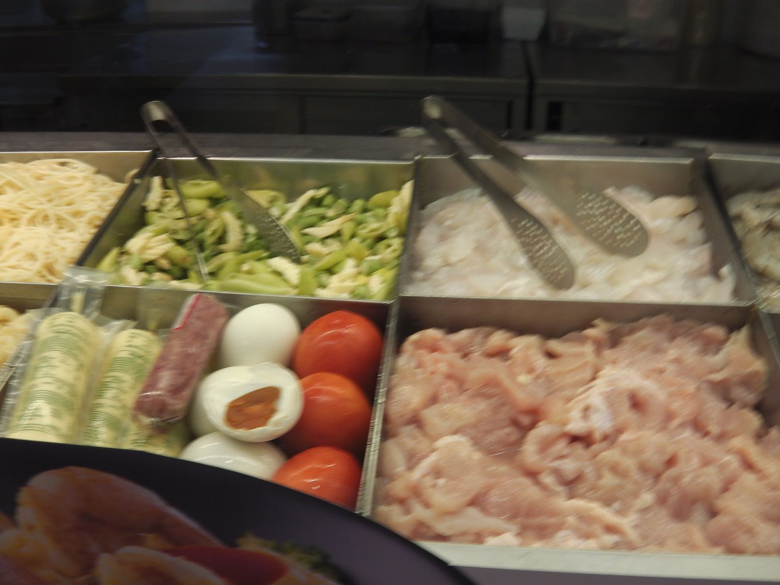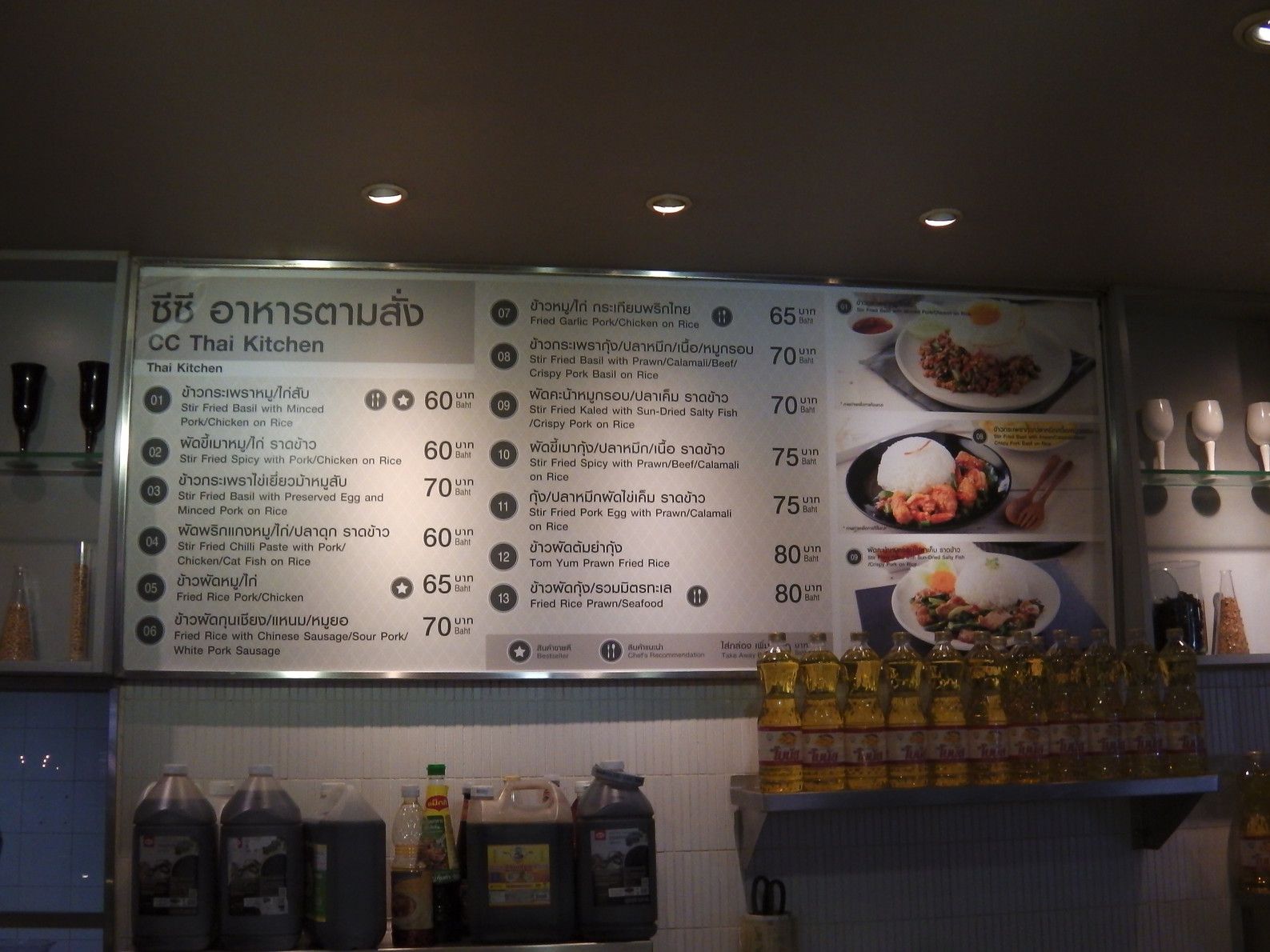 一時は、この平麺を食べようかと思ったが、結局は。。。タイ飯に決めた。パッカパオガイ+目玉焼きを注文。