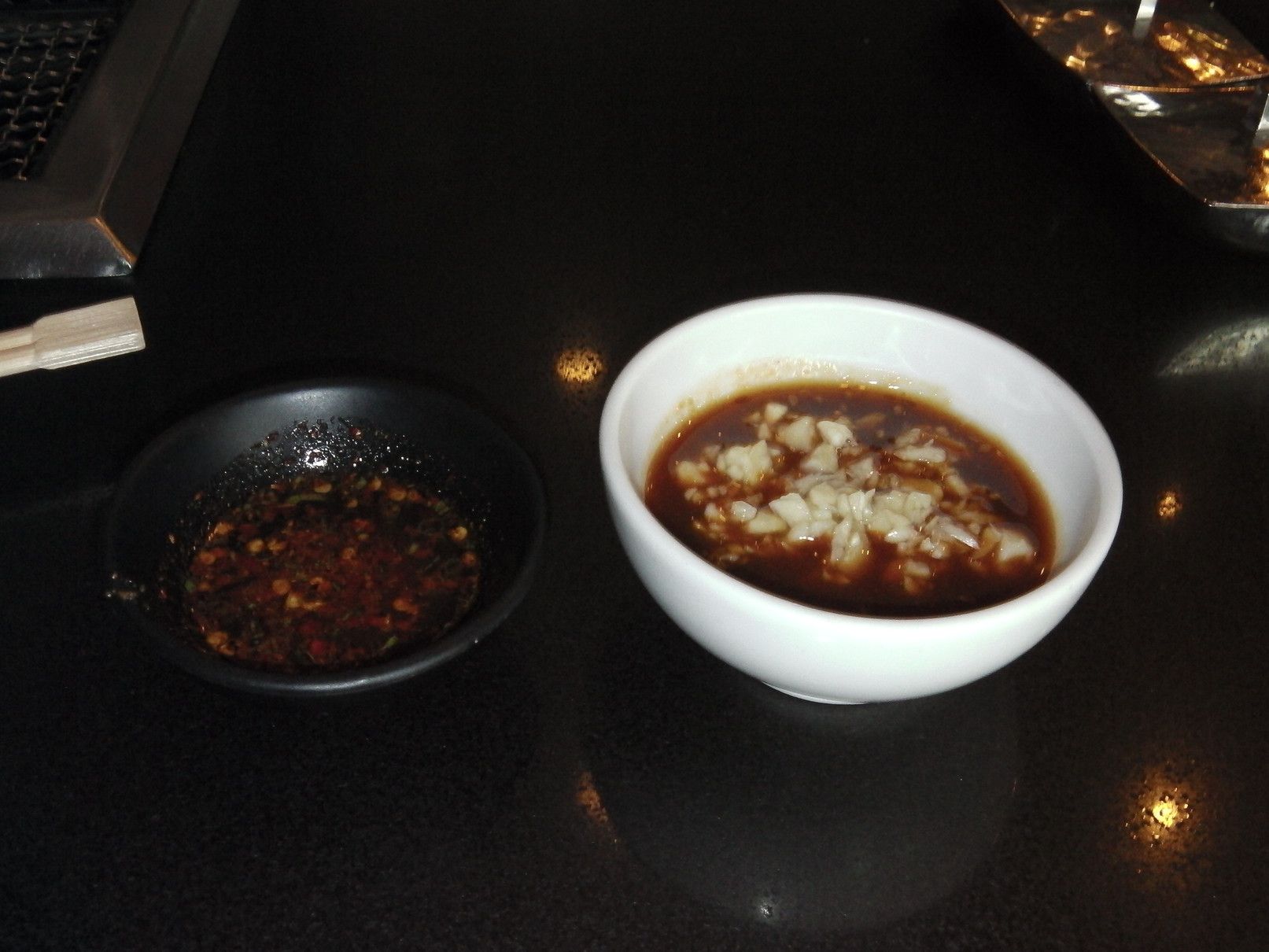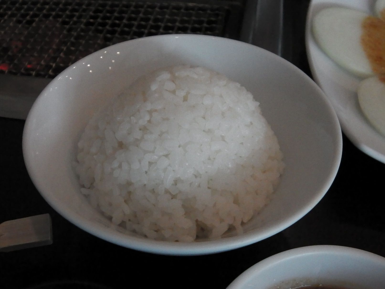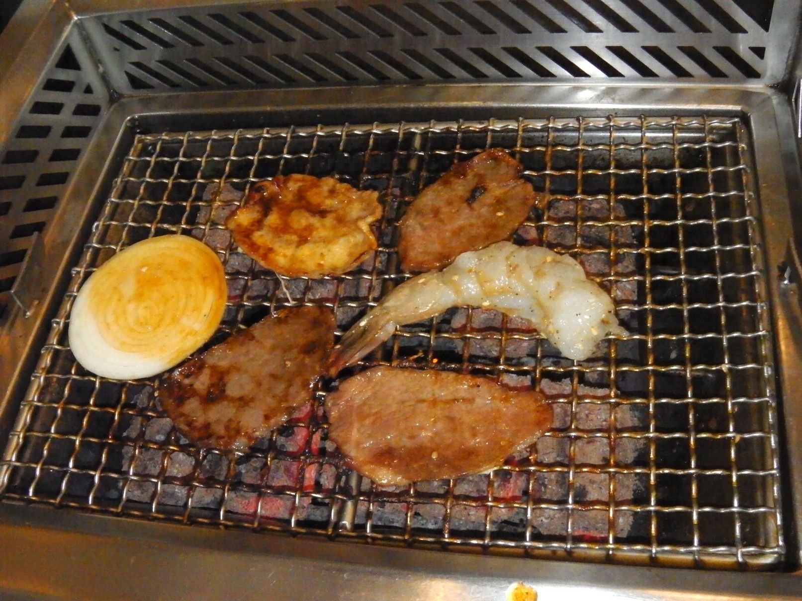 この店の場合は、煙の吸い込み口は、網のサイドにあるタイプ。俺は、タレにはニンニクだけ入れる。