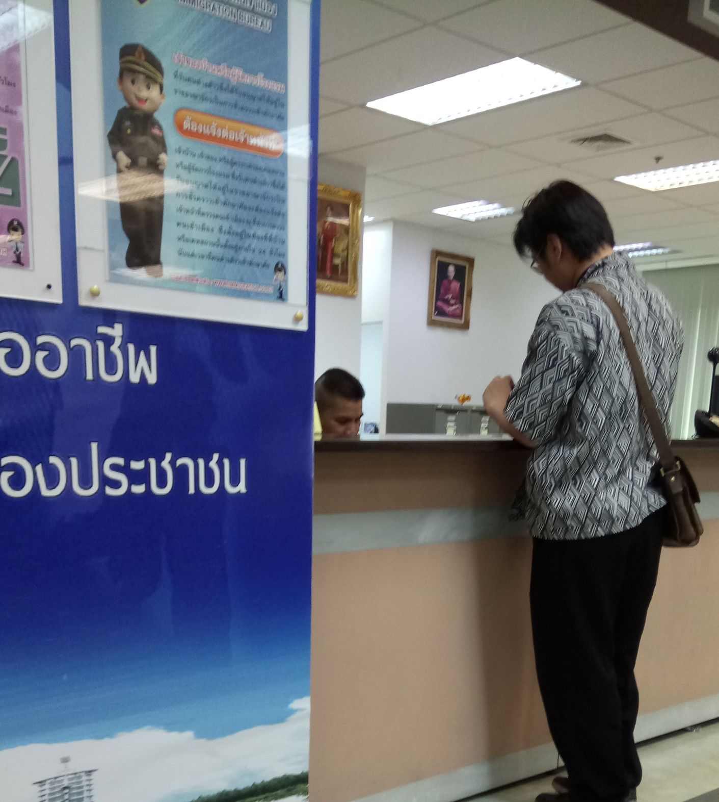 最初は、労働許可証の更新。座って待っててくれとの事だったので、窓際の席に座る。シーロムも近い場所。すぐ下には、チュラロンコン大学。少し待って呼ばれた。別室に入ると、待ち行列が出来ていたが、直ぐに呼ばれて写真撮影などが行われ、加えてスマホにプログラム導入を指示され、ワークパミットの手帳は取り上げられた。次は、ビザ更新。凄い人。