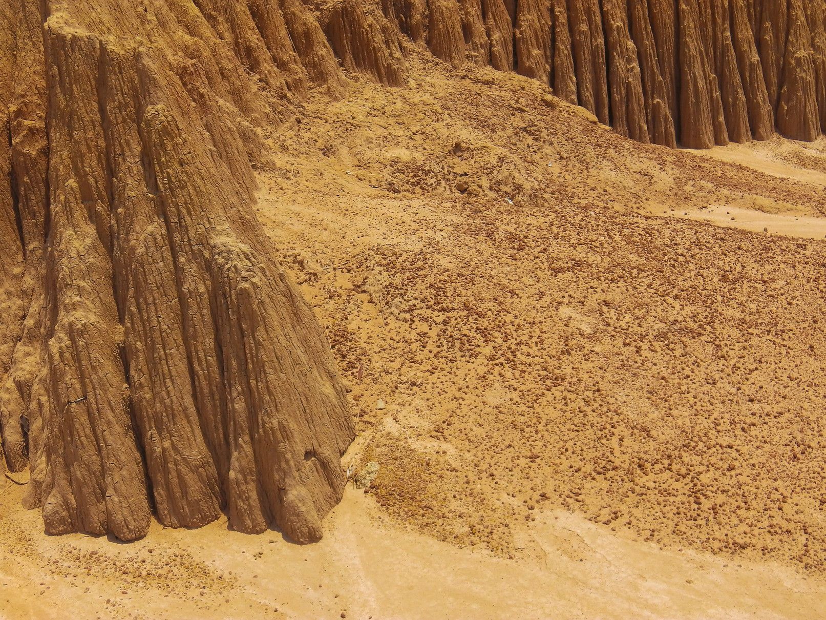 凄く細かい土。この天辺は、元々の地べただったのではないか?この景色からも、そう考えられるかな?
