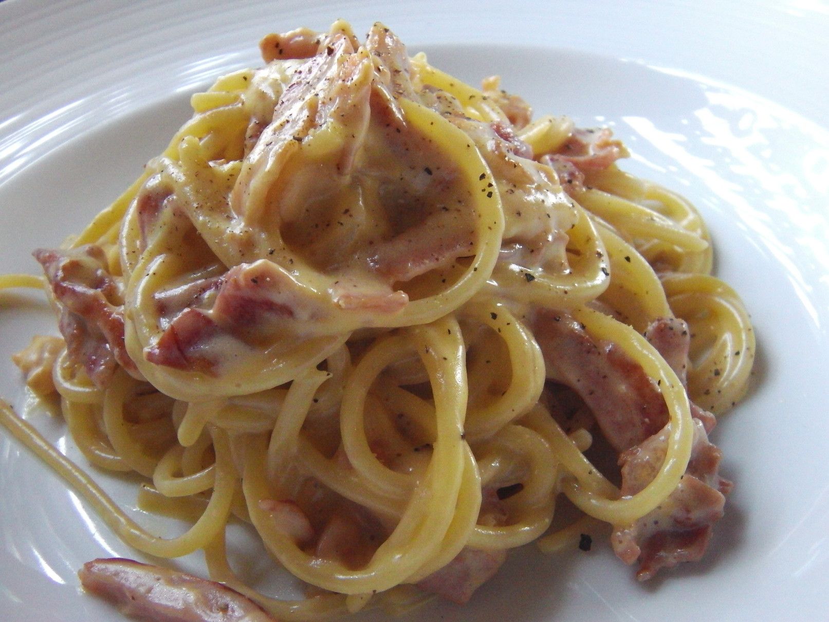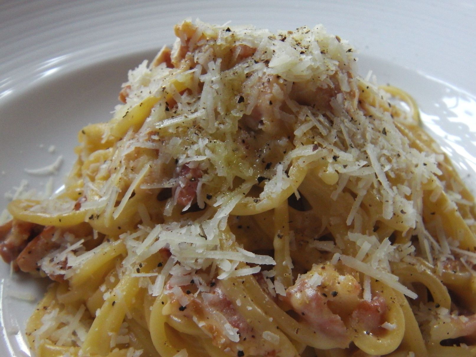 相方がオーダーしたスパゲッティ。俺は、大好きなカルボナーラ。これに加えて小皿も。これを掛けて、少しオリーブオイルも。