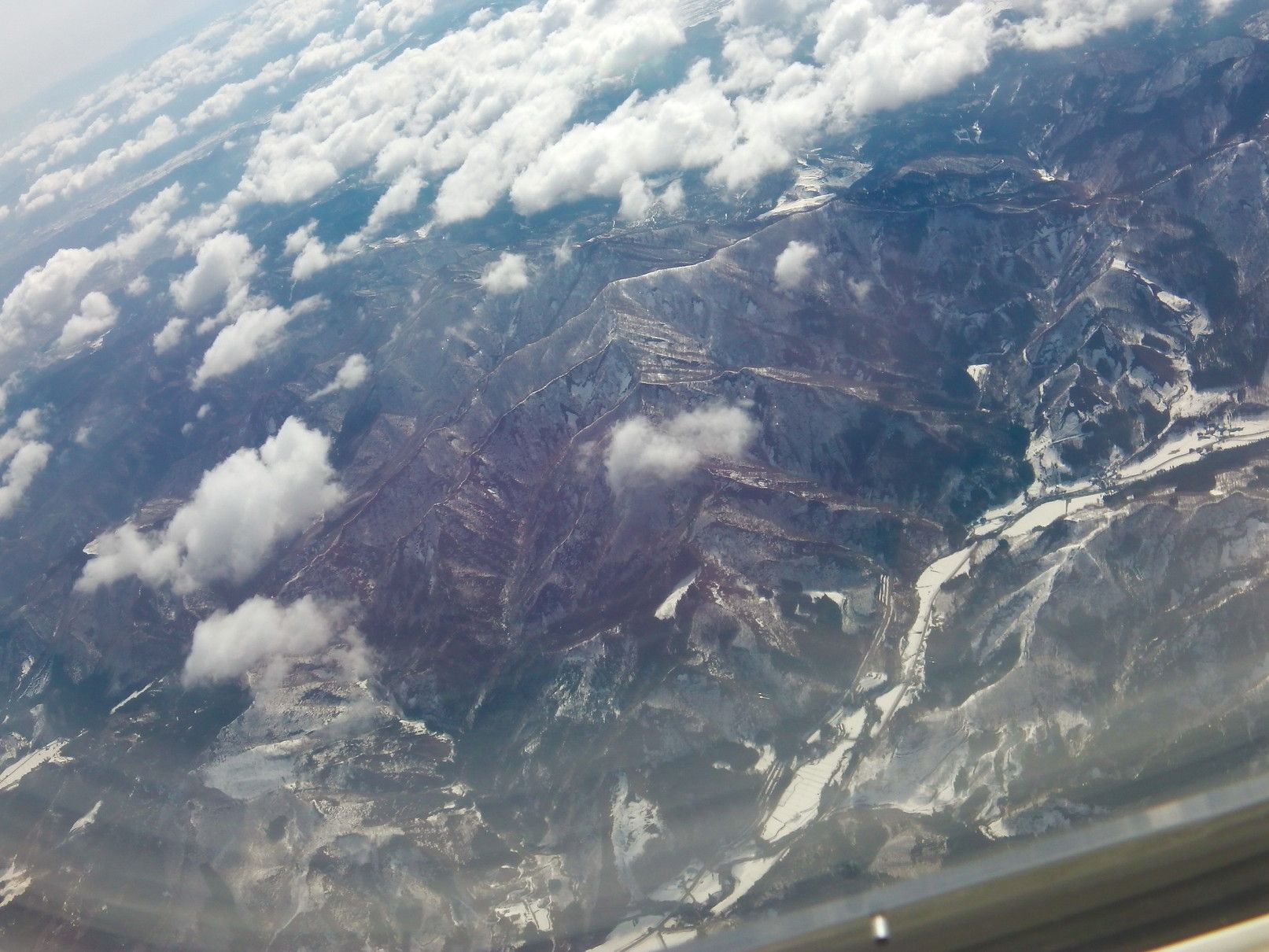 羽田では、国内線に乗り継ぎ。東京は、生憎の雨。しかし、秋田に近づくと雲が少なくなり、まだ消えない雪も見えてきた。
