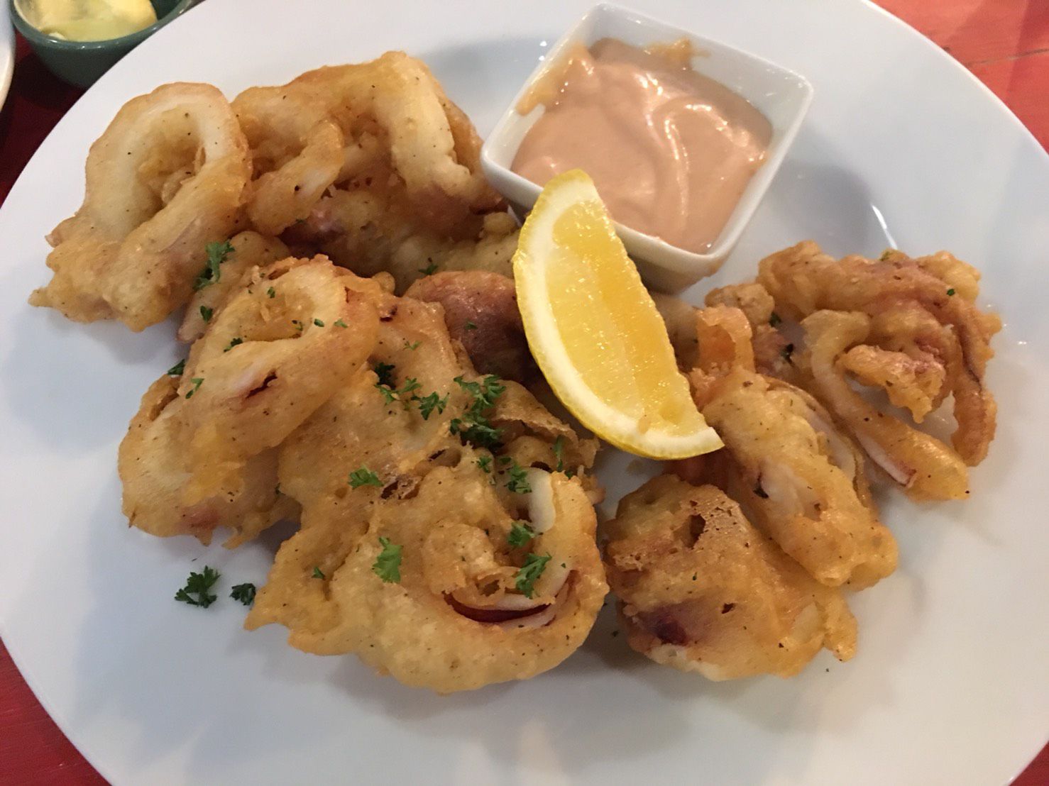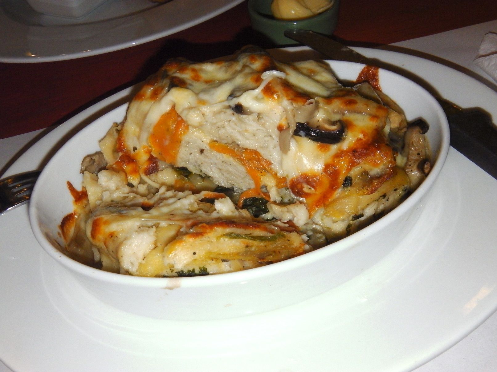 柔らかくて美味しいと食べていた。烏賊の揚げ物。俺が、オーダーしたのは、ベジタブルラザニア。これが、キノコやら野菜やら、非常に多くの材料で作られているに加え、ボリュームがある。