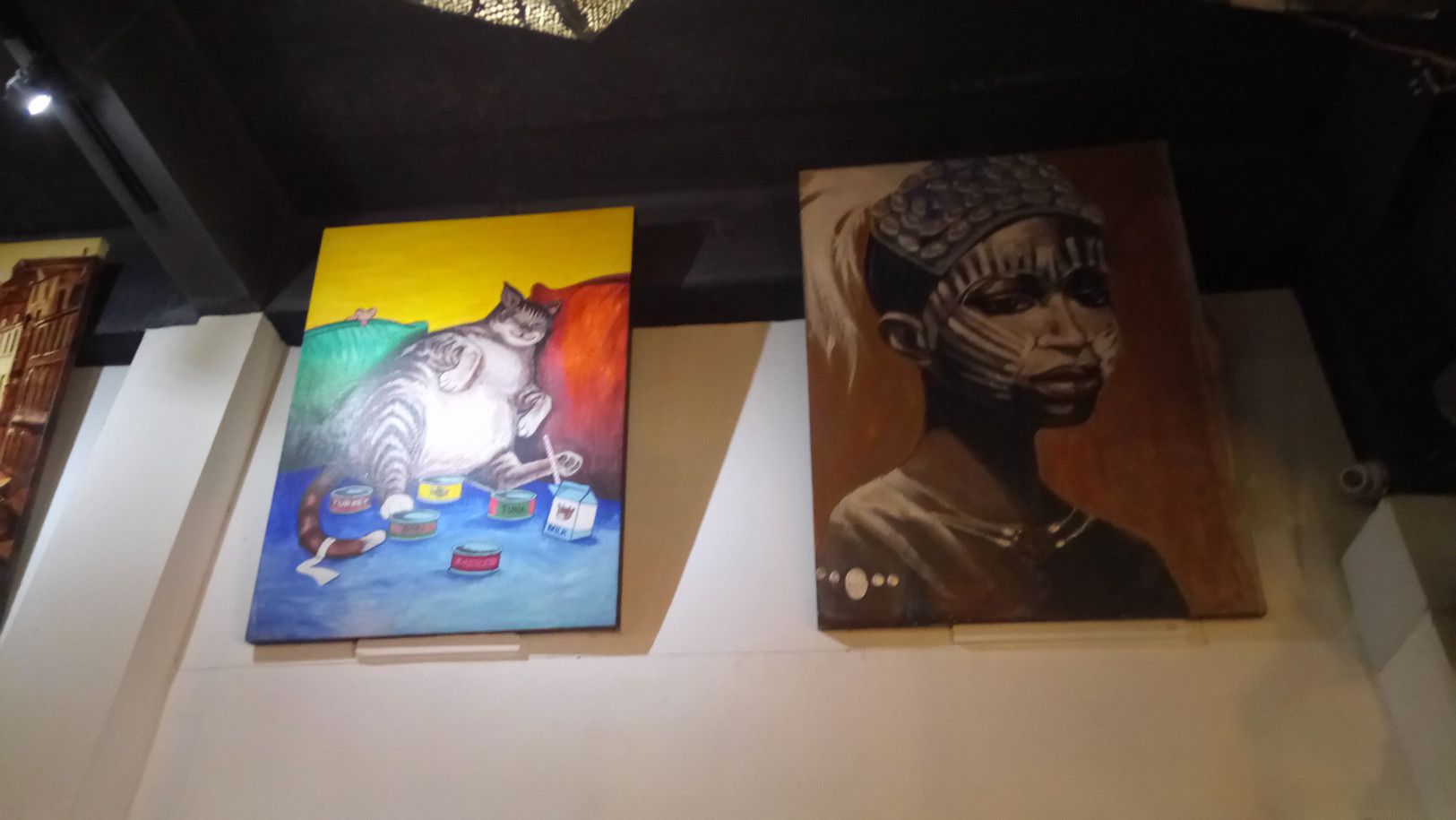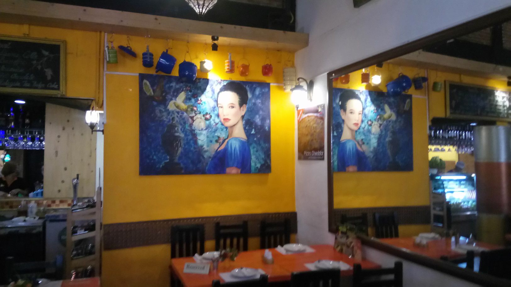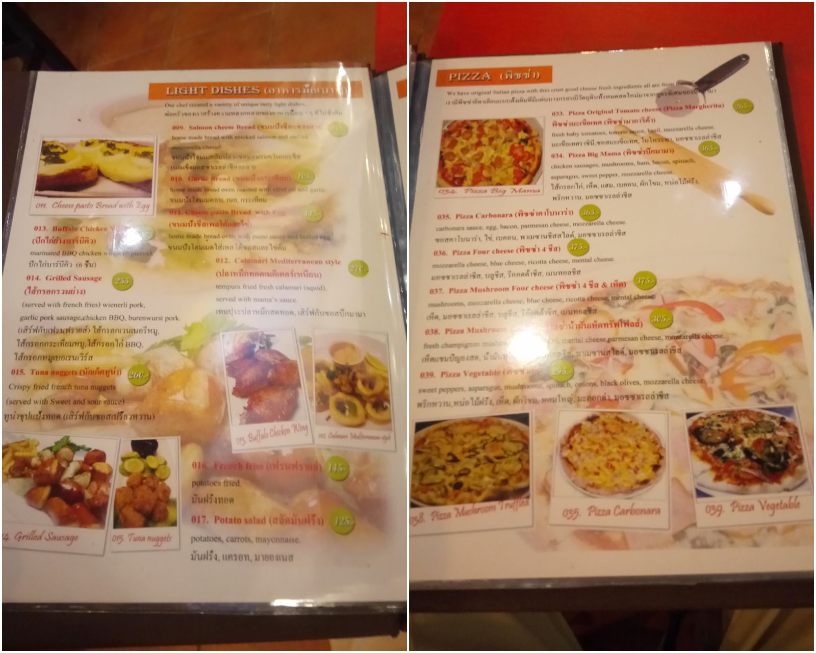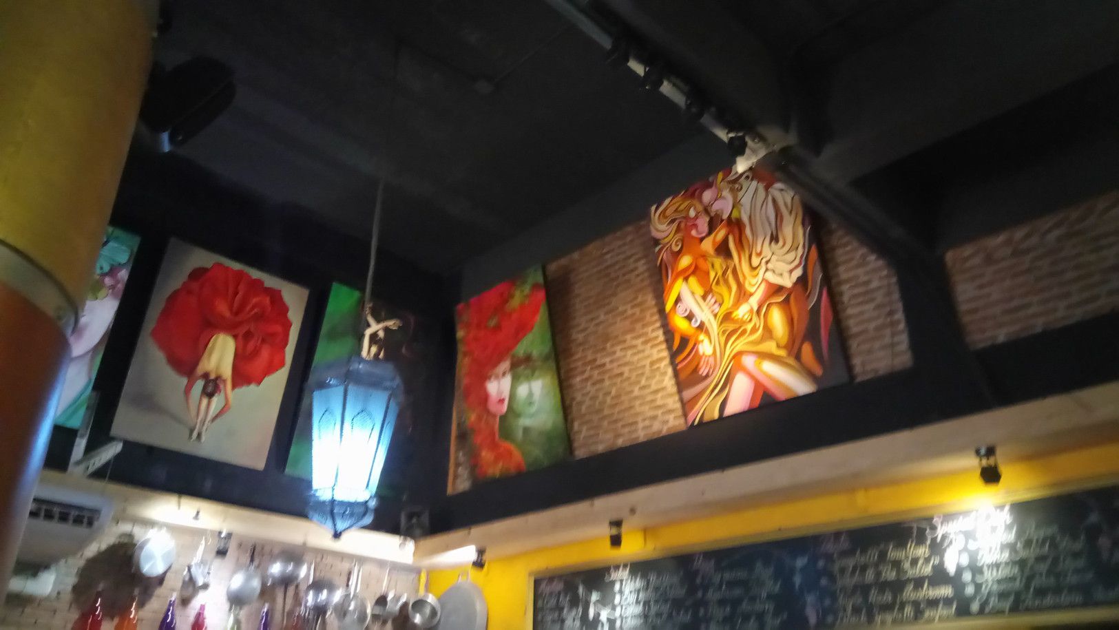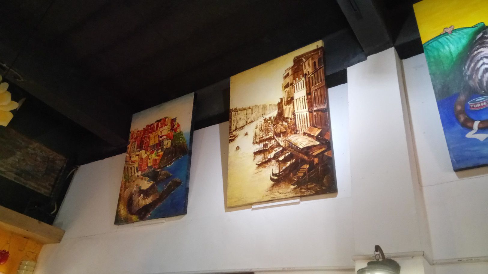 天井に近い壁に、絵を飾っている。こんな雰囲気での食事となる。メニューは、非常に豊富な上に、タイ風にアレンジした料理もあり、楽しめる。オーダーした後に、直ぐに運ばれて来たのは、暖かくて、柔らかいパン。次には、日替わりスープ。