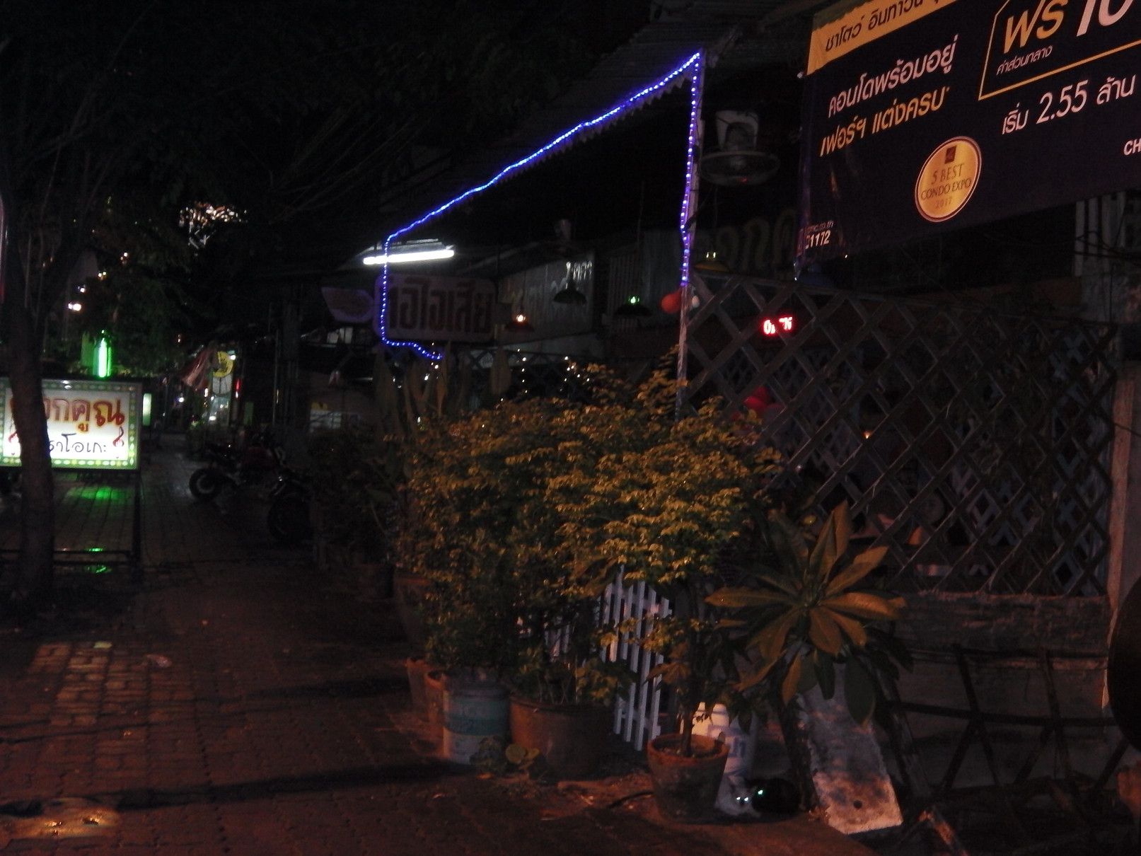実際には、カラオケパブであるが、殆どのお客。。。と言うか、ほぼ100%はタイ人しか来ない店。正面から店を眺めても、ショボい店構え。以前は、店の入り口には、植物が置かれて中が見え辛かったが、少し改善された。店に入ると、長年に渡って店で働くオバちゃんが迎えてくれて、最初に言った言葉が。。。