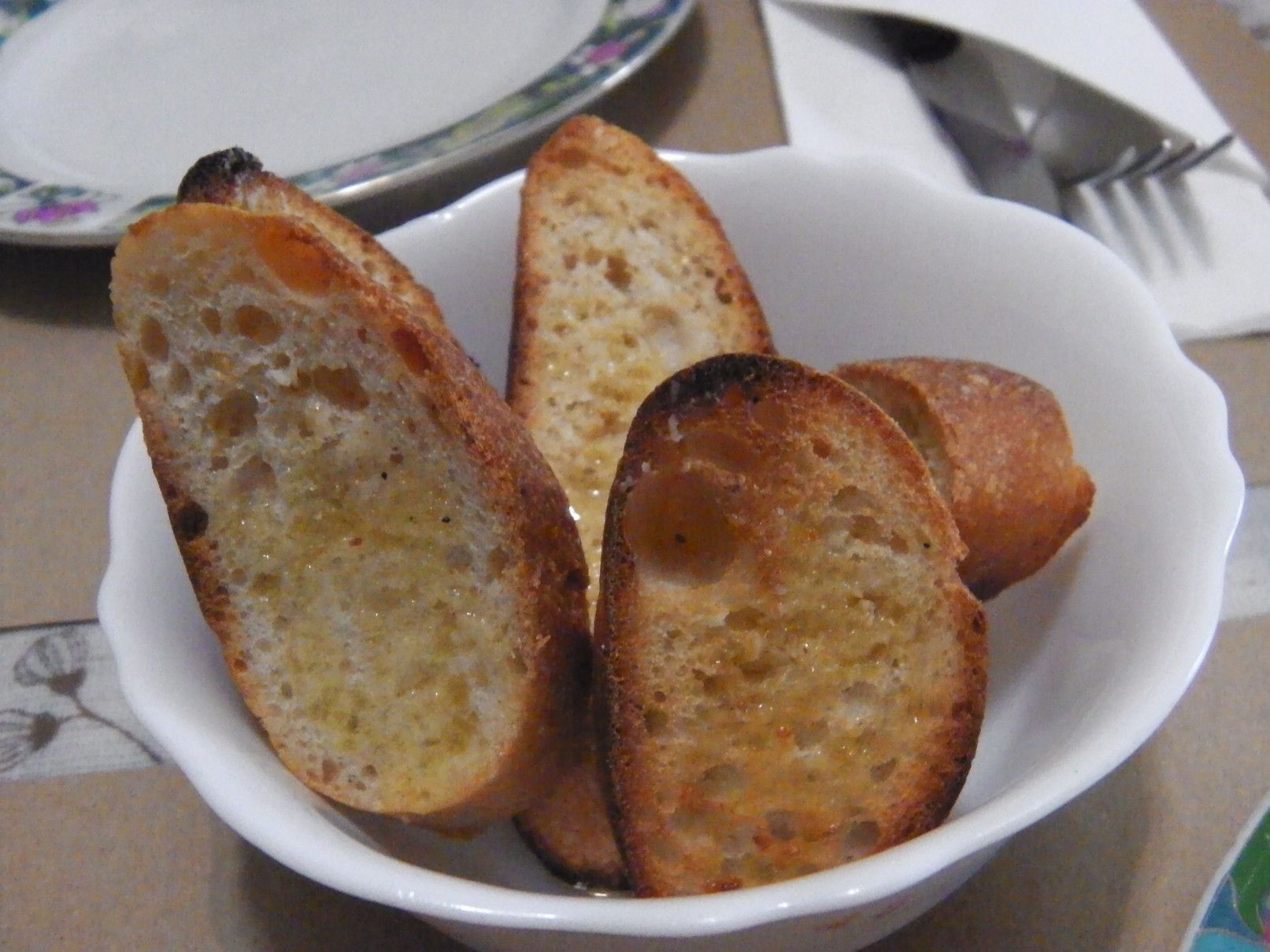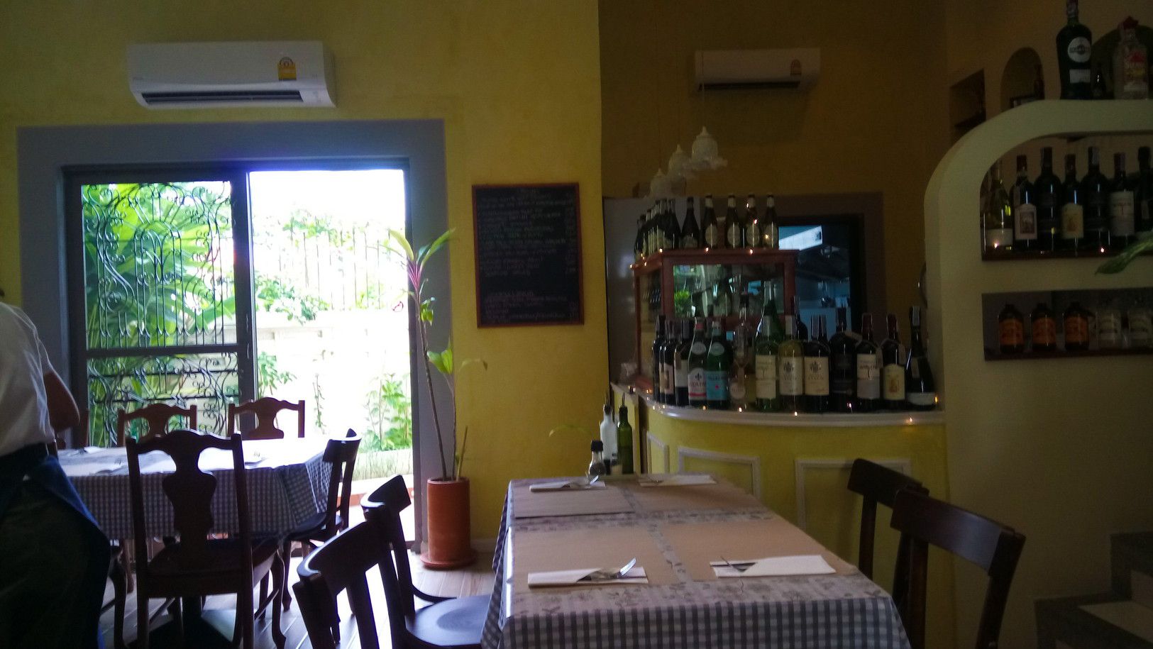 静かな場所に隠れ家的な雰囲気で店は在った。特に駐車場は無かったが、道路が広くなった場所に路駐できるようだった。非常に綺麗な店で、こじんまり。カウンターは無く、テーブルのみの店。シェフは、イタリアの方の様だった。メニューには日本語も併記されてたので、非常に分かり易い。壁には、今日のスペシャルメニューが。オーダーをすると、パンと水が運ばれてきた。