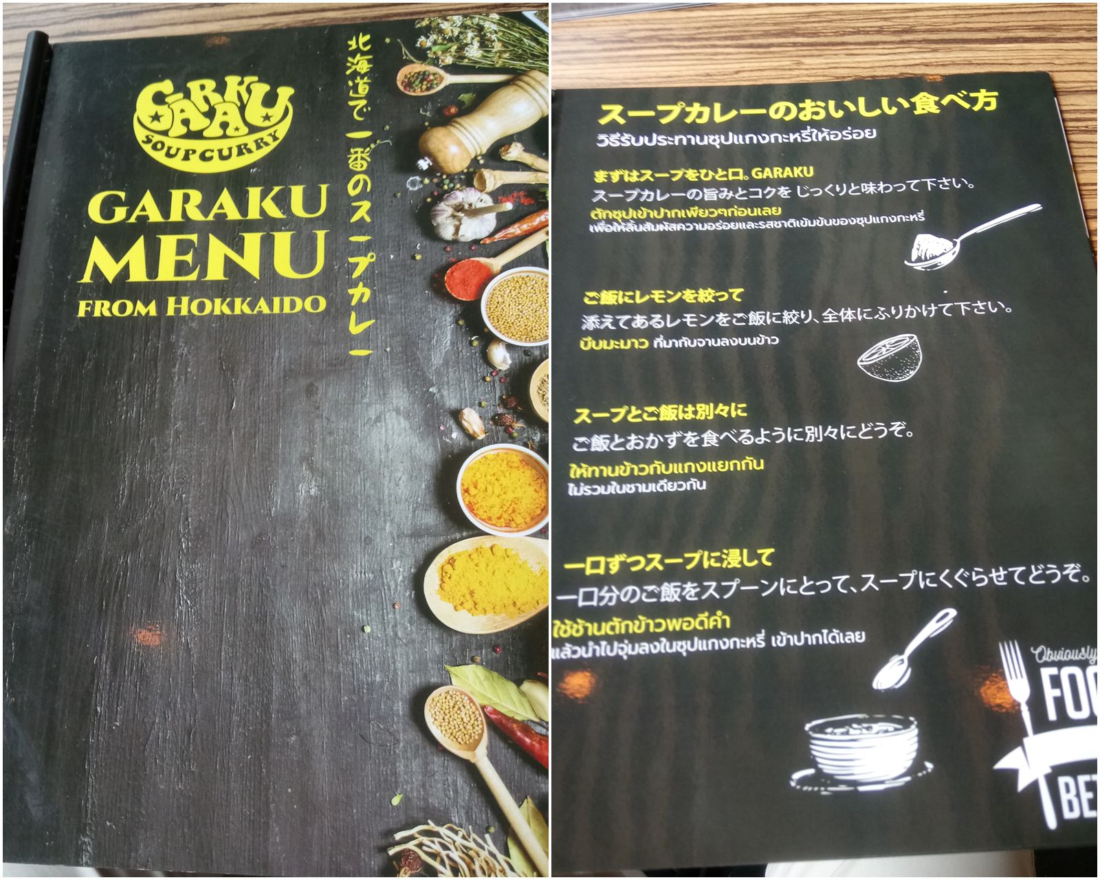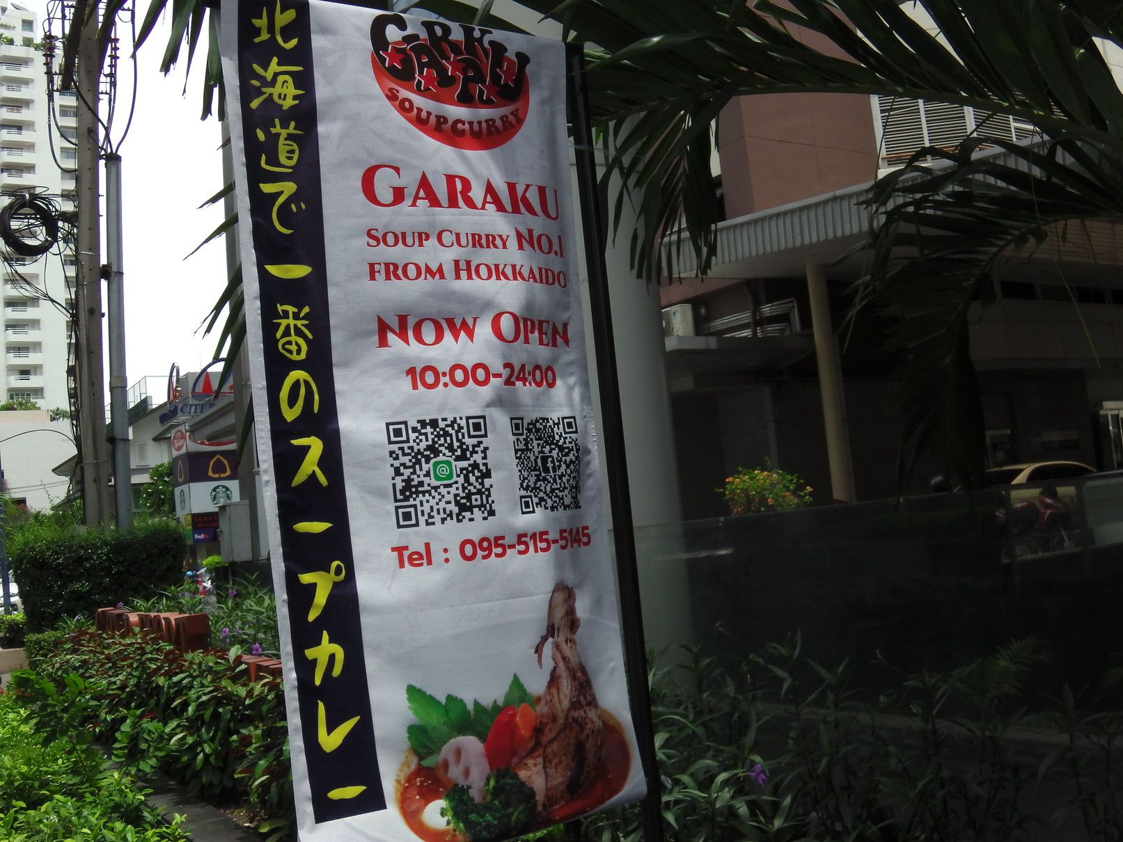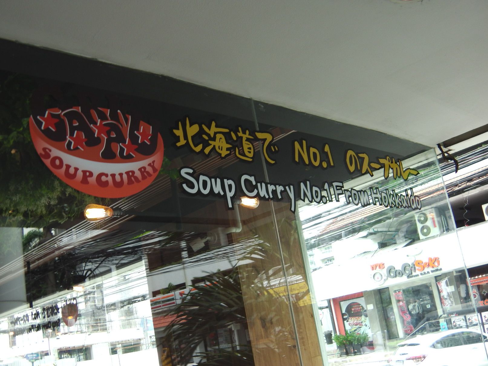 以前に、フジスーパー2号店近くのラーメン屋さんへ行った際に、正面のビルの1階にレストランが入っている事が分かった。何故に、気が付かなかったと言えば、この光景を見れば分かると思うが、右側の角にレストランが入っていると分かる看板が見えないのだ。此処まで近づくと、何やらレストランかな?そう気が付くが、何のレストランか分からない。右側の看板は、階段を下りた場所に在るレストランの看板。道路側に出て、やっと分かる程度。ラーメン屋さんからは、これが見えて分かった。最近、バンコクでも増えている、北海道スープカレー屋さん。