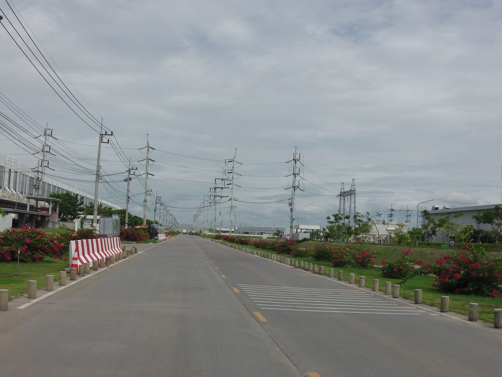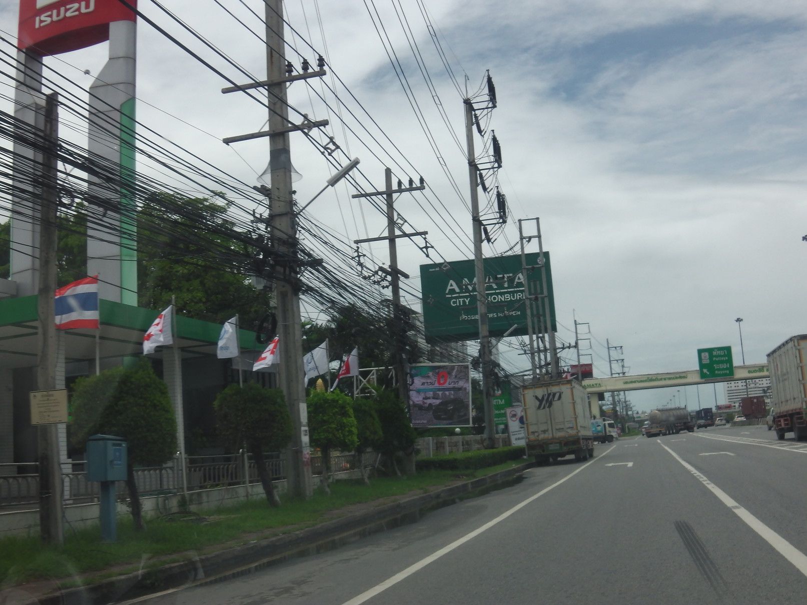 これを、食べ終わる頃には、もう席がほぼ満席状態。日本では、タピオカがブームと聞くが、タイでも店は多くなった。食事後なので、タピオカは入らない抹茶ジュースをオーダー。甘くなく、非常に美味しい。この日も、空は曇り空。兎に角、広い工業団地。数年前に拡張された敷地も、工場が8割ほど入居しただろうか。