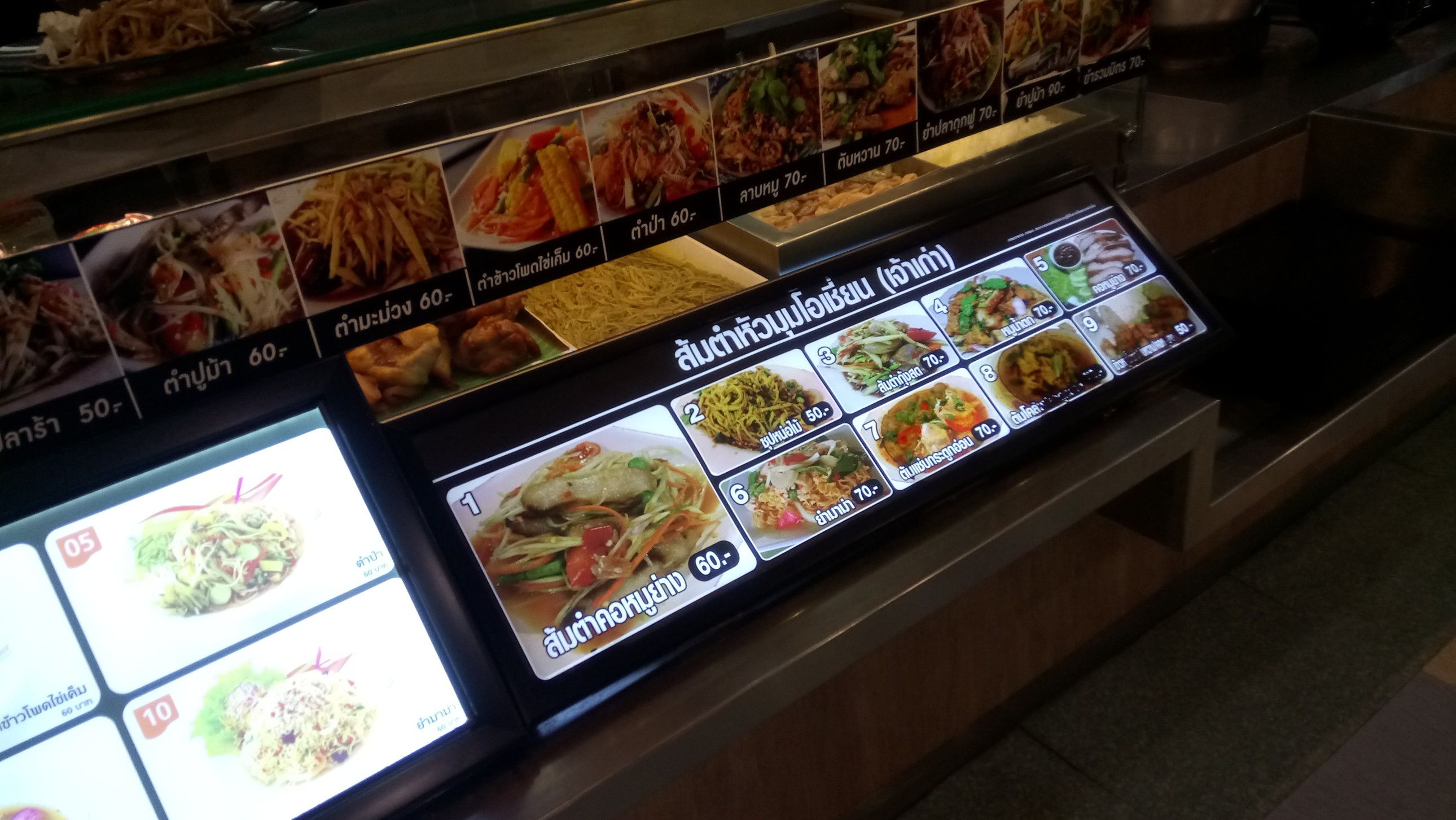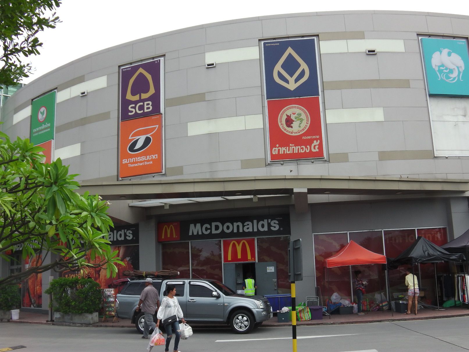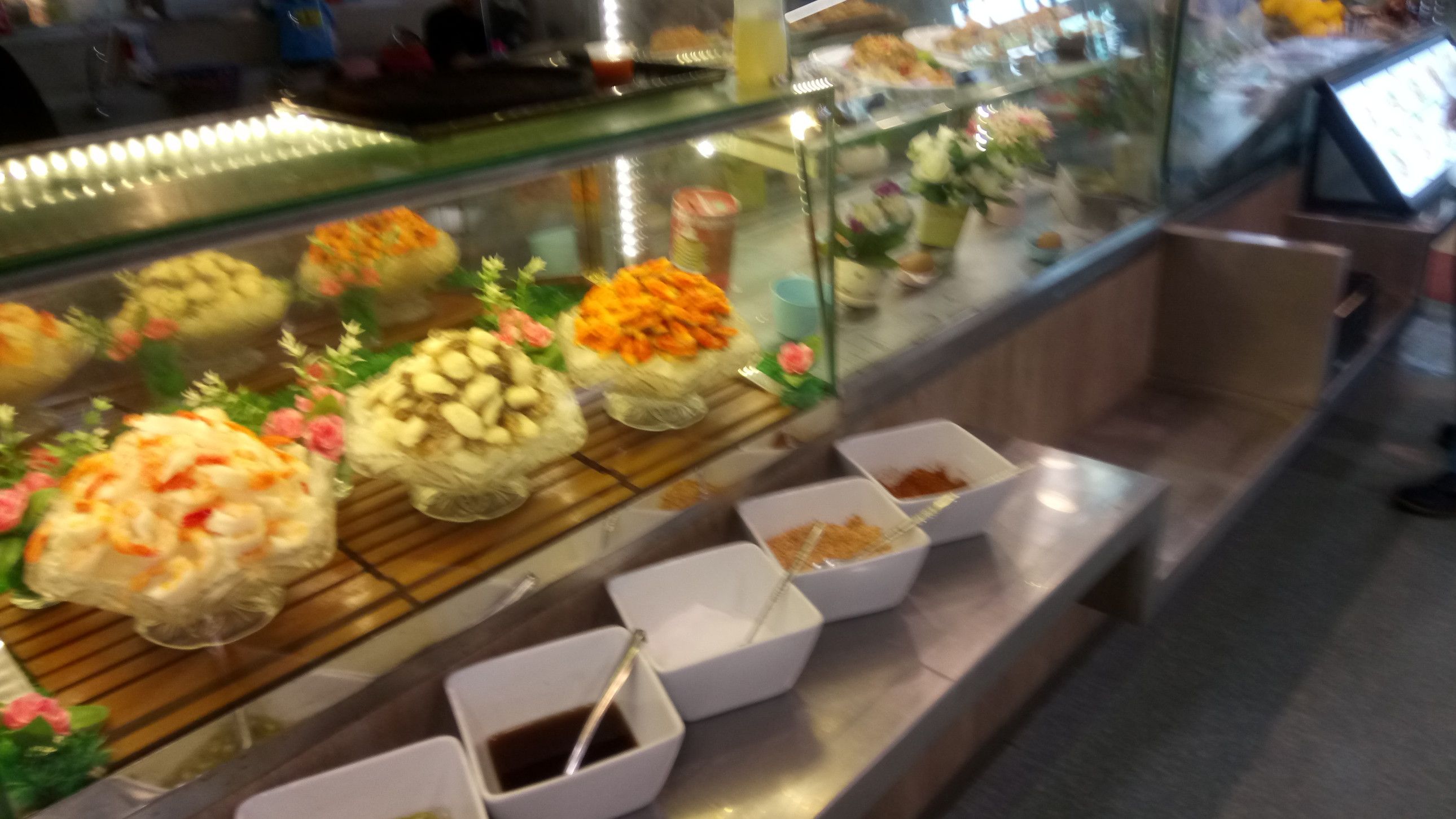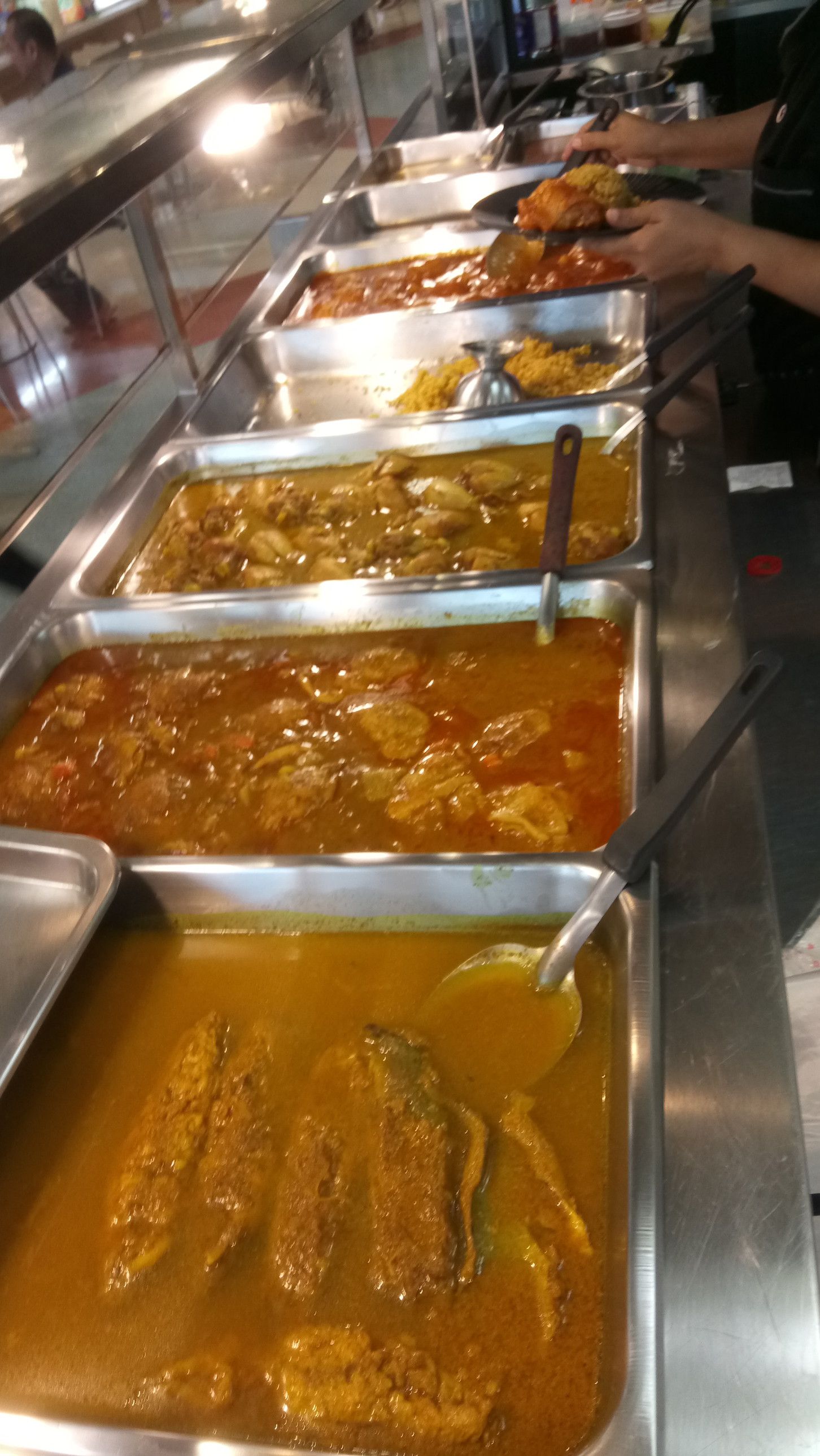 お客さんは、旧アマタナコン、現在はアマタシティーチョンブリ工業団地内に在る。アポは13時半。まずは、工業団地入口手前のショッピングモールで食事。時間は、11時50分。敷地は広いのだけれど、この時点で駐車場は、ほぼ満車状態。12時を過ぎると、工場勤務の方々が押し寄せてきて大変な事になる。しかも、お客さんの工場は、入り口を入ってからも、更に30分は時間を要する場所。それだけ、広大な工業団地だ。もう、混まない内に食事をして、時間に余裕をもって行く事が大事。色々と見て歩くが、今日はカレーにした。一番奥の、色が濃いカレー。55バーツ。もう大好物のチキンカレー。煮込まれた鶏肉と、カレー味のご飯の上には、揚げにんにく。キュウリの酢の物とあっさりスープ。