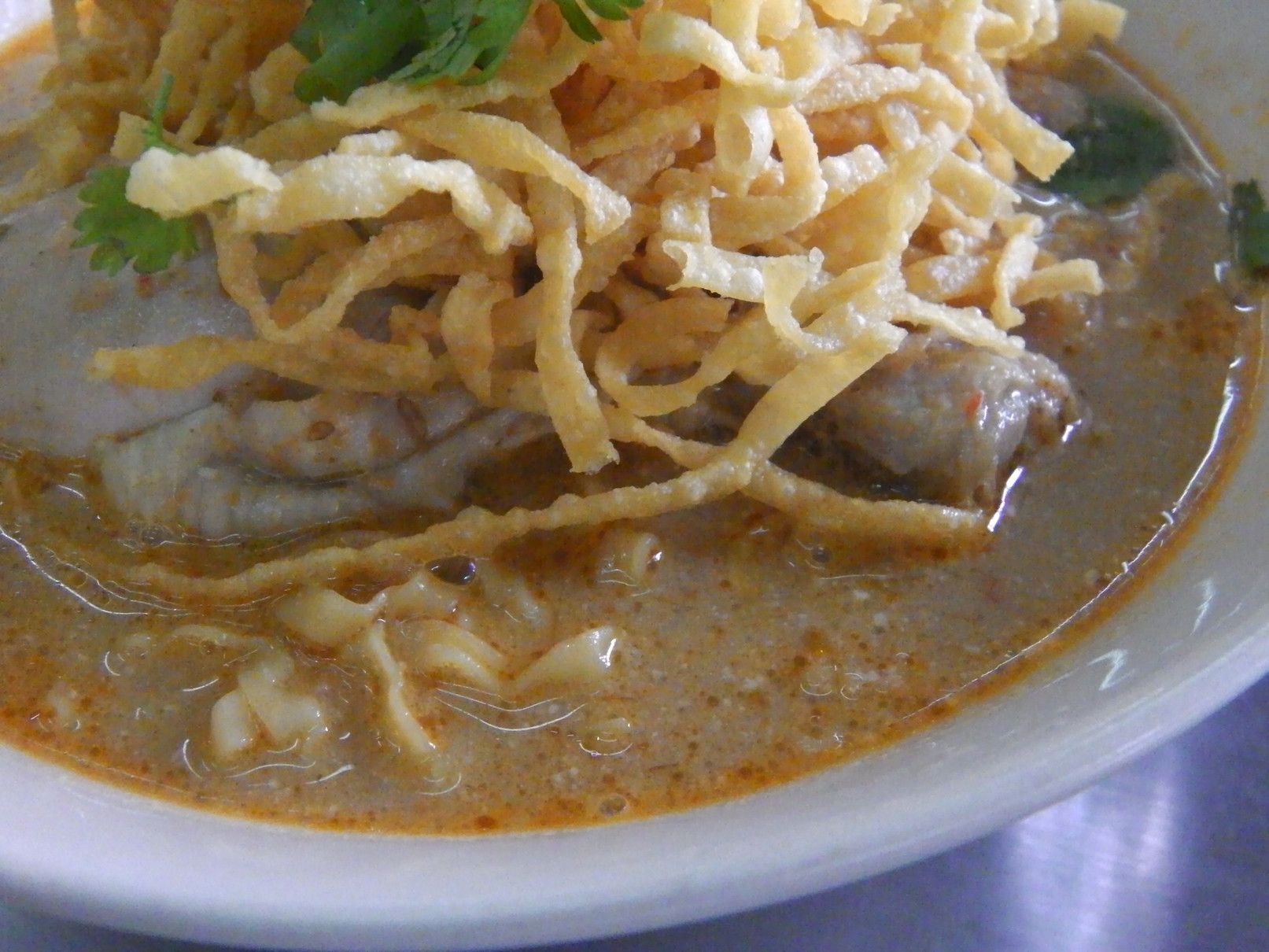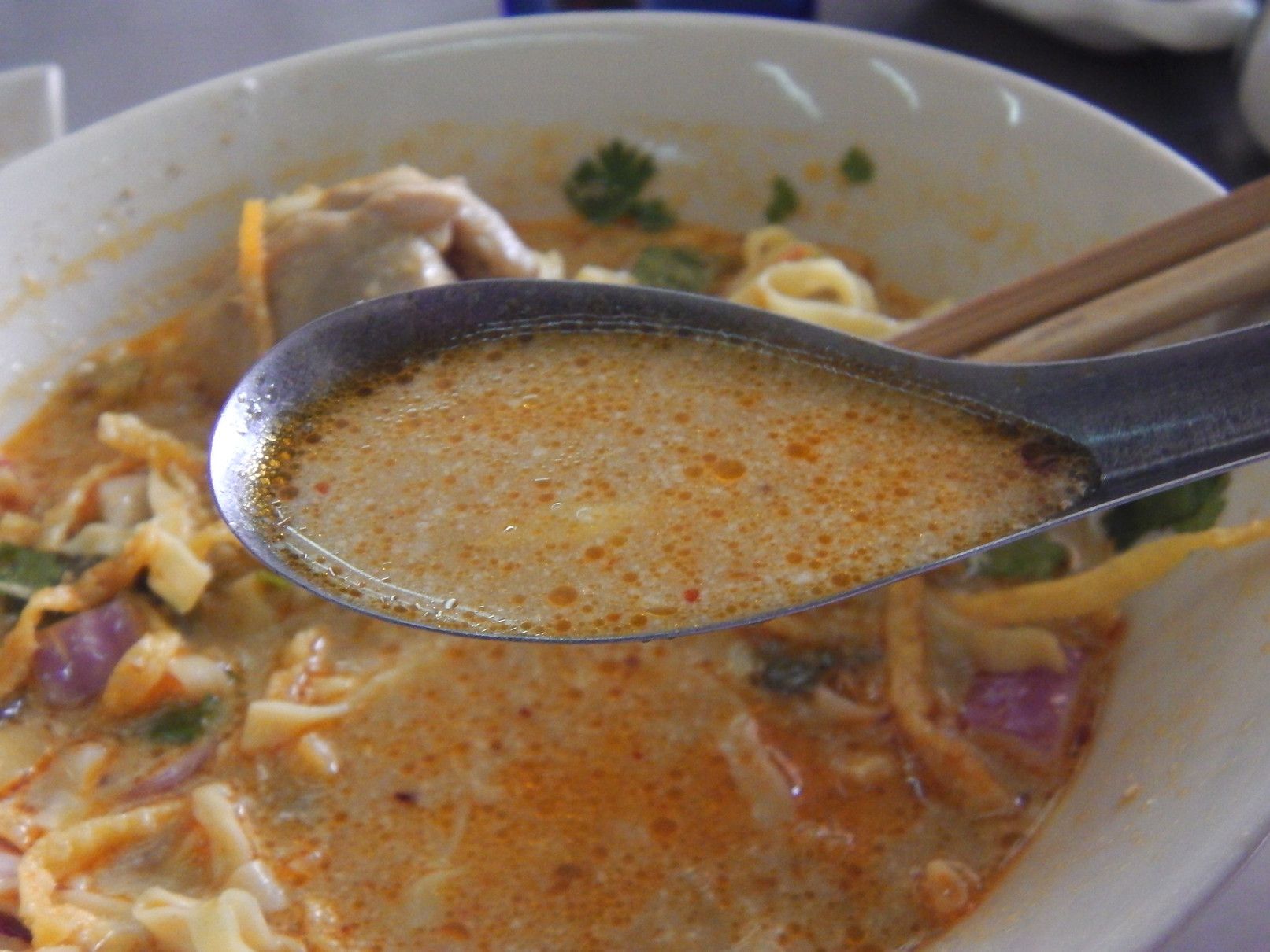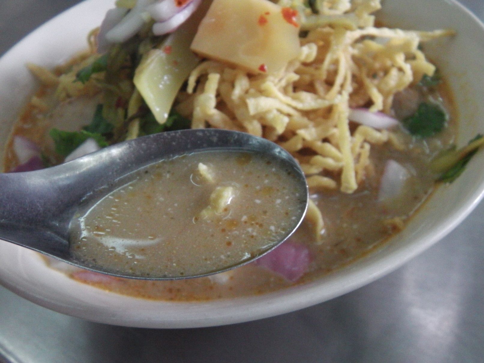 自身が、カオソーイに興味を持ったのは、この店で食べてからだった。 スープは濃厚で熱々、麺はモチモチで、好みにドンピシャ。