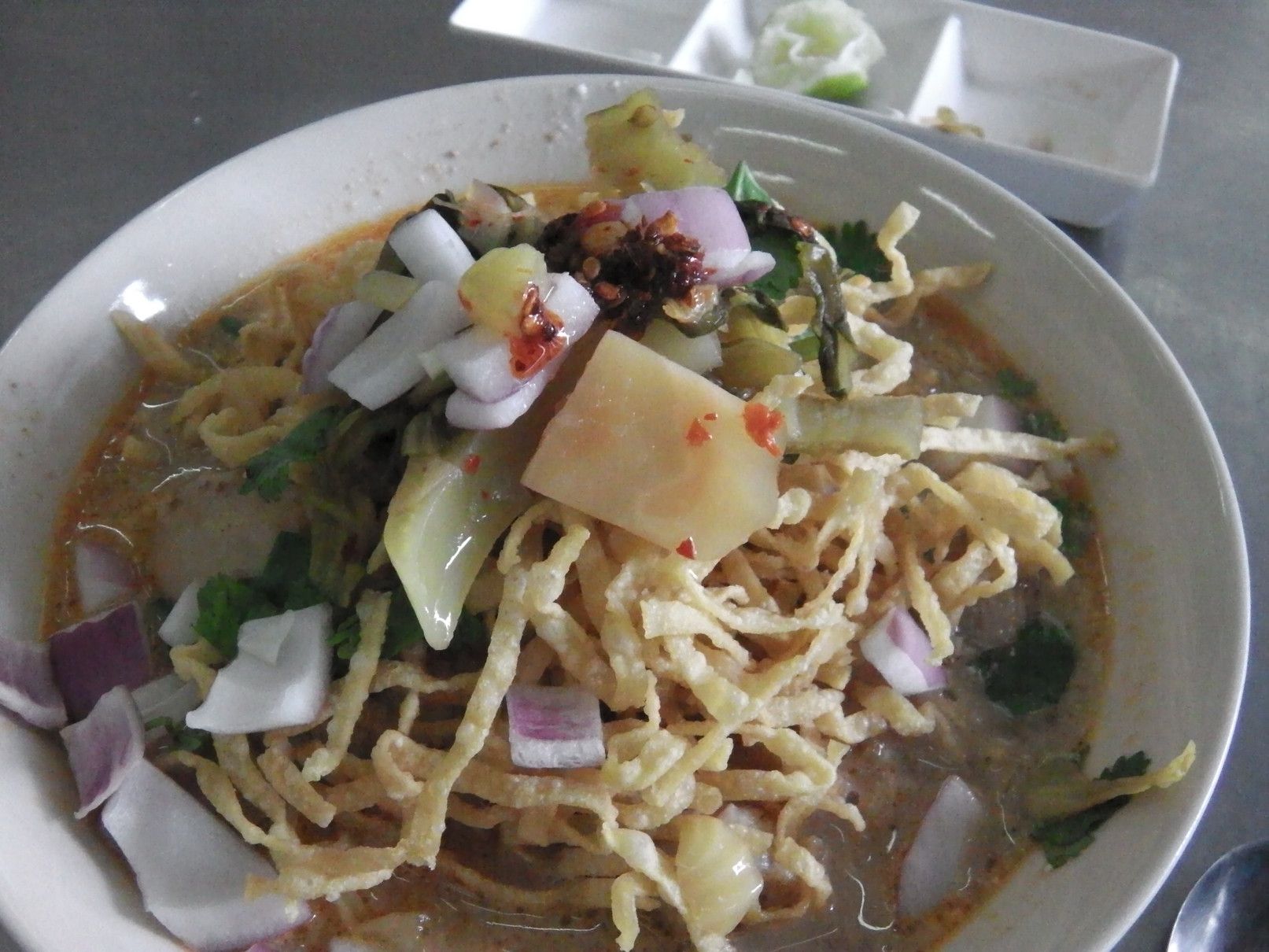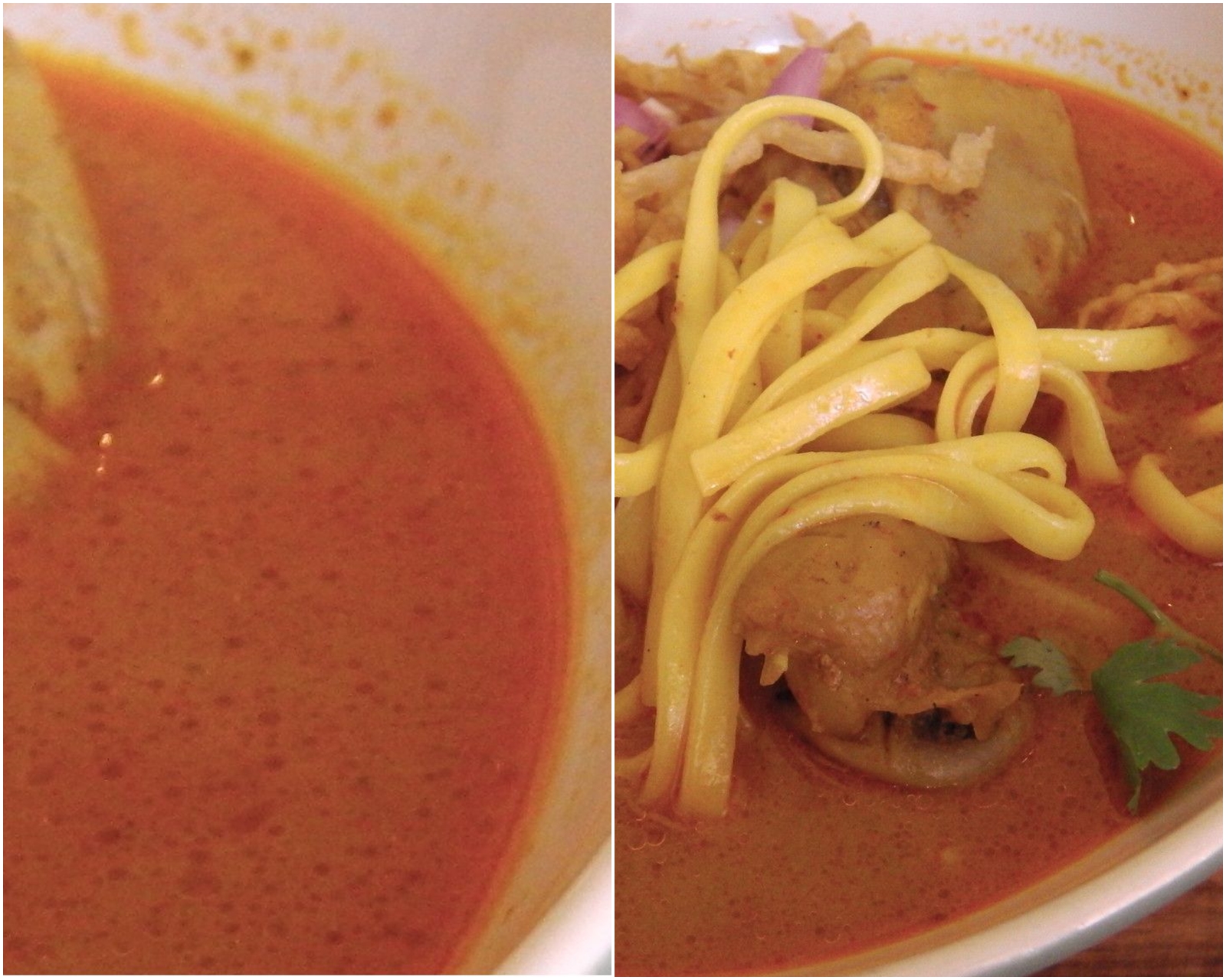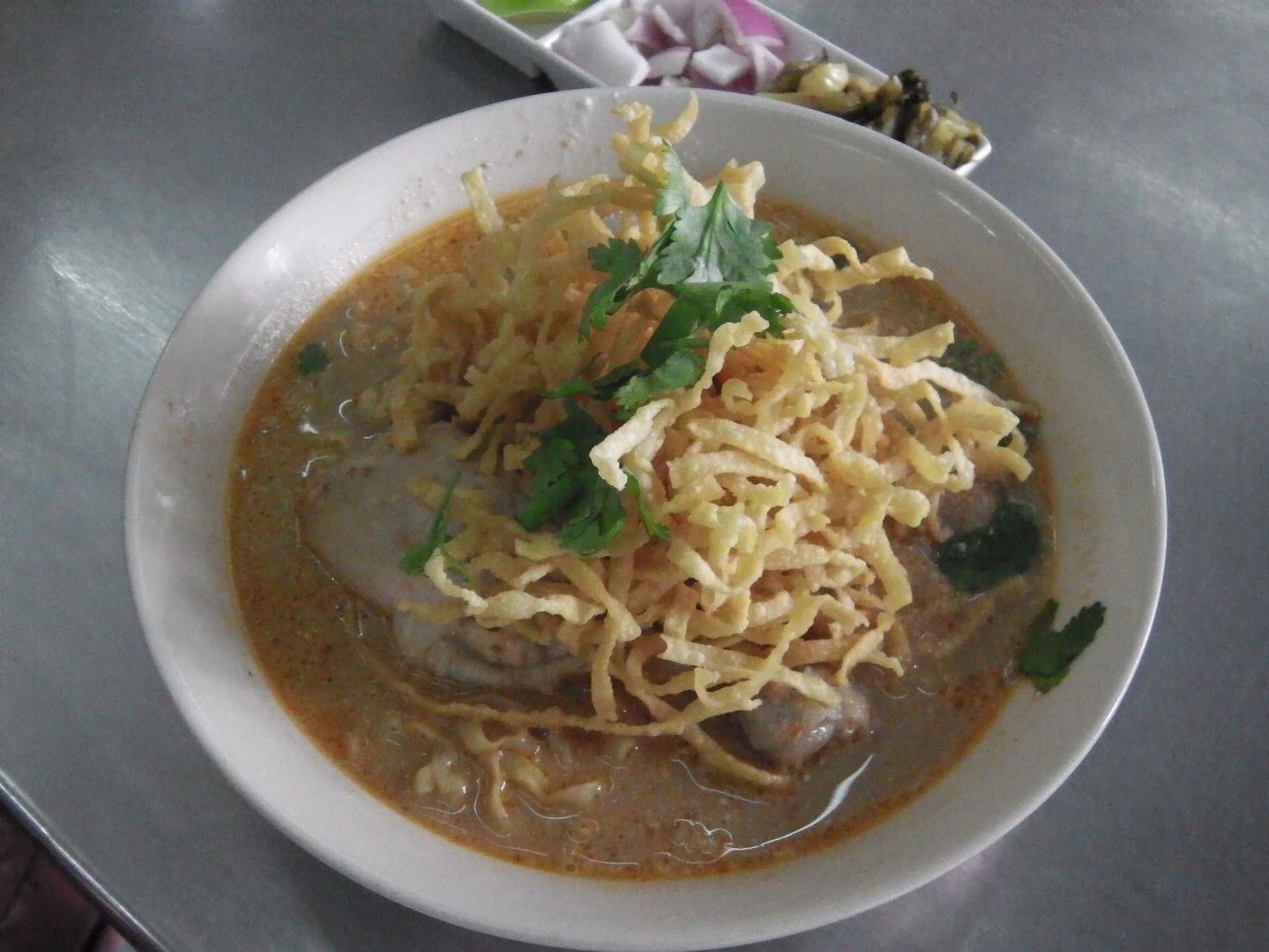 自身が、カオソーイに興味を持ったのは、この店で食べてからだった。 スープは濃厚で熱々、麺はモチモチで、好みにドンピシャ。