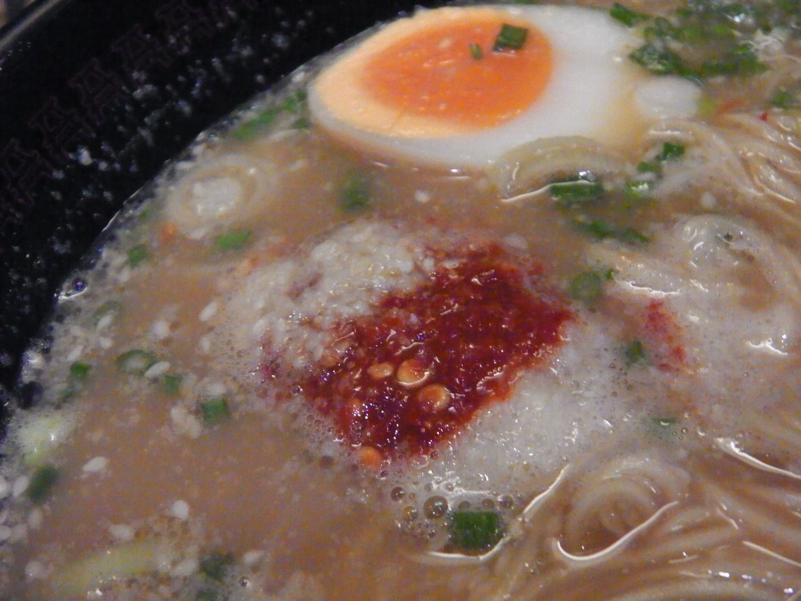 冷たい水が自由に飲める。何やら新しいメニューも追加になったようだが、今回も麺はやや硬め。濃厚スープに少し辛め
