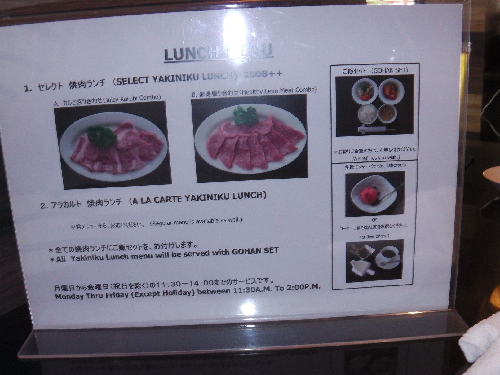 次の店は、値段が高いのでは?そう思っていましたが、ランチタイムにはお得なメニューもありました。また、レジの近くには、お持ち帰りの肉も飾られていて、肉だけを買いに来るお客さんも居ました。タイ人で賑わってましたね。