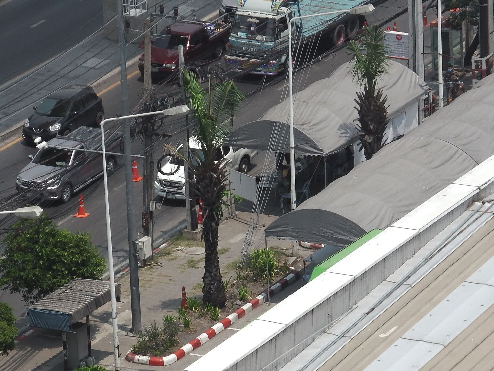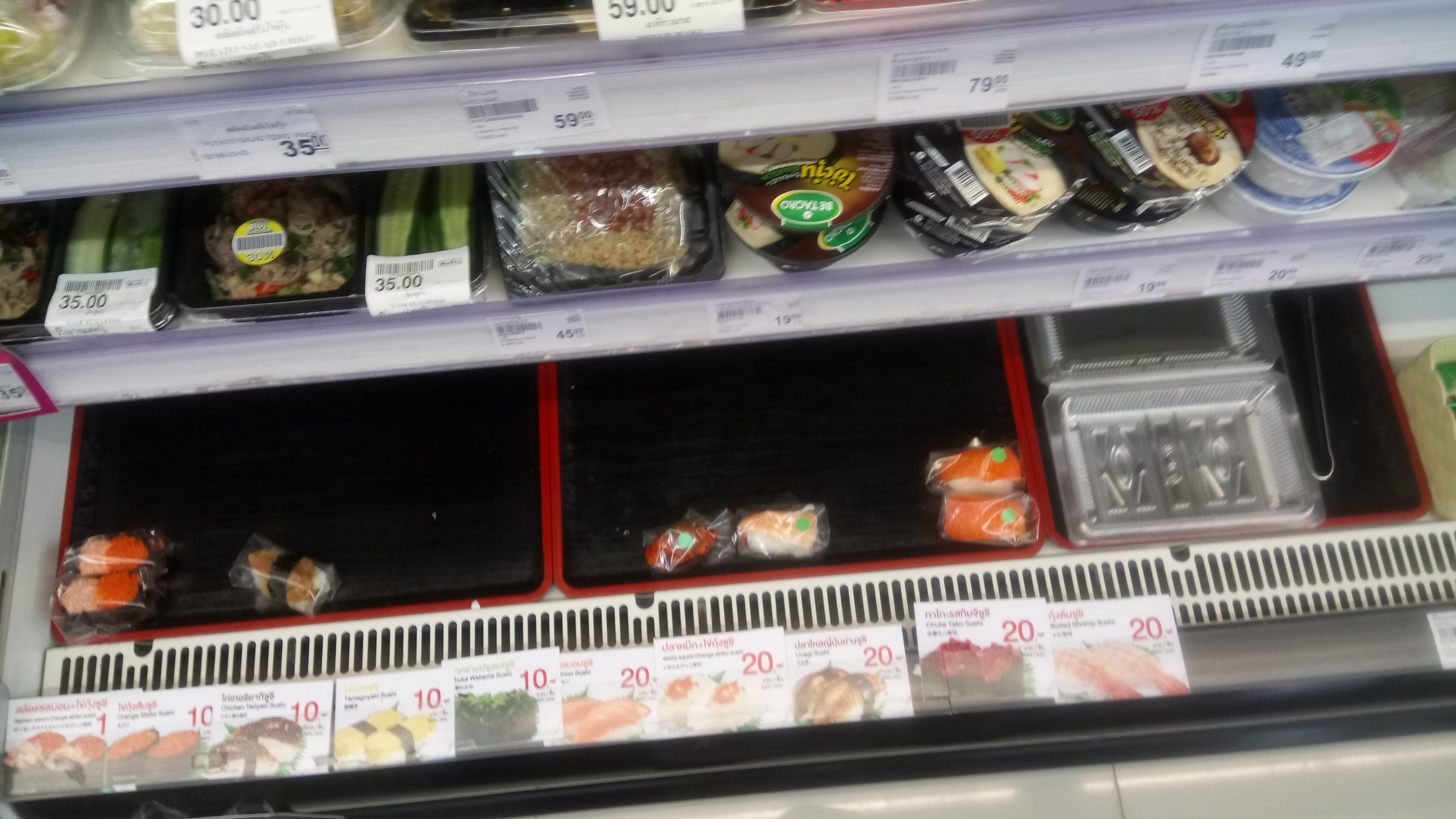 さて!これらの発表の直後の4月2日の昼過ぎには、翌日からの移動制限の為なのか、自分が住む部屋からは、警察による検問所が設けられていた。これを眺めて、分かったのは、非常に規制は緩やか。ガンガン取り締まると言った雰囲気は無し。警察も忙しく動く事も無し。しかし、思うのは、庶民に対する意識の向上には貢献するのではないかと。今、起こっている事の恐ろしさを少しでも分かってもらいたい訴えがある気がした。そして、夜間外出禁止がスタートした、その時間になると、道路はガラガラ。ゼロでは無いけれど、非常に少なくなった。それでも。警察官は内側車線に立って、取り締まり中。そして、これが土曜日の朝(4月4日)の様子。警察官は、日陰で椅子に座って車の流れを眺めているだけ。しかも、意外に人数は多く、その様子を見る運転手たちも、コロナウィルスに対しては、何かを感じてくれるんだと思う。自分が住む場所には、コンビニがあるので、籠る生活は大丈夫。しかし、この日は用事があって外へ出かけたので、マックスバリューで寿司を購入。ゴミの付着を防止するように包まれていたので、気分良く購入できた。合計で、70バーツ。楽しく引き籠りましょう。