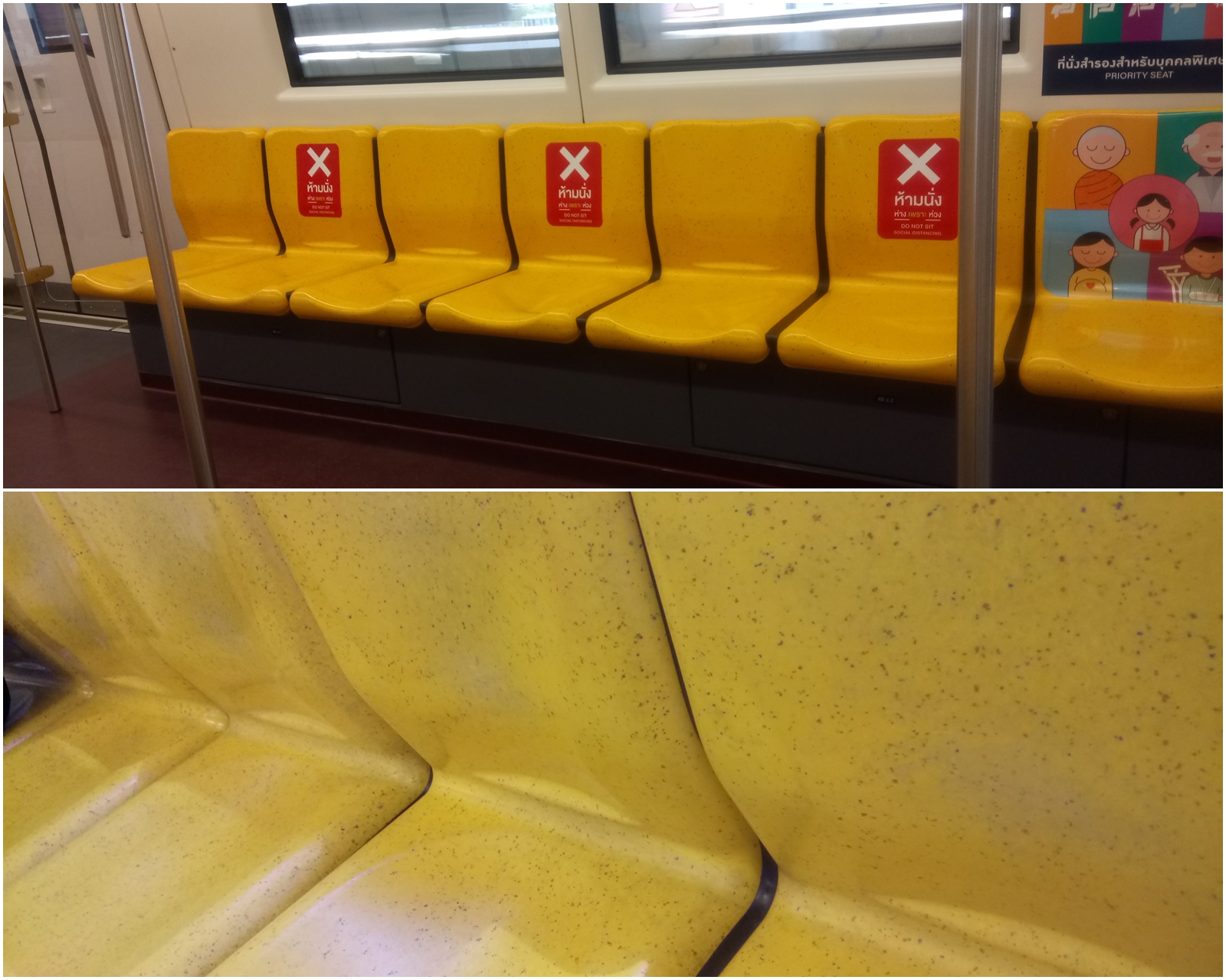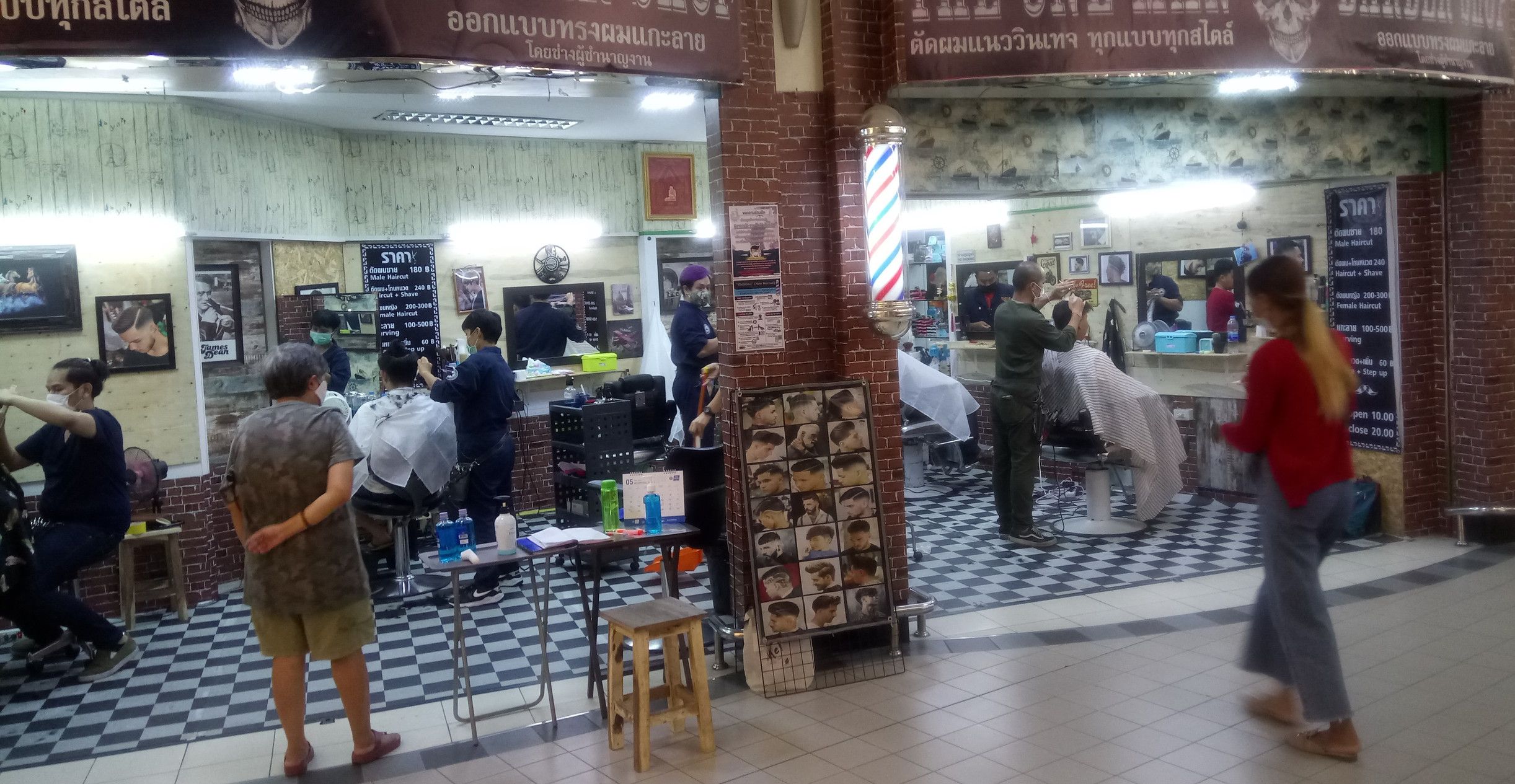 通常のオープンは、10時半なので、それに間に合うように出掛けた。何と嬉しい事に、最近に貼られていた✖印が、乗った列車には貼られていなかった。偶然なのかもしれないけれど、緩和されたが故かも知れない。スカイウォークからの景色は、昔と変わらずだった。市場にも、人が出入りしている様子が伺われた。そして、インペリアルワールドの入り口に到着したが、入り口は閉まったまま。どうやら、オープンは11時のようだった。11時丁度にオープンして入るも、封鎖状態と変わらず。ただ、薬局や持ち帰りの食料品の店はオープンはしていた。しかし、散髪屋が集まるフロアーへは通路が封鎖されて、行く事が出来ない。何とか、散髪屋が集まる場所を眺められる場所に来てみると、灯りが点いていなかった。恐らく、インペリアルワールドの都合での事だと思うので諦めた。そこで、家に戻る途中で、先日のスーパー内にある床屋へ行ってみると、当日は予約で満杯だと言う。よって、予約状況を確かめると、翌日の午後に空きがあり、この日は予約完了。そして、翌日に時間前に到着すると、お客さんは満席状態も、10分待つと散髪開始。ただ、この店は洗髪など無しのカットだけ。180バーツ。