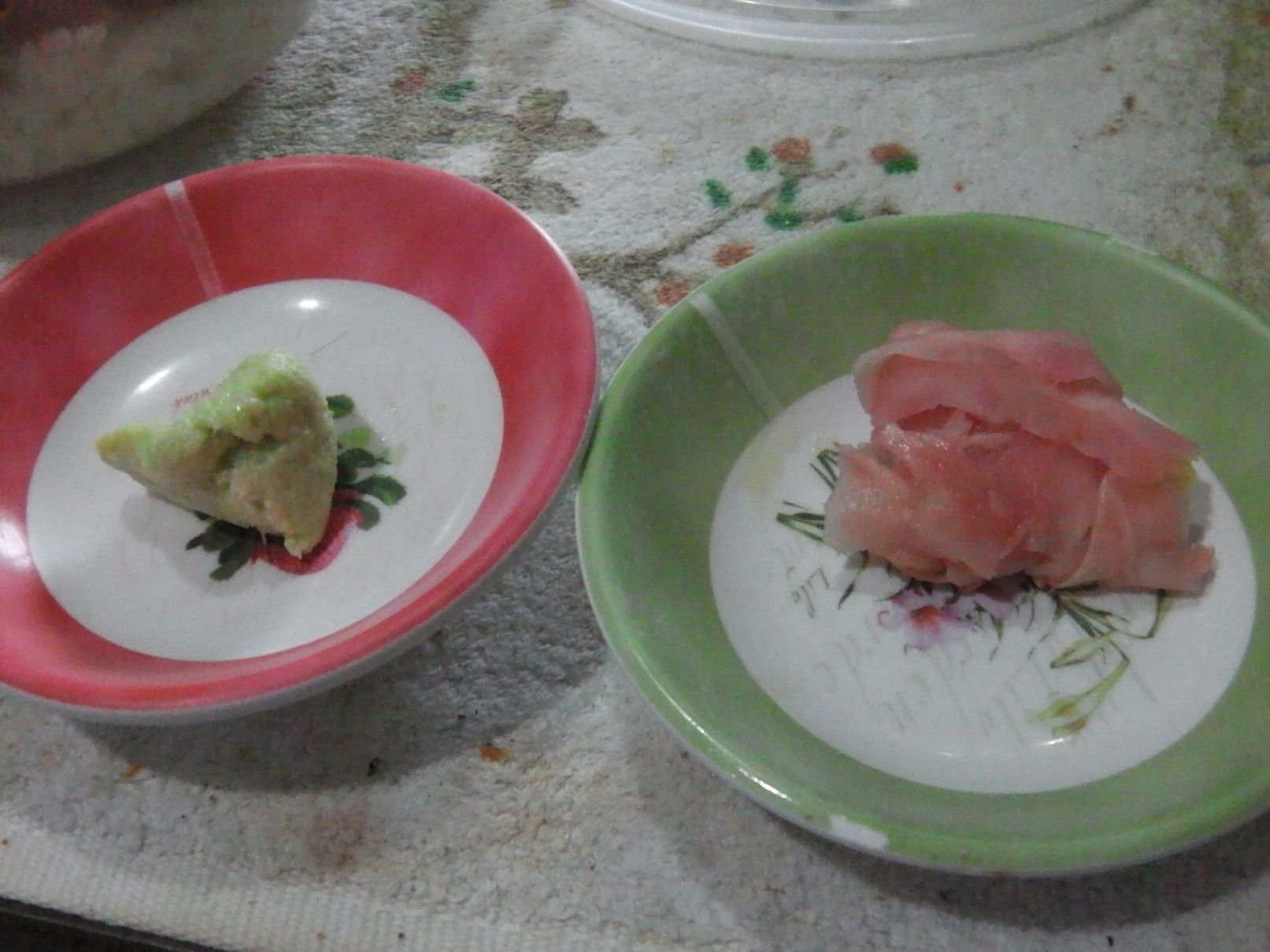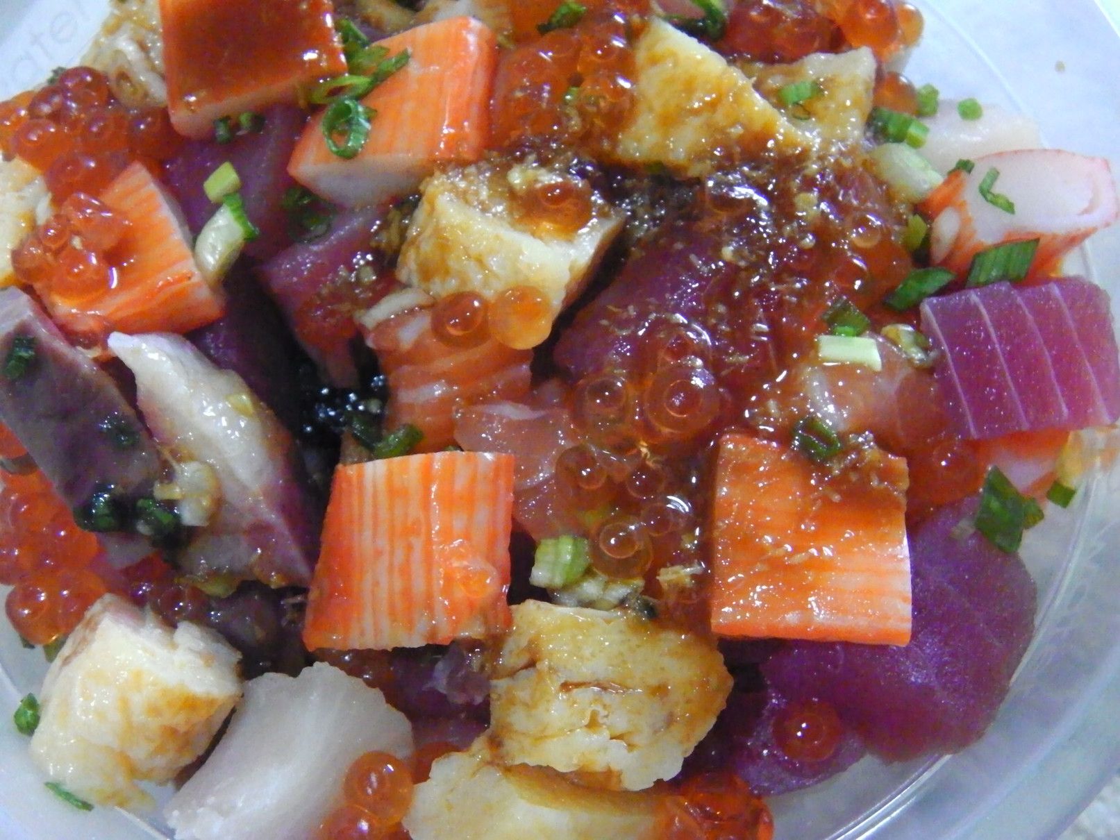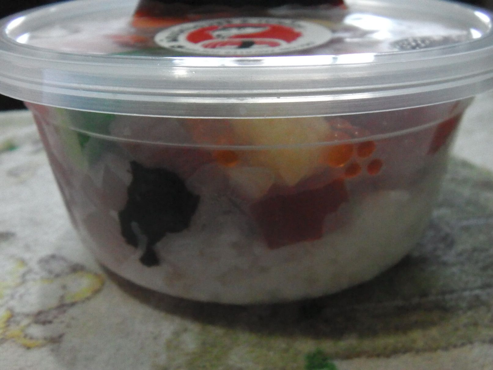 このように、各店には前面にメニューが貼り付けられているので分かり易い。ただ、ぼーっと眺めていると、通路を通る人の邪魔になるので、何度も行き来をした。しかし、この通路沿いでは好みの物は無し。カオマンガイとか、ガイヤーン狙いだったけれど、無し。よって、寿司に決定。この寿司屋さんの場合は、メニューの貼り付けは店内。