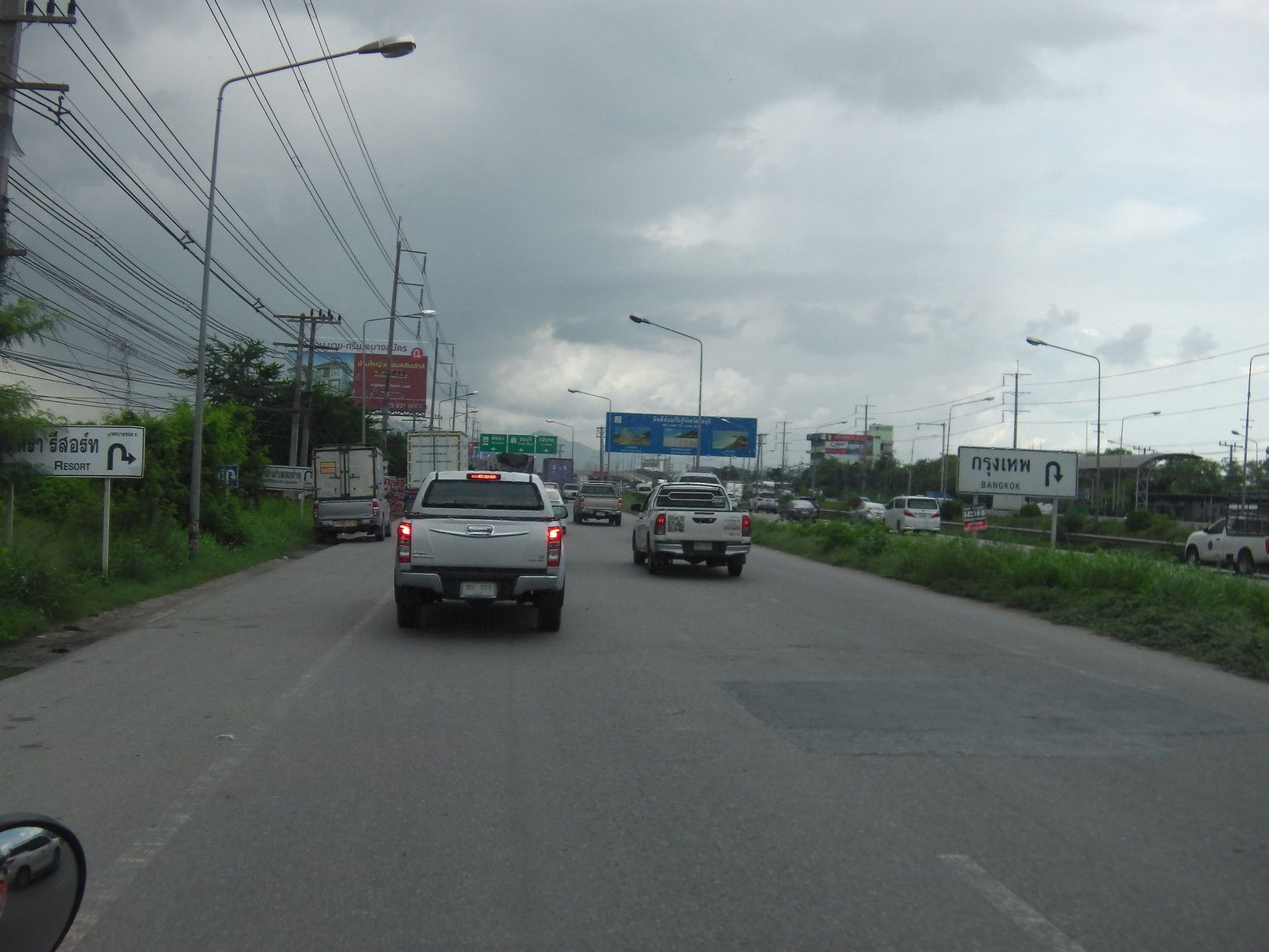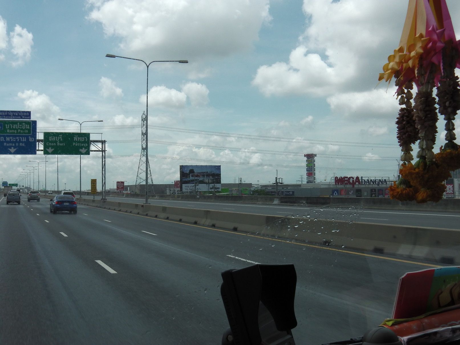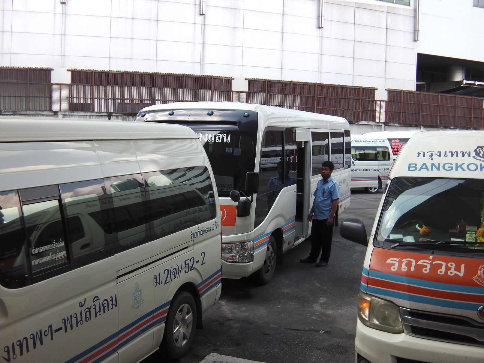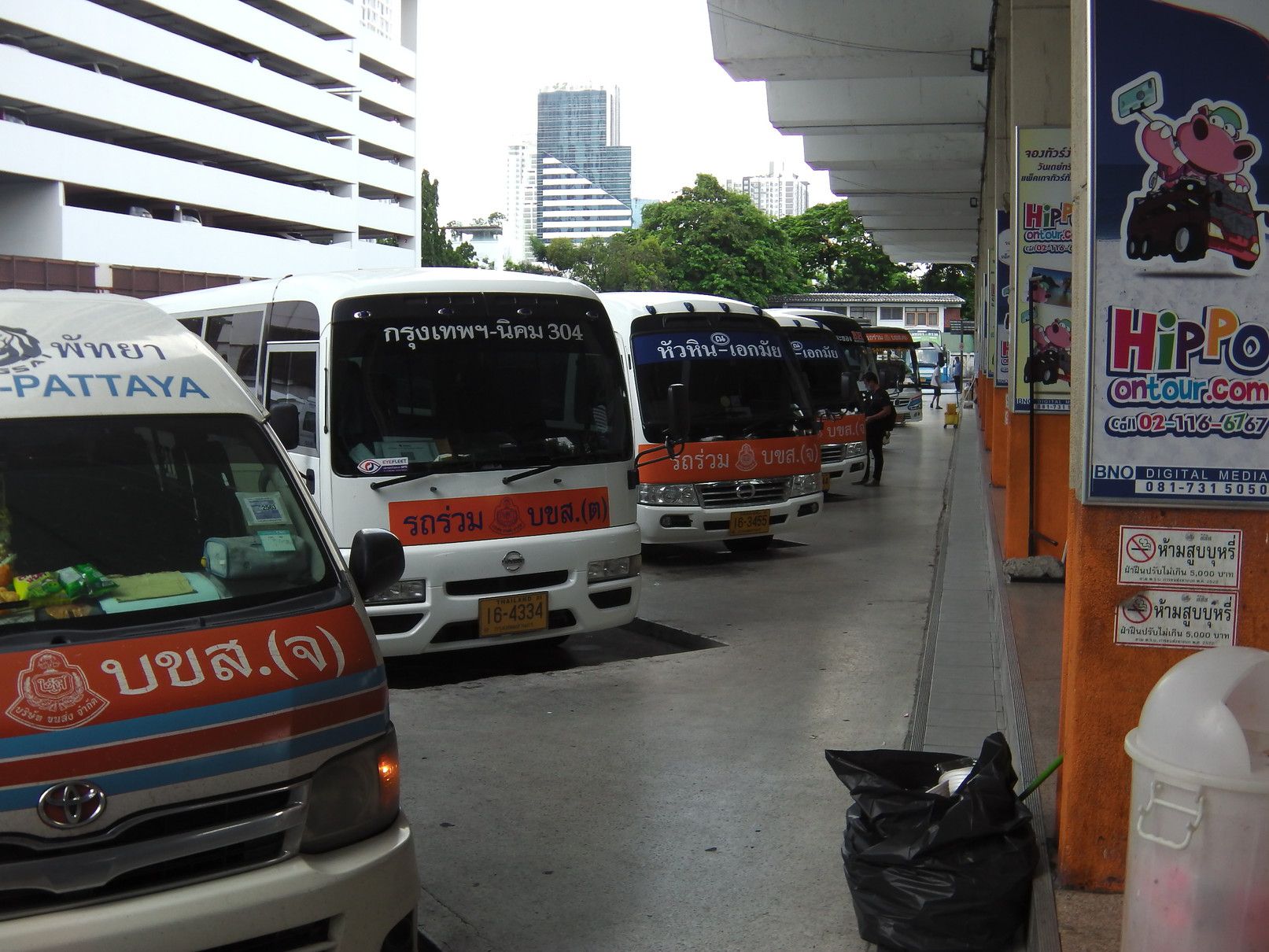 それらの情報を基にして、自分でも他の手法を考えたが、ロットゥーは避けて長距離バスを選択する事にした。しかし、問題は要する時間。アポイントは13時。余裕をもって行動する事にして、当日を迎えた。 駅に到着したのは、9時25分。 2番出口を確認して、外へ出た。中に入ると、多くの手招きがあったものの、無視をして販売窓口を探し、チョンブリ行きのミニバスを選択。100バーツ。どのバスか探していると、声が掛かった。乗り込む事にした。まだ、誰も乗っておらず、一番前の席に通された。出発は、10時半で、まだ1時間ほど先。何んとか、出発時間となった。このエカマイの交差点で待つ時間も、運転手は窓を開けて、「チョンブリ行きだよ!バンセンへも行くよ!」と呼び込みを続ける。途中から渋滞。しかも、雨が降り始めた。バンナーの交差点では、橋の下に待合所があり少しの停車。此処からも、乗れるとは知らなかったし、こんな場所があった事も初めて知った。5分程度で再出発。高速へ乗る。