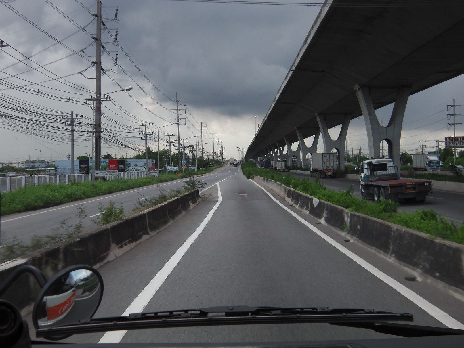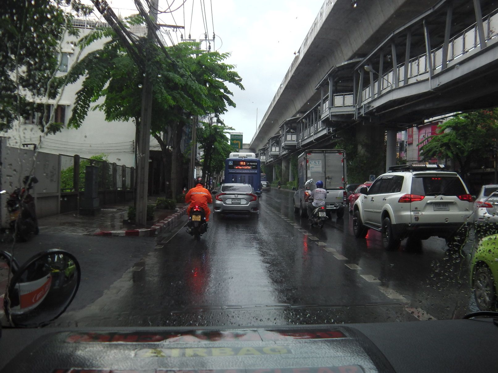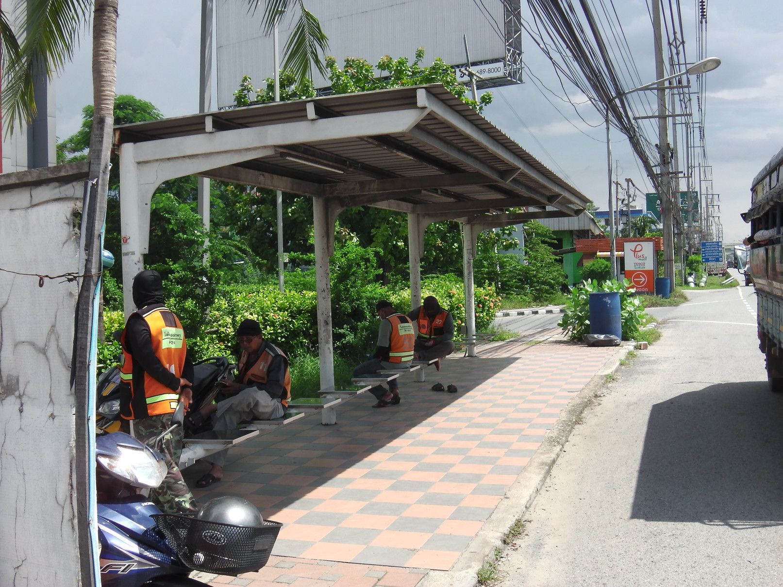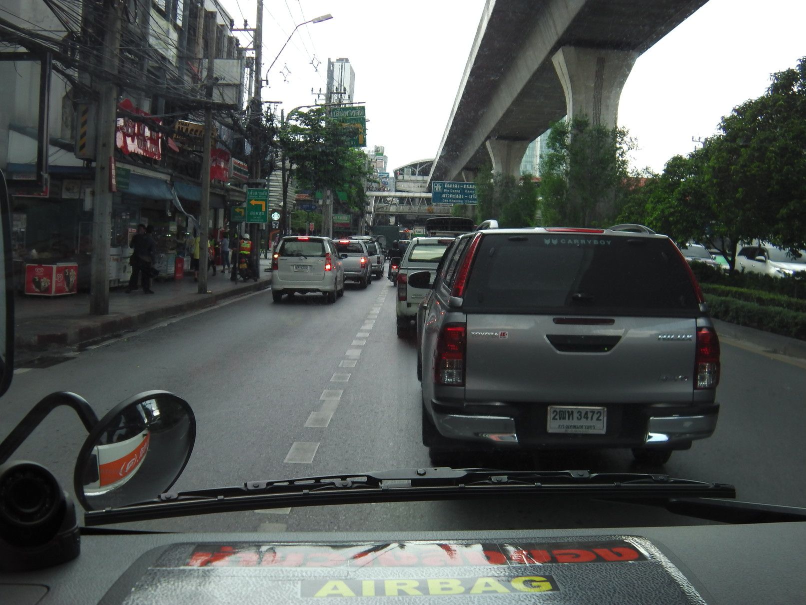 それらの情報を基にして、自分でも他の手法を考えたが、ロットゥーは避けて長距離バスを選択する事にした。しかし、問題は要する時間。アポイントは13時。余裕をもって行動する事にして、当日を迎えた。 駅に到着したのは、9時25分。 2番出口を確認して、外へ出た。中に入ると、多くの手招きがあったものの、無視をして販売窓口を探し、チョンブリ行きのミニバスを選択。100バーツ。どのバスか探していると、声が掛かった。乗り込む事にした。まだ、誰も乗っておらず、一番前の席に通された。出発は、10時半で、まだ1時間ほど先。何んとか、出発時間となった。このエカマイの交差点で待つ時間も、運転手は窓を開けて、「チョンブリ行きだよ!バンセンへも行くよ!」と呼び込みを続ける。途中から渋滞。しかも、雨が降り始めた。バンナーの交差点では、橋の下に待合所があり少しの停車。此処からも、乗れるとは知らなかったし、こんな場所があった事も初めて知った。5分程度で再出発。高速へ乗る。