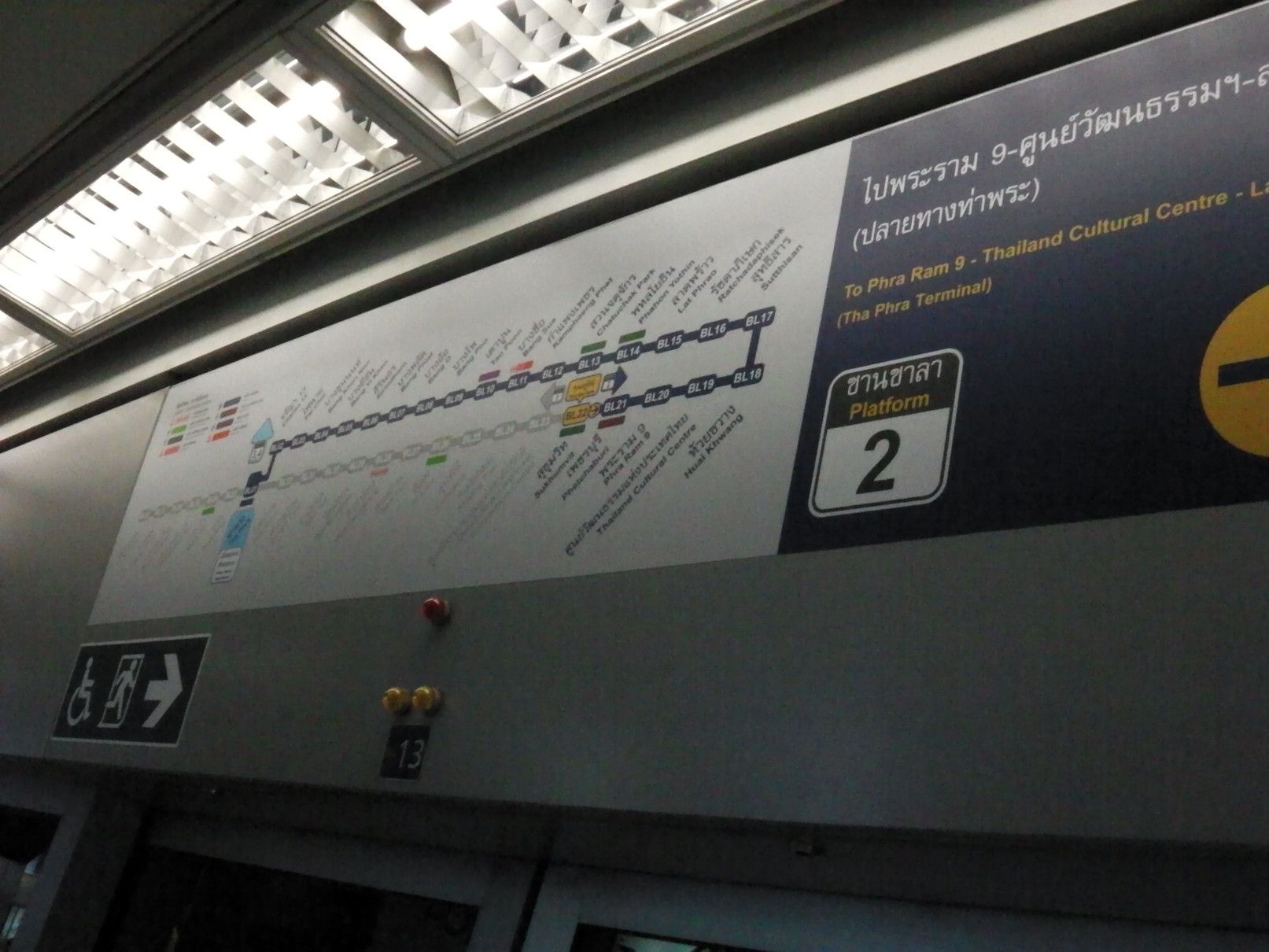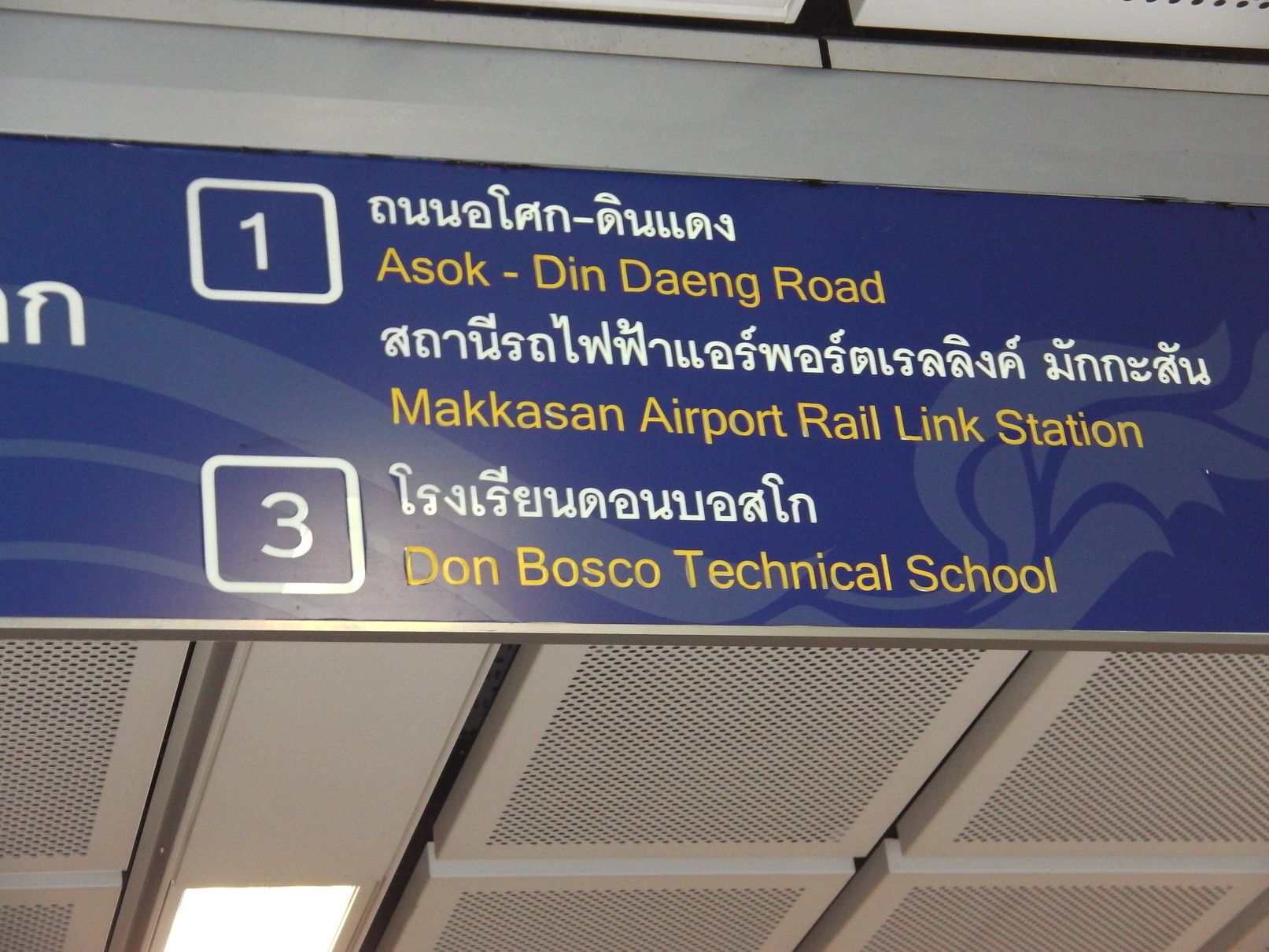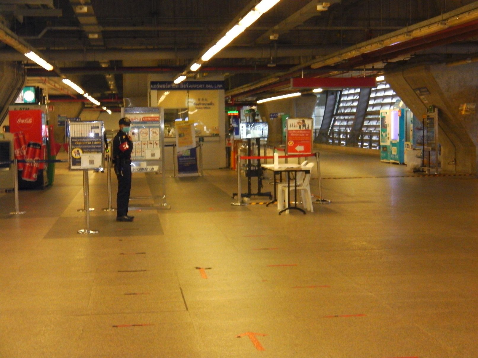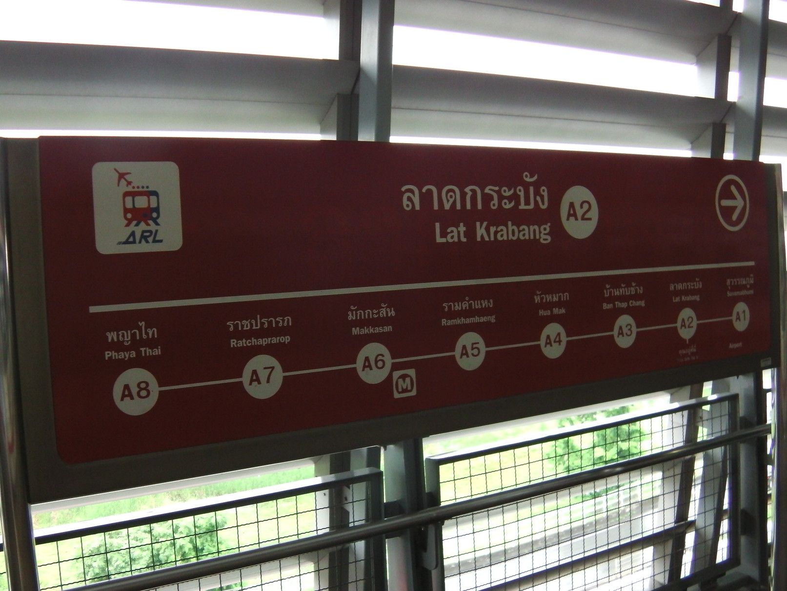 就職活動からの気分転換で、ある場所を散策する目的で出掛けた。経験を活かして貢献したいし、安月給でも、いいぞーーーと思うけれど、ジジイには遠い道。気分転換の小旅行。 まずは、BTSでアソーク駅で下車。 そして、MRTに乗り換え。 こんな巨大な広告版を過ぎて地下へと降りる。 平日なので、人も少な目。 ラチャダー方面の乗り場で待つ事、10分ほど。 乗車区間は、一駅だけ。 ここから、エアポートリンクに乗り換えたいので、案内板でチェック。何しろ、初めての利用なので、何もわからず。今回の旅は、鉄道やバイクタクシーなどを乗り継がなければ行けない場所への旅。正直言って悩んだけれど、達成した場合は思い出に残る旅となるので決行となった。 1番出口で降りると、良さそうだ。 正式には、エアポートレールリンクのようです。そして、駅名は、マッカサン。 結果的には、一旦外へ出なくても良いように繋がっていた。 エスカレーターで駅へと向かう。途中の窓からのマッカサン駅の景色。 そして、これは通路からの景色。 バンコクは、ストリートアートが多いけれど、この旅の目的地にもアートがあると知っての旅でもある。 駅に到着。乗車券を購入しようと迷っていると、駅員さんが声を掛けてくれた。 自分は、お金を入れただけで、目的地への行く為のボタン操作は、全て行ってくれた。丁寧に挨拶して改札口へ。 切符ではなくコインで改札を入る。 ホームは、これだけの広さ。そして、暫く待っていると列車が到着。 そして、無事に乗車。 何と、乗り心地はBTSやMRTとは大違い。 揺れも少なく静か。そして、高速スピード。出入り口の雰囲気も丸で違う。そしてなんと、トイレも完備。 そして、到着。 この駅は、終点の一つ手前の駅。 いやいや。此処はまだ途中駅。