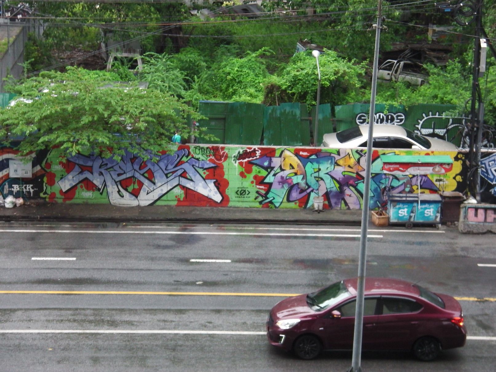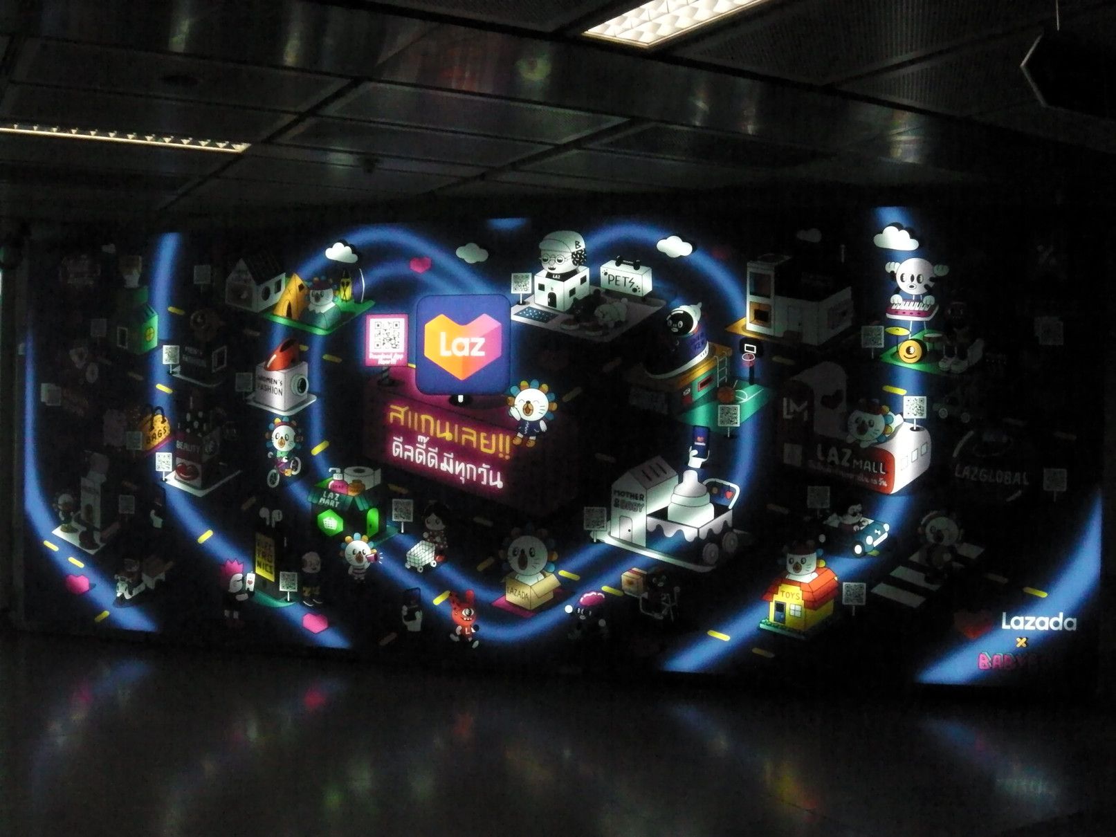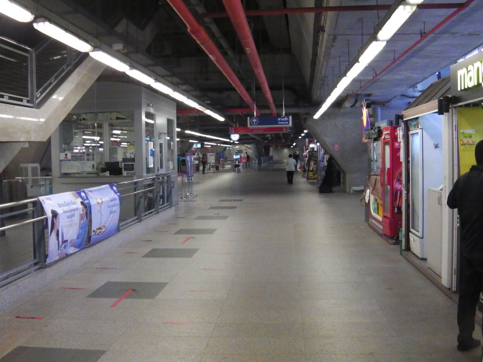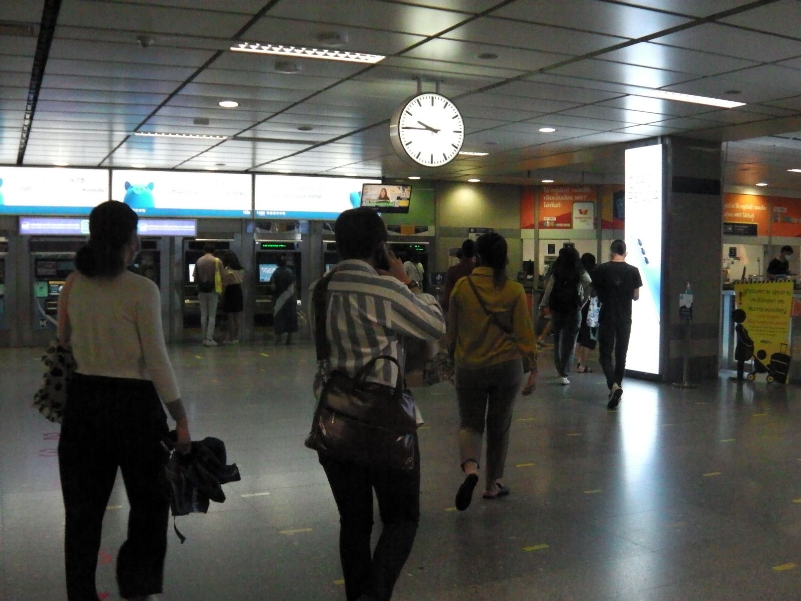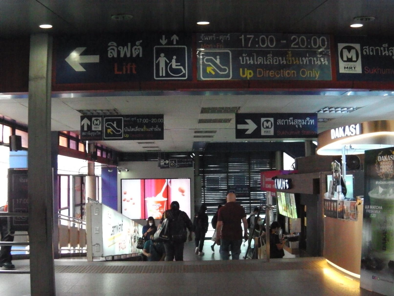 就職活動からの気分転換で、ある場所を散策する目的で出掛けた。経験を活かして貢献したいし、安月給でも、いいぞーーーと思うけれど、ジジイには遠い道。気分転換の小旅行。 まずは、BTSでアソーク駅で下車。 そして、MRTに乗り換え。 こんな巨大な広告版を過ぎて地下へと降りる。 平日なので、人も少な目。 ラチャダー方面の乗り場で待つ事、10分ほど。 乗車区間は、一駅だけ。 ここから、エアポートリンクに乗り換えたいので、案内板でチェック。何しろ、初めての利用なので、何もわからず。今回の旅は、鉄道やバイクタクシーなどを乗り継がなければ行けない場所への旅。正直言って悩んだけれど、達成した場合は思い出に残る旅となるので決行となった。 1番出口で降りると、良さそうだ。 正式には、エアポートレールリンクのようです。そして、駅名は、マッカサン。 結果的には、一旦外へ出なくても良いように繋がっていた。 エスカレーターで駅へと向かう。途中の窓からのマッカサン駅の景色。 そして、これは通路からの景色。 バンコクは、ストリートアートが多いけれど、この旅の目的地にもアートがあると知っての旅でもある。 駅に到着。乗車券を購入しようと迷っていると、駅員さんが声を掛けてくれた。 自分は、お金を入れただけで、目的地への行く為のボタン操作は、全て行ってくれた。丁寧に挨拶して改札口へ。 切符ではなくコインで改札を入る。 ホームは、これだけの広さ。そして、暫く待っていると列車が到着。 そして、無事に乗車。 何と、乗り心地はBTSやMRTとは大違い。 揺れも少なく静か。そして、高速スピード。出入り口の雰囲気も丸で違う。そしてなんと、トイレも完備。 そして、到着。 この駅は、終点の一つ手前の駅。 いやいや。此処はまだ途中駅。