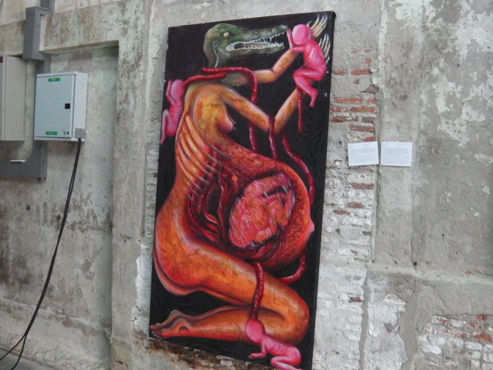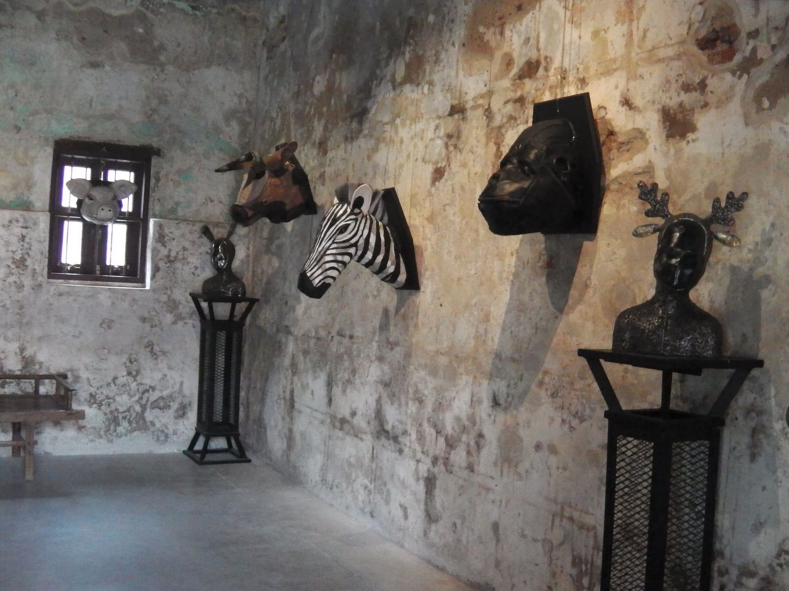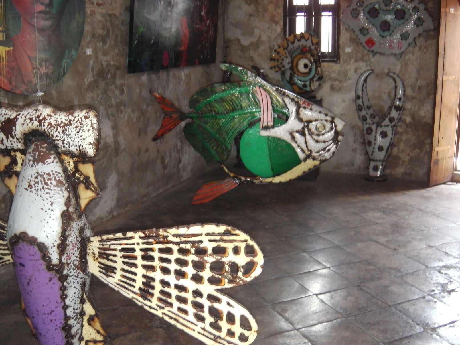 LHONG1919で壁画を楽しみ。。。 改めて、何処かでコーヒーでも飲んで休憩したいなと思った。 ただ、外観からは何も店のような店舗が見つからない。 実際に、通路に沿って歩いてみると、店舗では無くてギャラリーとなっている場所が多い事に気が付いた。 中を、覗いてみると、このような感じで展示物が飾られていた。 これにも、楽しみがあり、一つ一つの部屋を覗いて観賞を楽しんだ。 もう、楽しくてたまらない。 絵だけでは無くて、こんなオブジェも。 この発想の面白さに、感動と言うよりは、発想の面白さに浸ることが出来て楽しむ事が出来た。