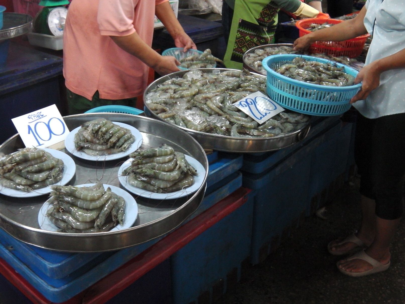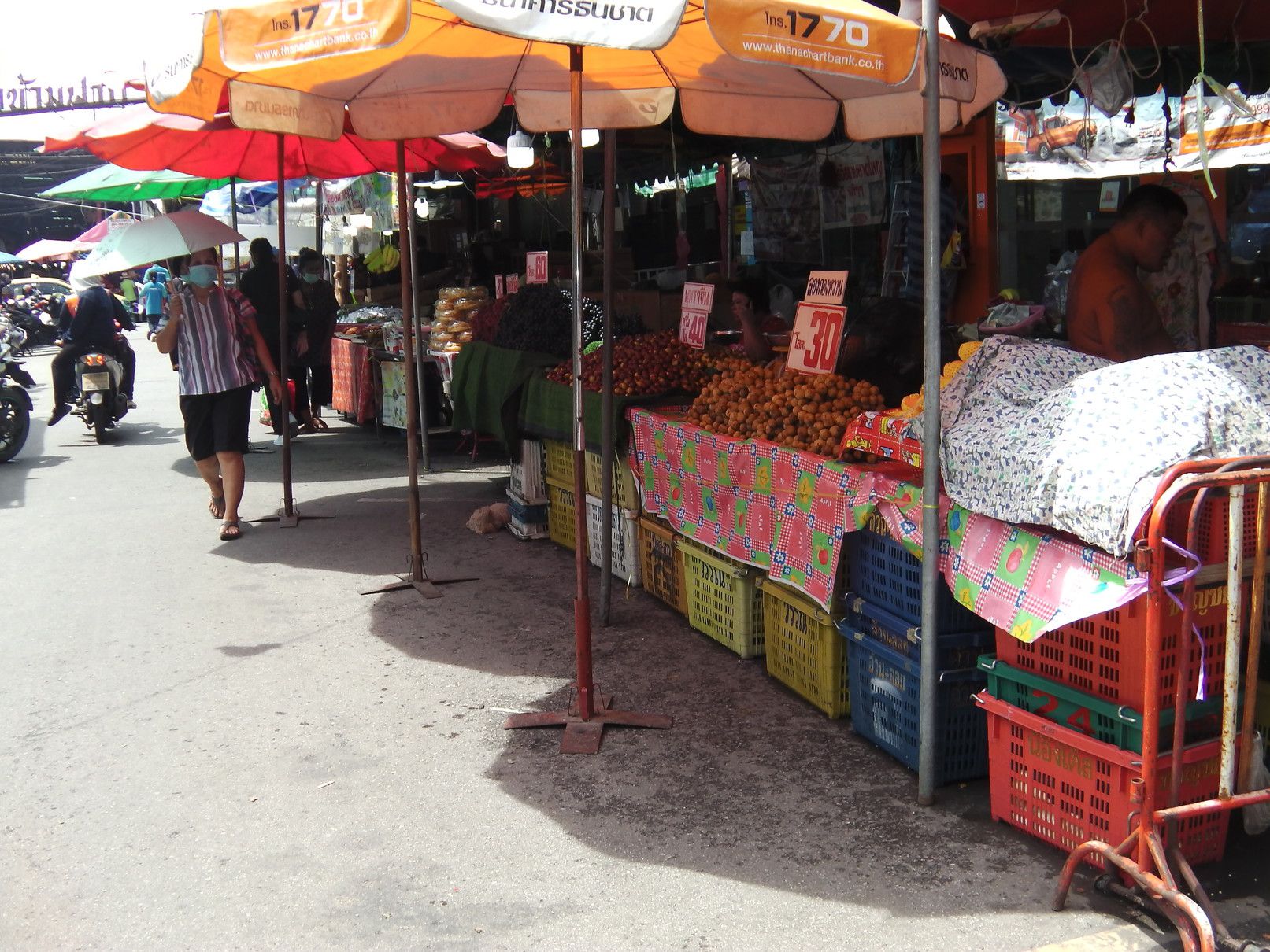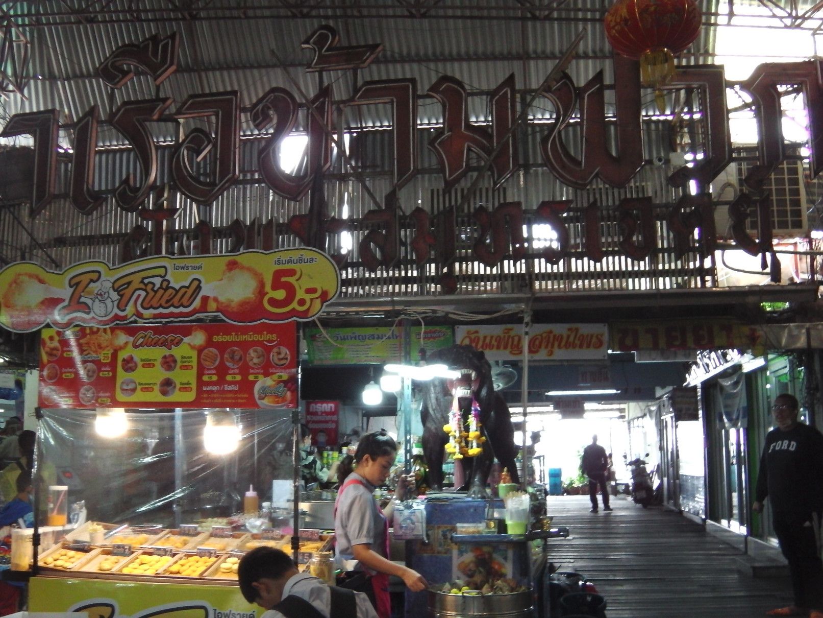 もう、何度も来ているけれど、こんなのは初めてだった。非常に歩き辛くて暑いのでローカルのショッピングモールに涼みに入った。 4階のフードコート。 カフェラテが20バーツ。ローカル値段。イイですね。。。 30分ほど休んで外に出ると、こんな感じで凄い! 車も行き来する道路なので、歩き難い。 何んとか市場に入ると、外とは全く異なり、普段道理の様子だった。 入って、ドン突きに在るのは渡し船の船着き場。いつか渡ってみたいと思いつつ、実現するに至らず。 ドン突きを左に曲がると、目的の乾物屋が集まる場所で、その奥は生鮮食品の店となる。 海老でも買って帰ろうか悩むが、食べるには手間がかかると思い。。。悩む。 乾物屋さんに戻って品定め。この時間が楽しい。 買い物が終わって、BTSの駅に向かうが、日陰の方を歩く人が多くて歩き辛く、暑い場所を我慢しながらトボトボ。 所々にソイもあるのだけれど、そこにも出店がギッシリ。一体何故??何の祭り?? 各店には、美味しそうな物も売ってはいるのだけれど、物凄いハエだらけ。買いたいとは一切思わず。 何んとか駅に到着。 こんな物を買ってきました。