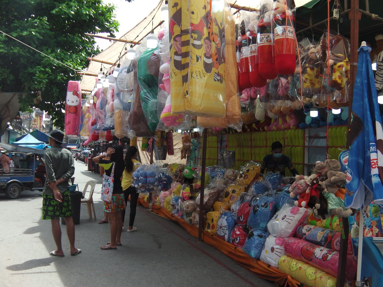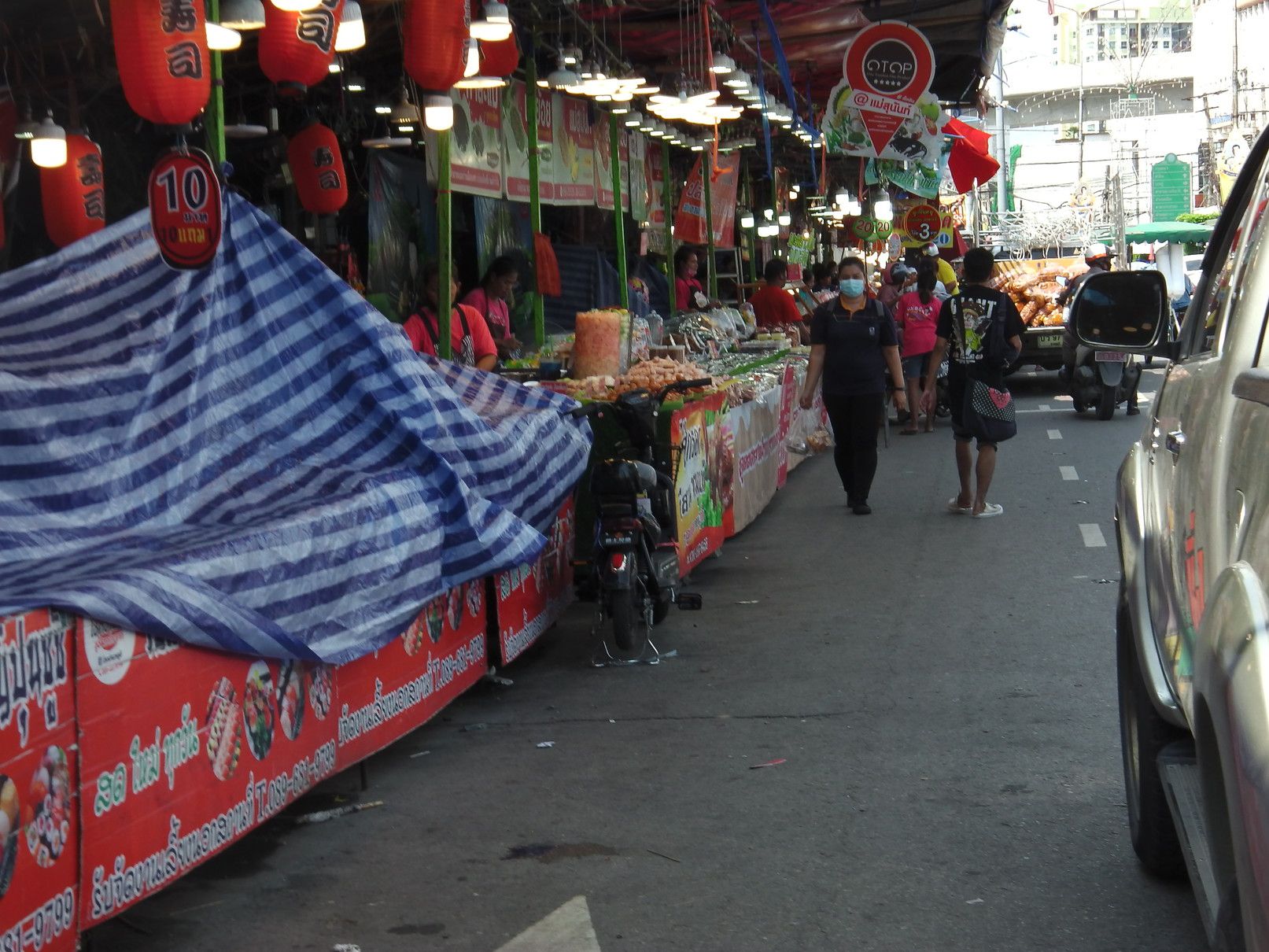 パクナム市場周辺は、のんびりした雰囲気で買い物ができる。 しかし、この日は全く違って、お祭りだったのか??道路の両脇には、出店だらけ。