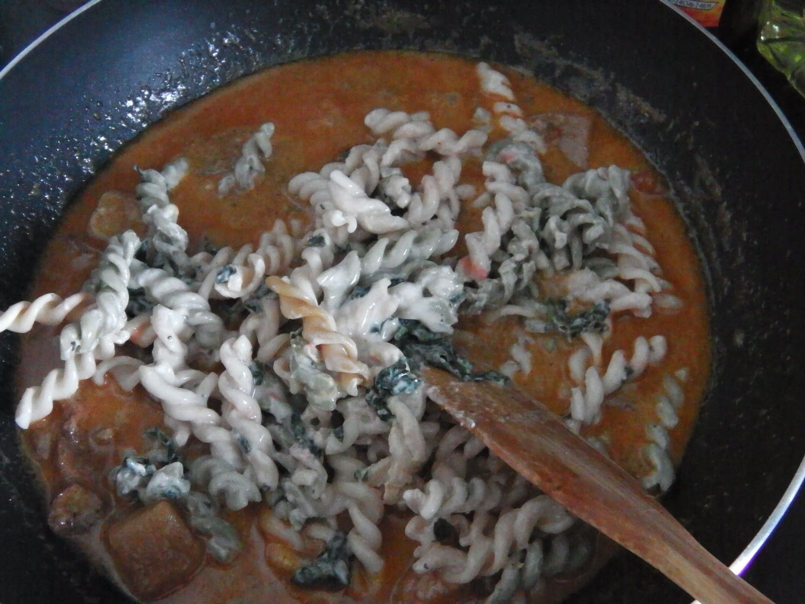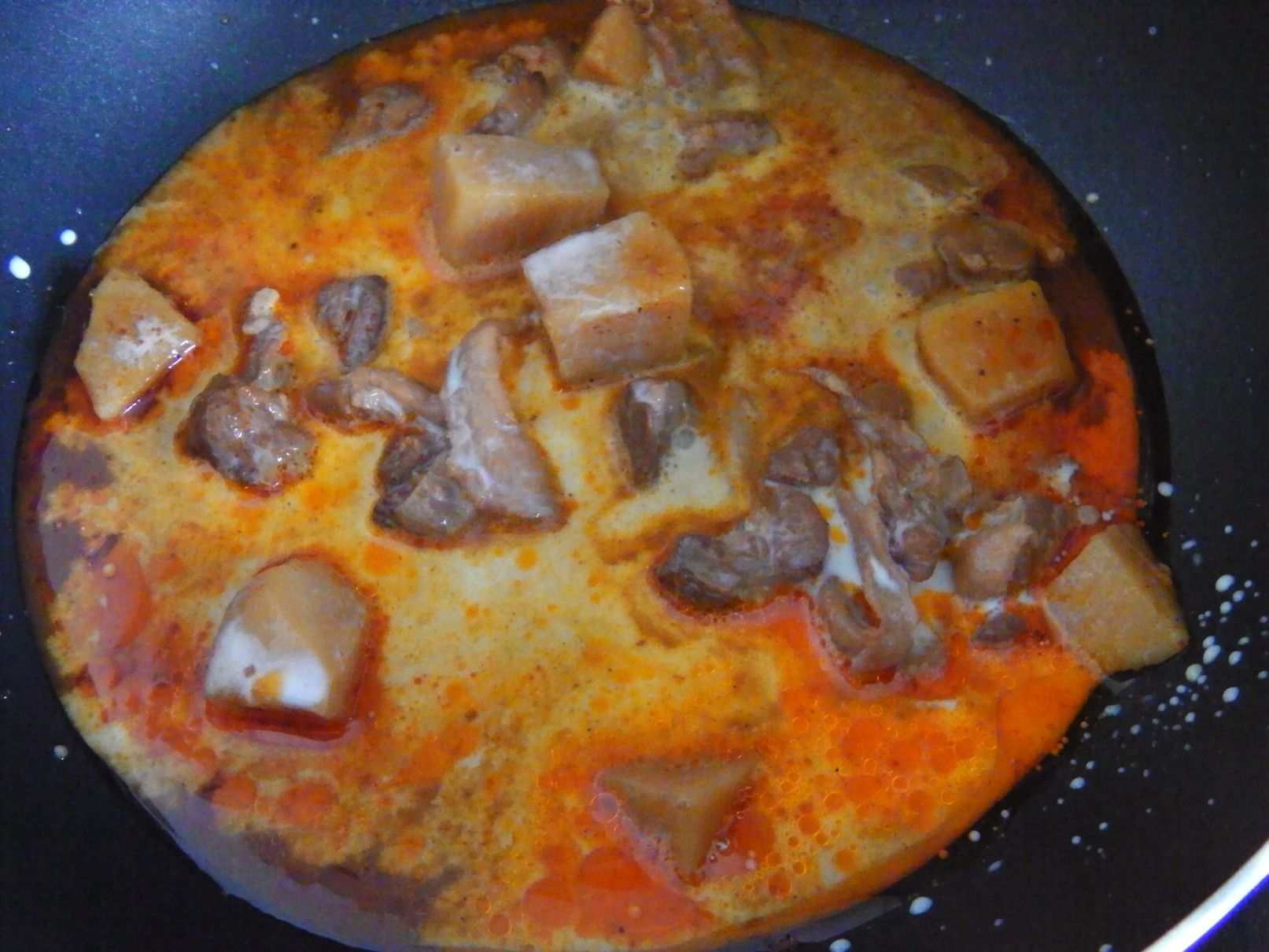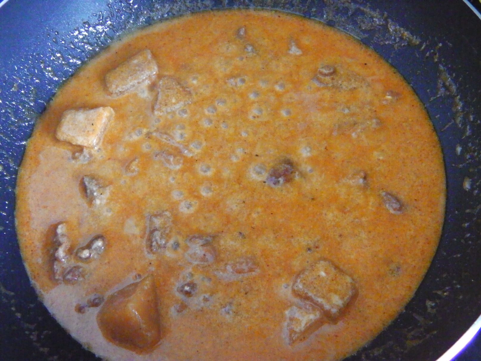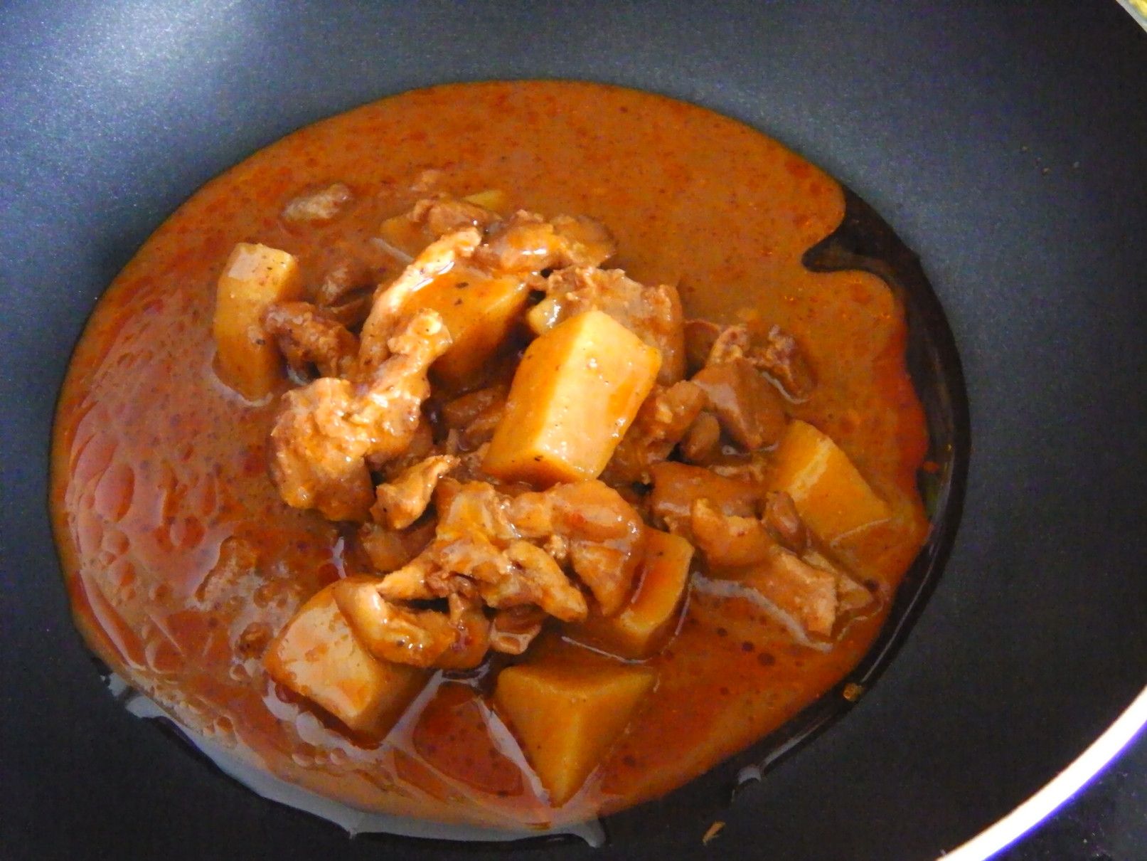 しかし、これぞ!と思える料理は無かったが、使い方は何となく理解できた。 そこで、冷蔵庫の中などから保存している食料を取り出して、えいやー何んとかなるべーー!の気分で料理にチャレンジ。 まずは、以前に茹でていたマカロニを冷凍庫から取り出して解凍。 美味しさのあまり、買い込み過ぎたマッサマンカレーの缶詰。 そして、牛乳。 まずは、マッサマンカレーの缶詰を開けて、フライパンへ。 これを、温める。 牛乳を入れて、更に温める。 そこに、チェダーチーズを投入。 トロトロ感が出るまで、チェダーチーズを加えた。 良い具合になったので、マカロニを投入。 ここから、少し煮込んで火を止めた。 ピザ用のチーズを取り出した。 金属の容器に全てを入れ込むと、てんこ盛りに。 チーズをのせて、オーブントースターで、少しだけ焼いてみた。 完了! 酎ハイマナオのつまみにバッチリ!!!