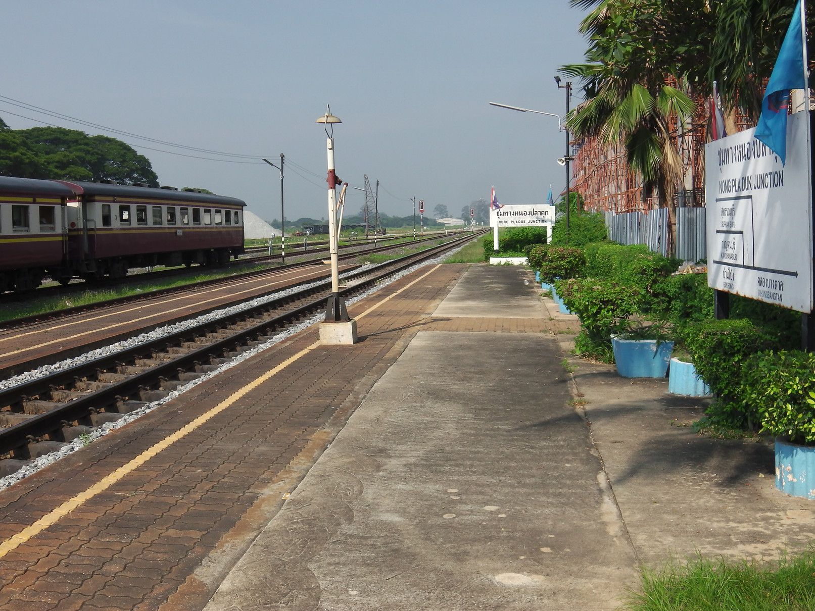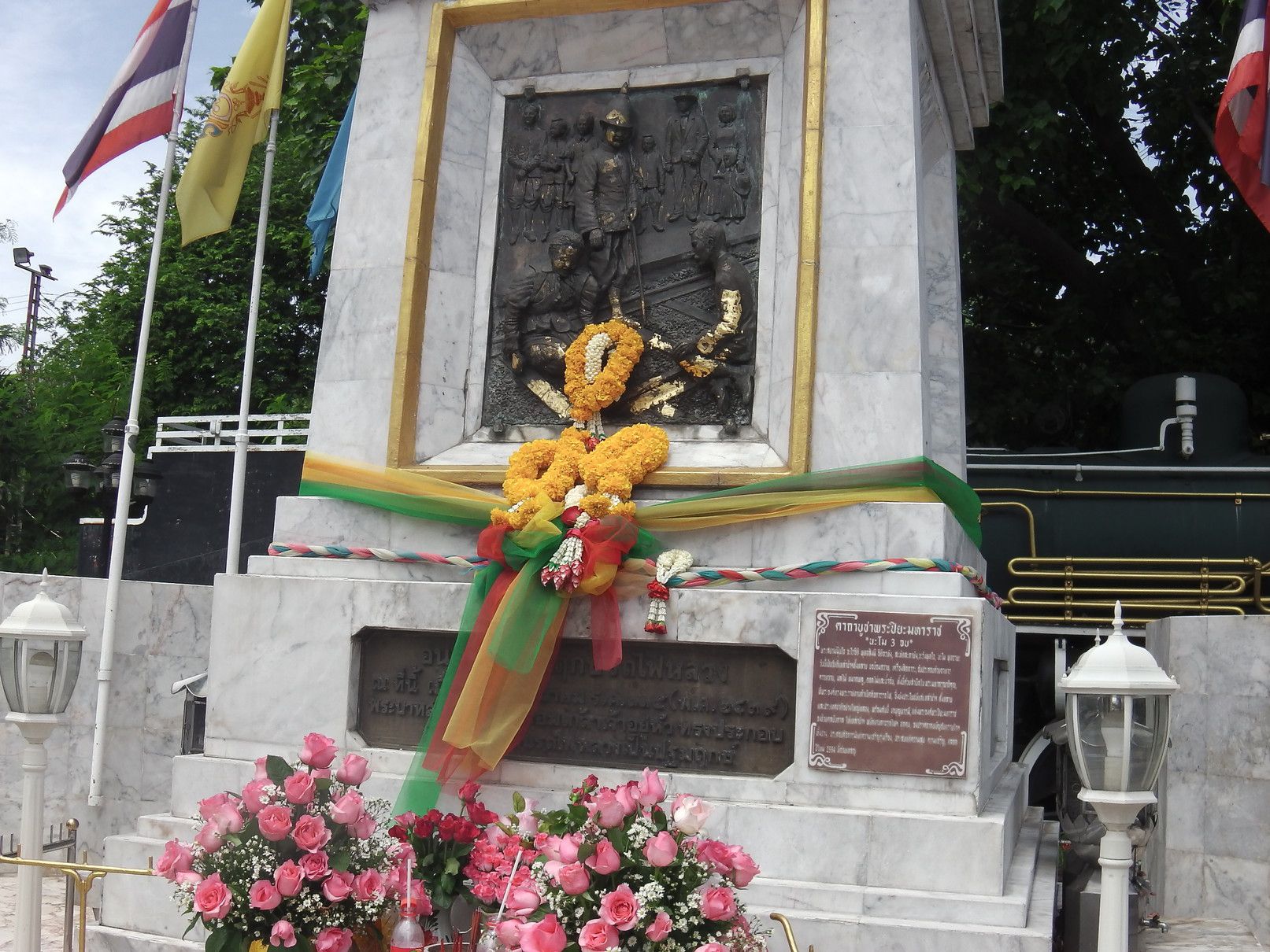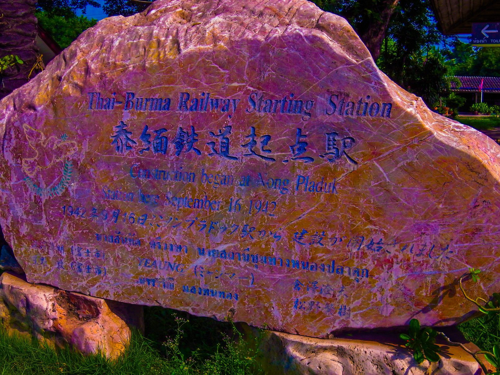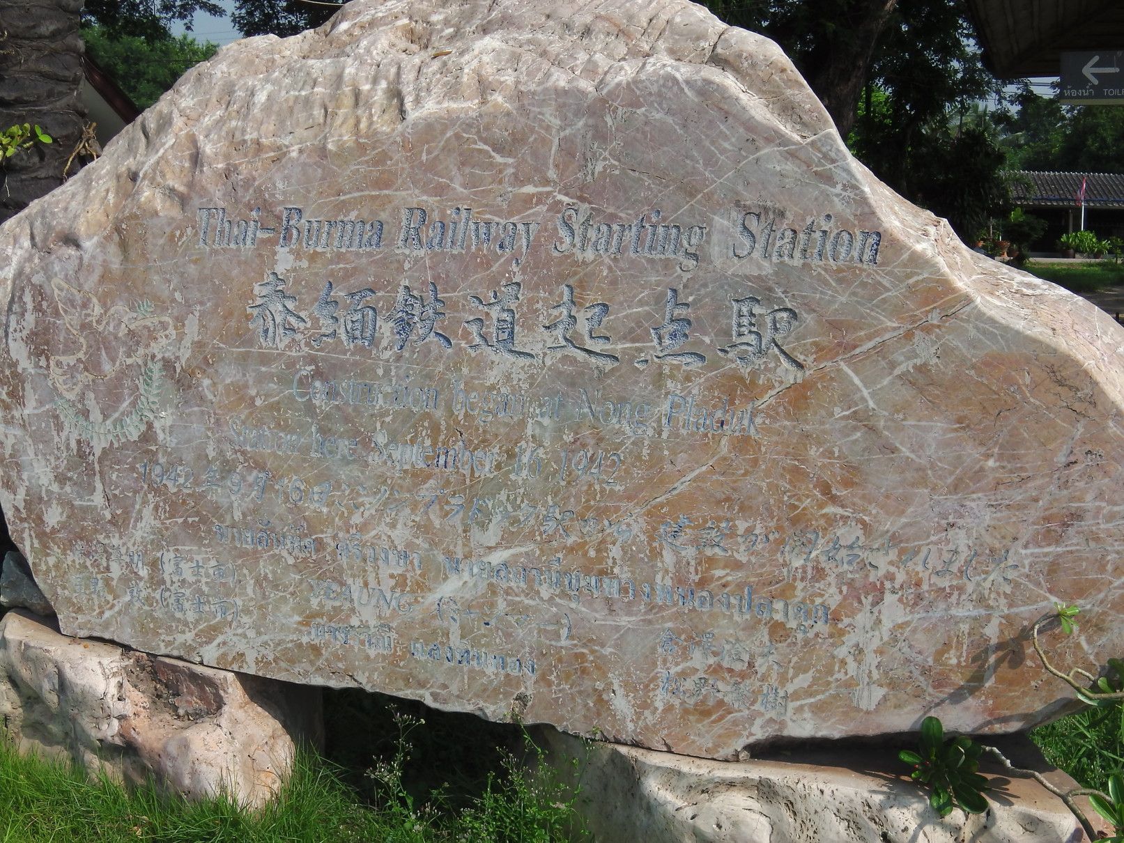 実は、日本から輸入されたDD51を見に行った際に、その駅が泰緬鉄道起点の駅だと分かりました。記念碑もありましたが、文字が読み辛く、少し写真編集ソフトを使って分かり易くしてみました。