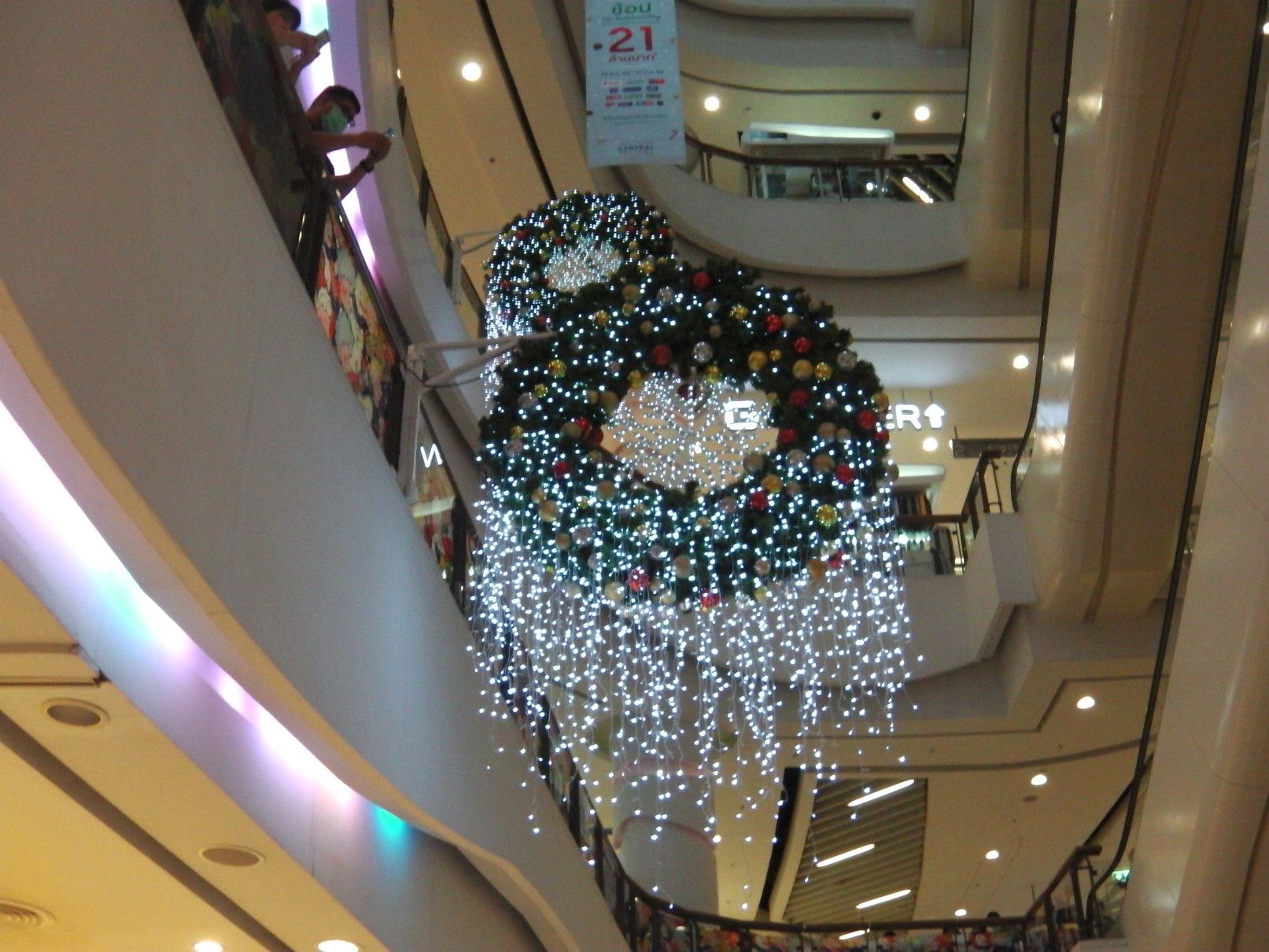 フォーチュンタウンでの昼食が終わり。。。 MRTに通じる地下の通路を使って、道路を隔てて向こう側に在る、セントラルデパートで夕食でも買って帰ろうと向かった。 初めて入るので、何処に何があるのかは、全く分からない。 ただ、上を見上げると、クリスマス用と思われる飾り付けがされていて、眺めていると、少し離れた場所にツリーが見えた。 近づいて見ると、大勢のタイ人男性達が群がっていた。