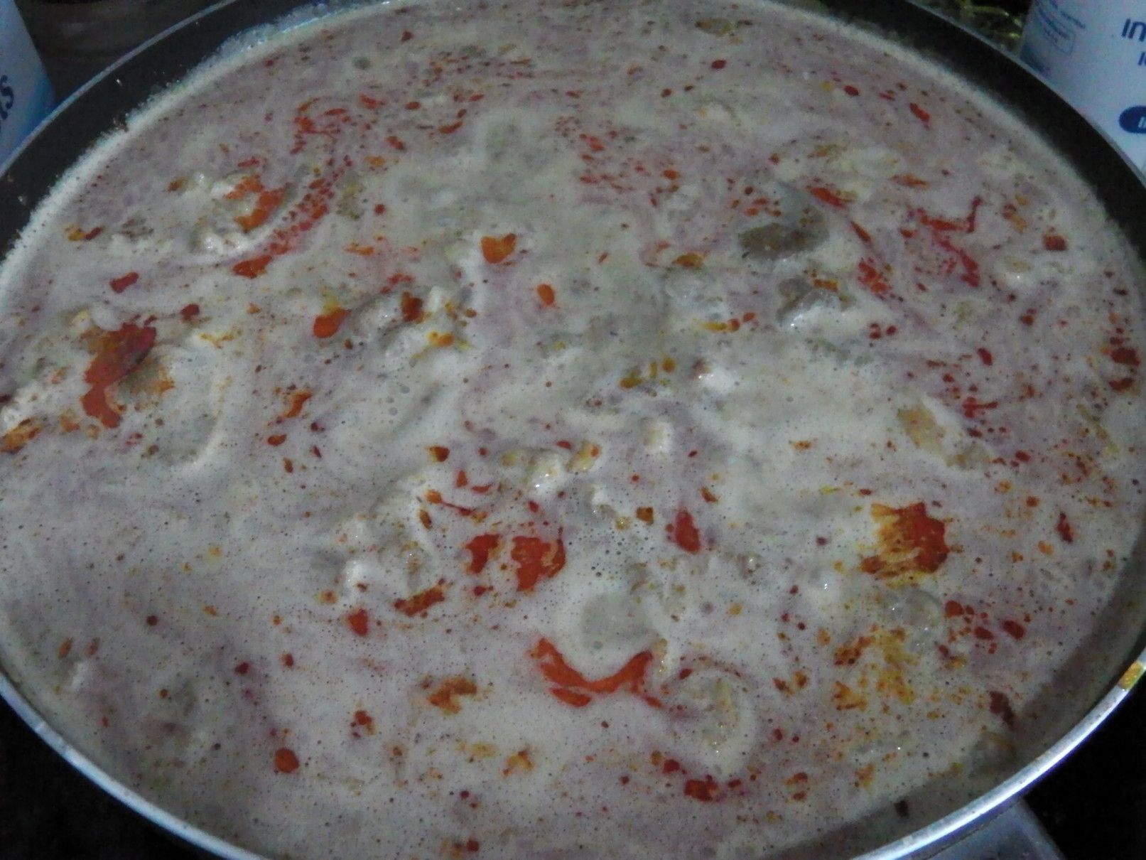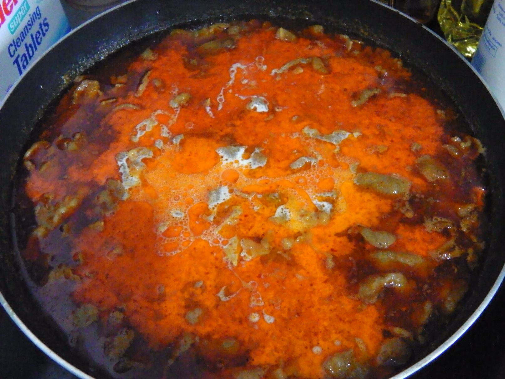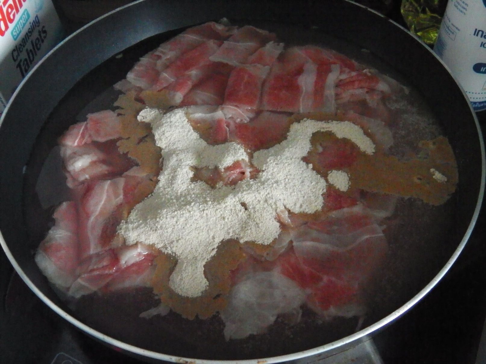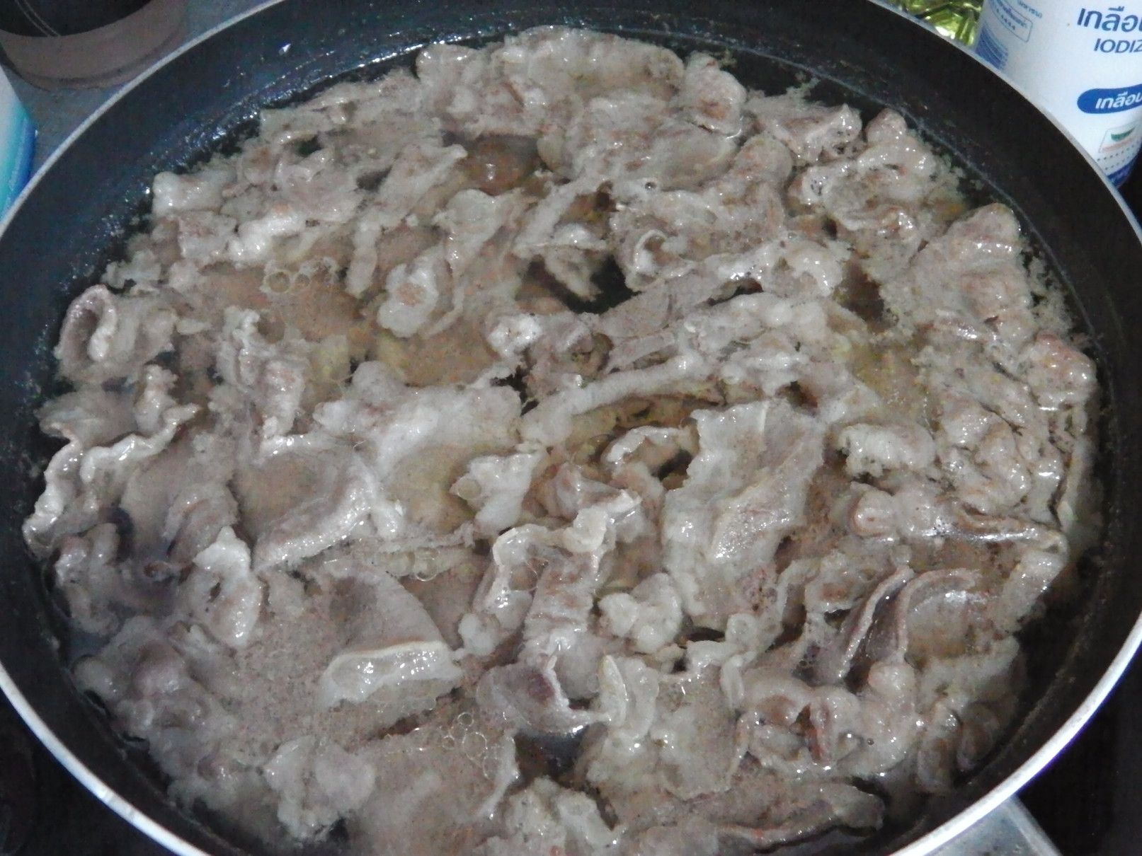 前回に、カオソーイガイを作った際に分かったのは、もう少し味に深みが欲しかった事。 少し安易ではあるけれど、ペッパーとガーリックの粉末調味料を加えてみる事にした。 細目に灰汁を取って柔らかくなるまで煮込んだ。 今回は、色々な調味料を用意して、味見をしながら作る事にした。 弱火で、ゆっくりと煮込んだ。