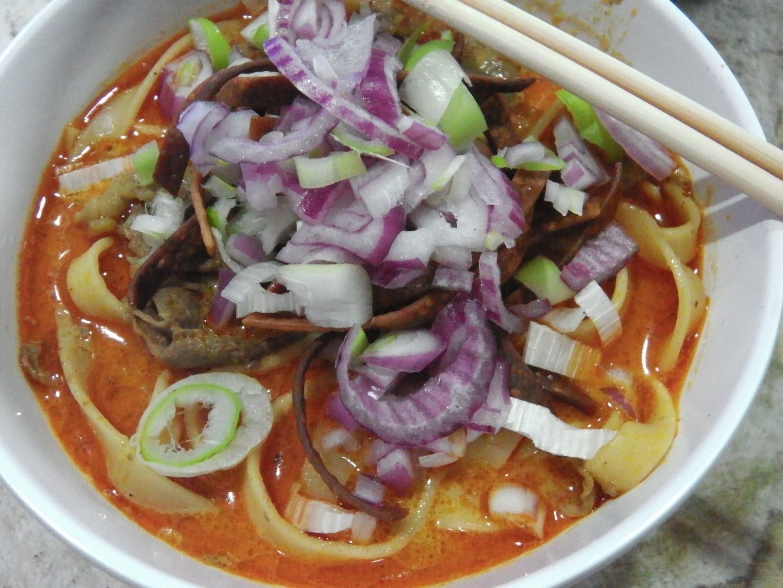 冷凍庫に保存して、結構な時間が経ってしまった牛肉を取り出した。 焼肉にすれば美味しいのは既に確認済なので、他の料理を考えて、カオソーイで食べてみる事にした。 先日に、マクロで購入したカオソーイのペースト。