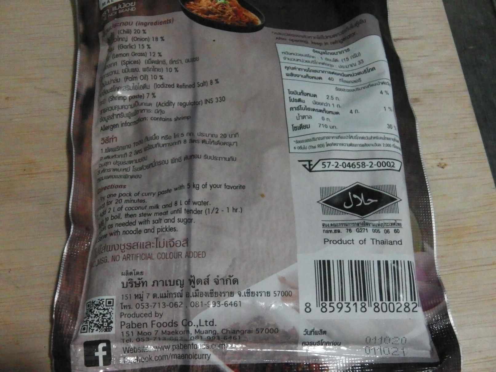 2,3食分程度の量を作るにしても、使用する量は、それ程でもなく、これも万が一を考えて冷凍庫で保存。 風味は間違いなく、美味しいペーストと感じる。 メーカーもチェンライであり、カオソーイの本場かな?