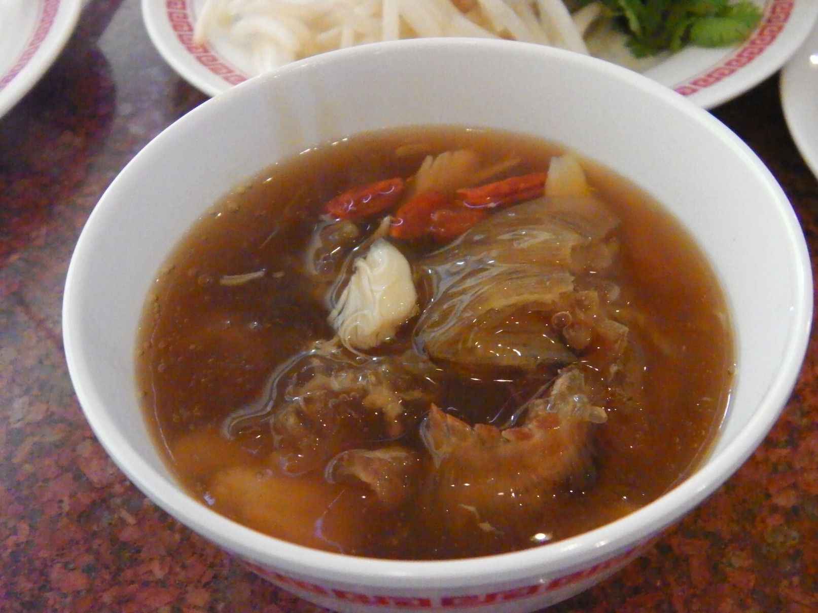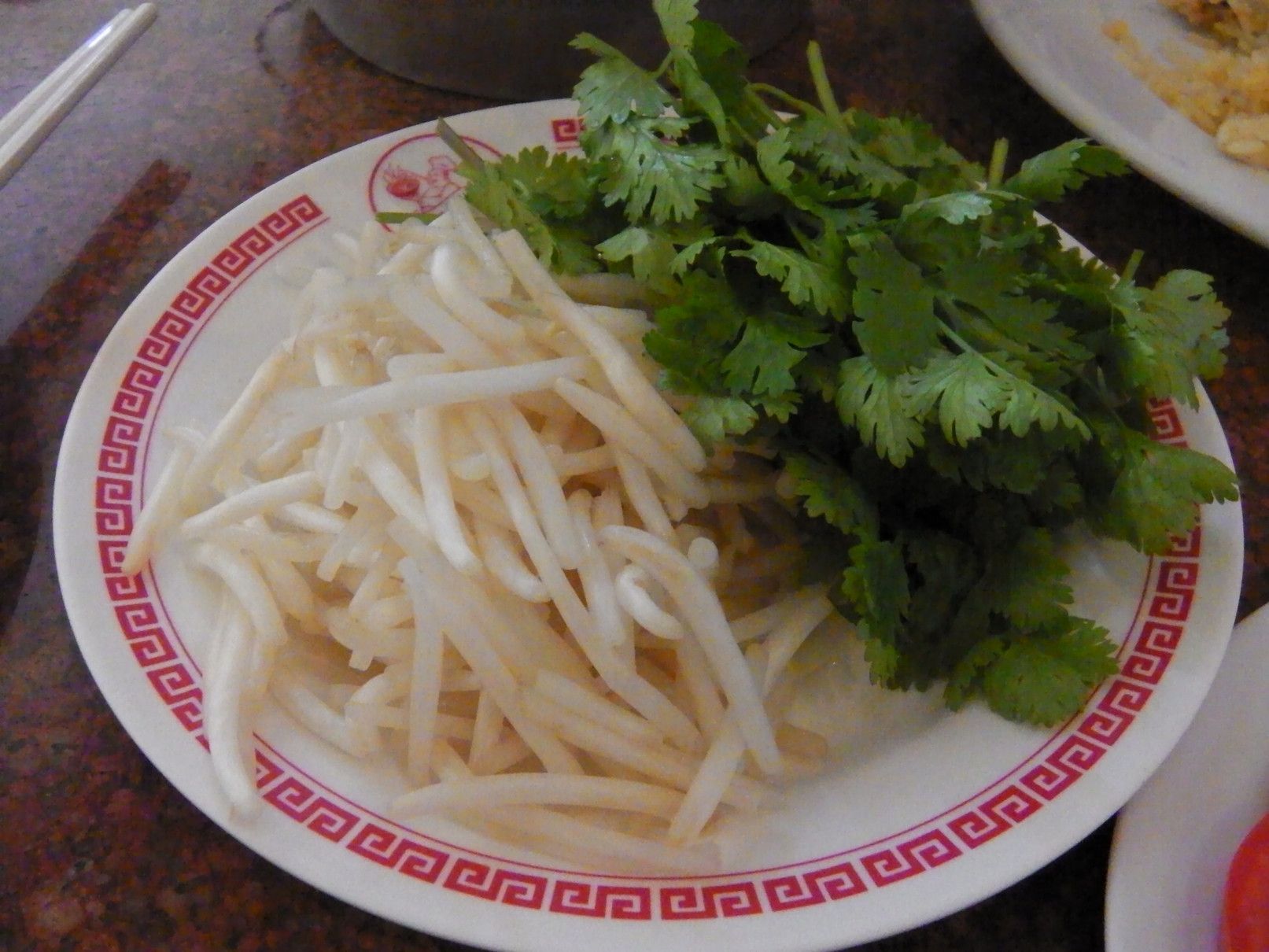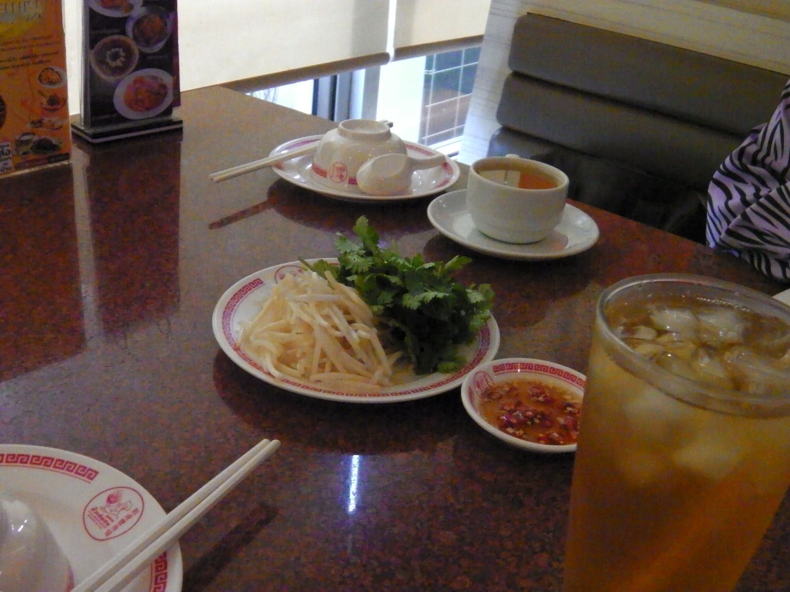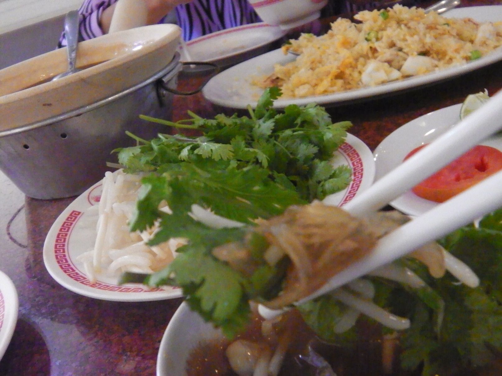 2人でも充分に味わえる量。しかも、450バーツ。 沸騰中。 もう、文句なしの美味しさ。 パクチーとモヤシを入れて食べるらしいので試してみると。。。 いやいや。。。不要ですね。