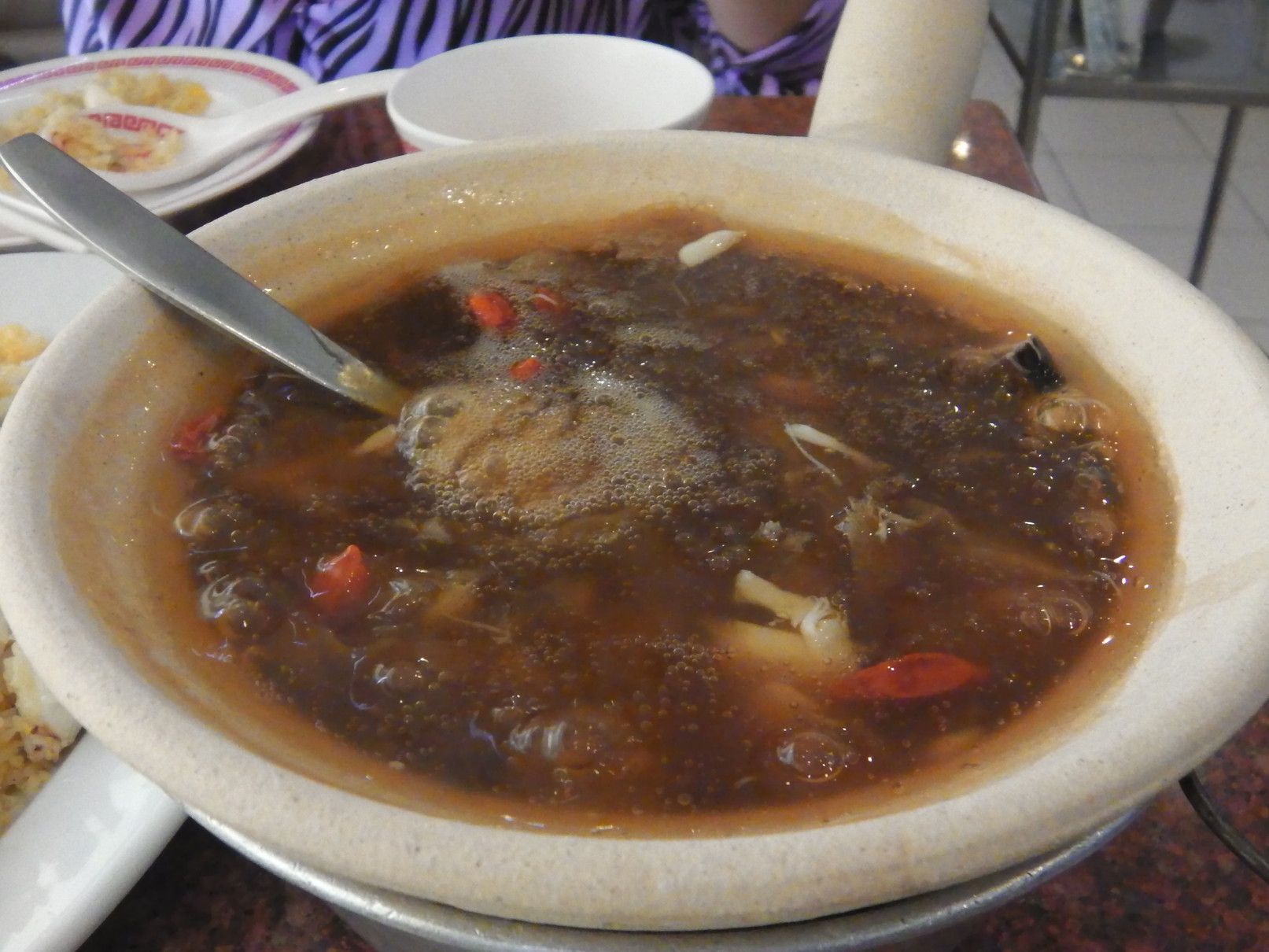 今年最後となる相方とのランチを話し合った上で中華料理にする事にした。 そうなると、意見はすべて一致して”和成豐”となった。 とにかく、個人的には、この界隈では断トツに美味しいと感じるし、値段も高くはない。 まだ、昼少し前の時間だったので、混んでは無かった。 メニューは、分厚いので、ほんの一部ではあるが。。。 話し合った末に、スープとチャーハンをオーダーするだけで、二人ならば満腹になってしまうと判断。その他に食べたい料理があれば、持ち帰ろうと決めた。 オーダーしたのは、シャークフィンスープと蟹チャーハン。 まずは、チャーハンが運ばれてきた。 非常に良い香り。 程好いパラパラ感が大好きだ。 そして、シャークフィンスープ。