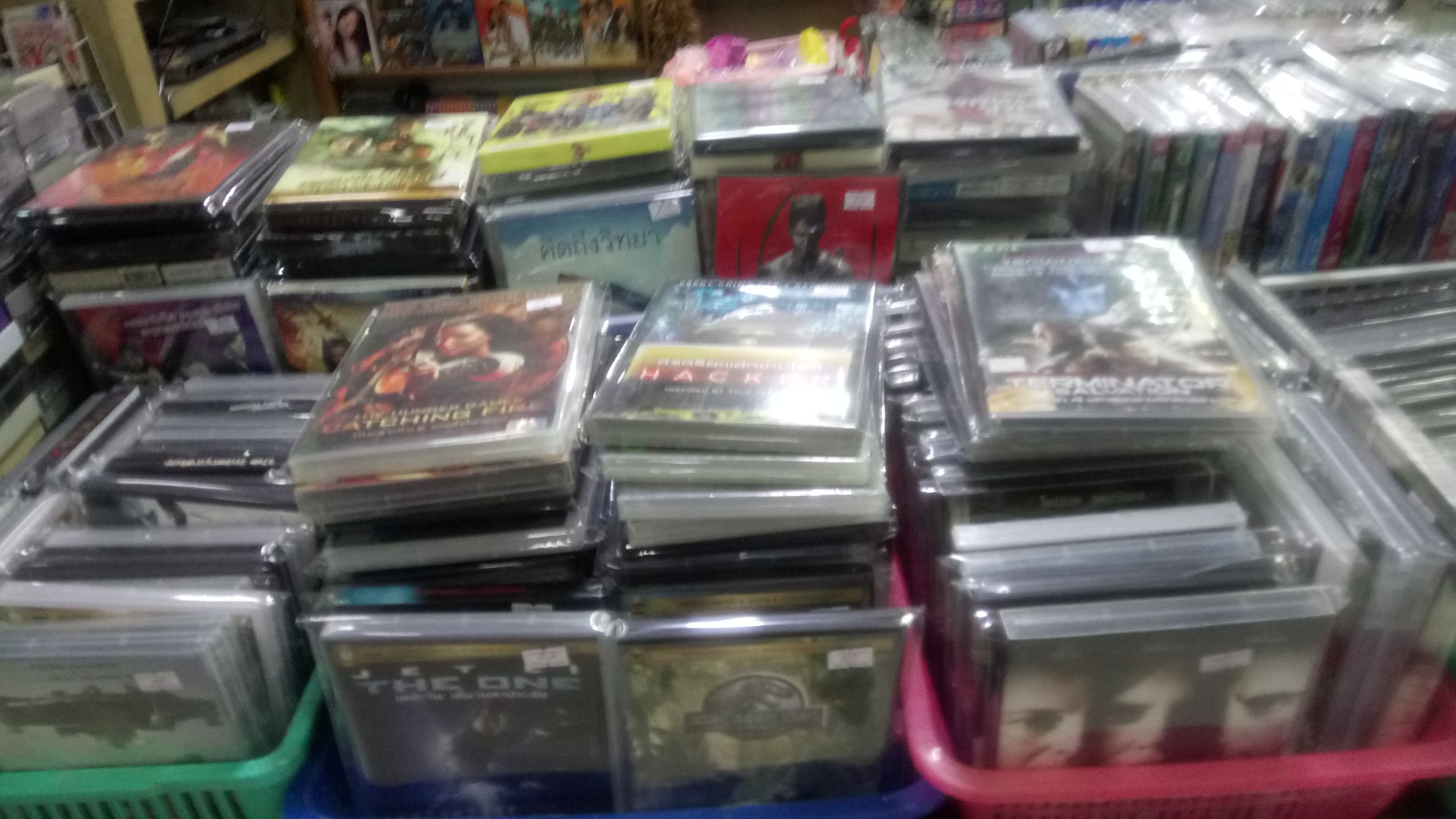 ぶらりとサムローンへ。 目的としては、部屋での観賞用のDVDと食料の購入。 そして、インペリアルワールドデパートの5階の売り場でDVDをチェック。 売り場には豊富な在庫が有ると共に。。。 このように棚に積まれているので、チェックするのに苦労する。