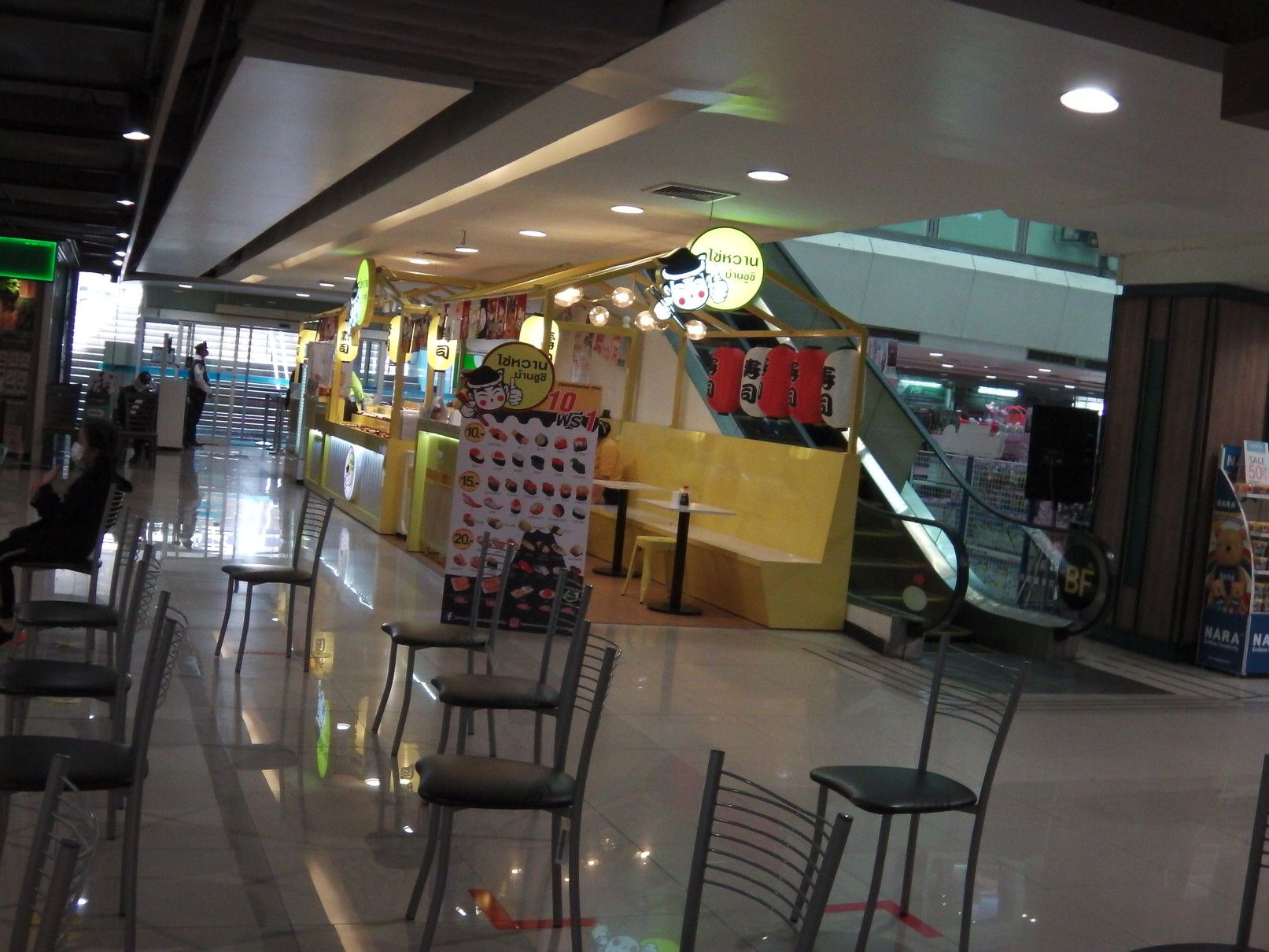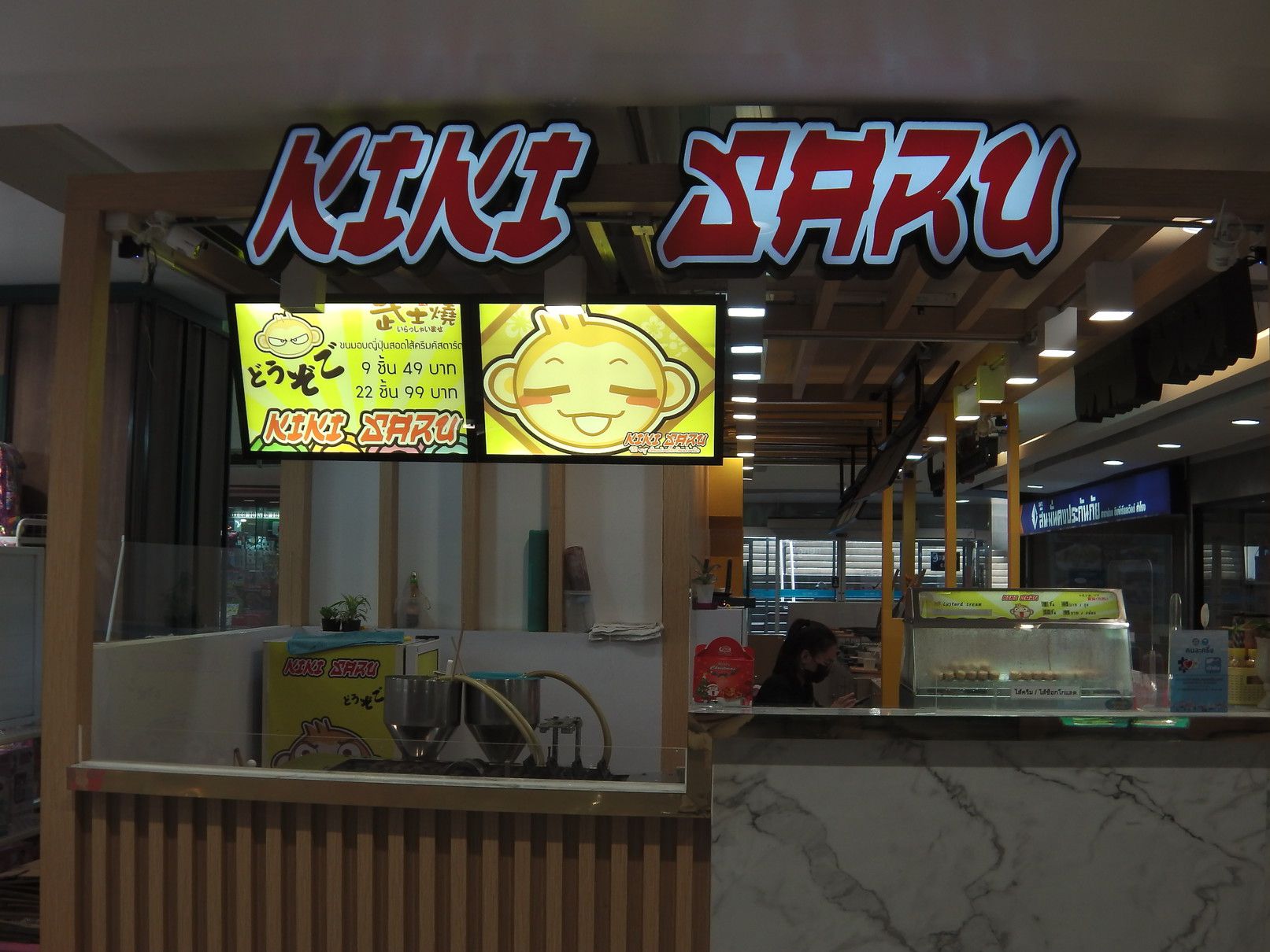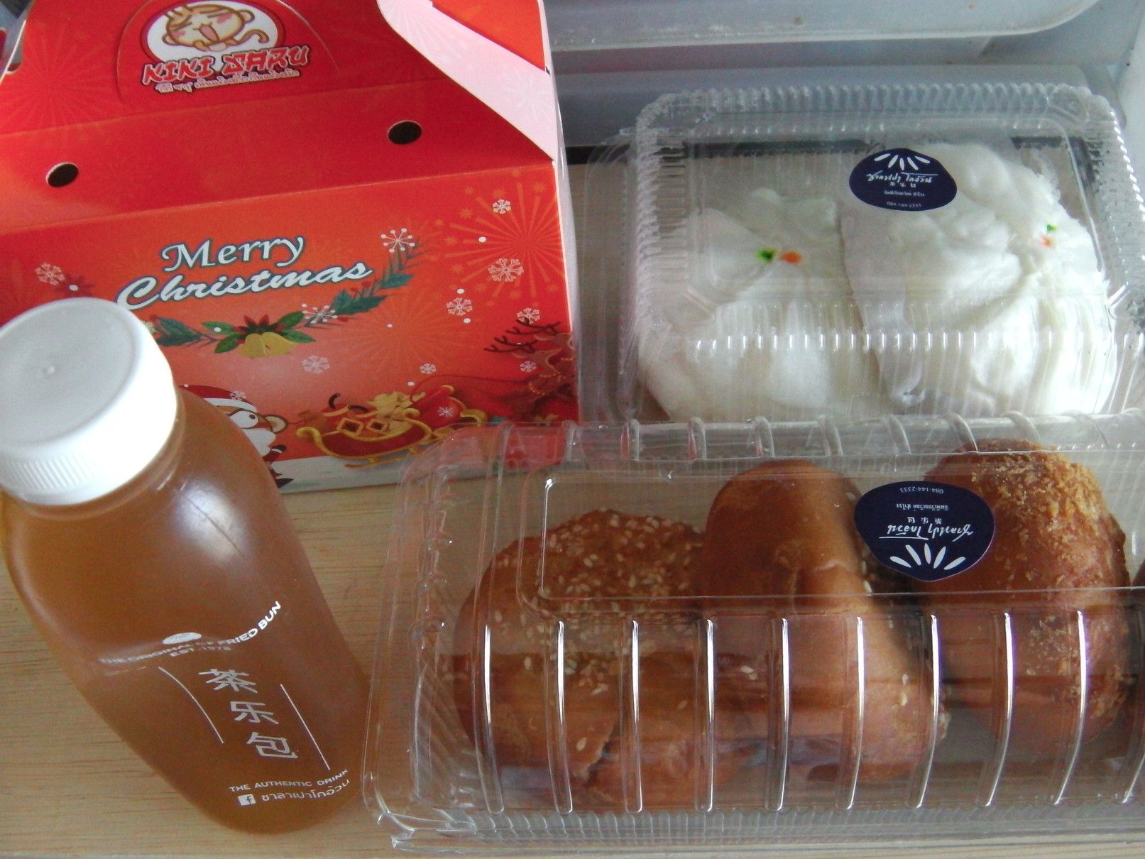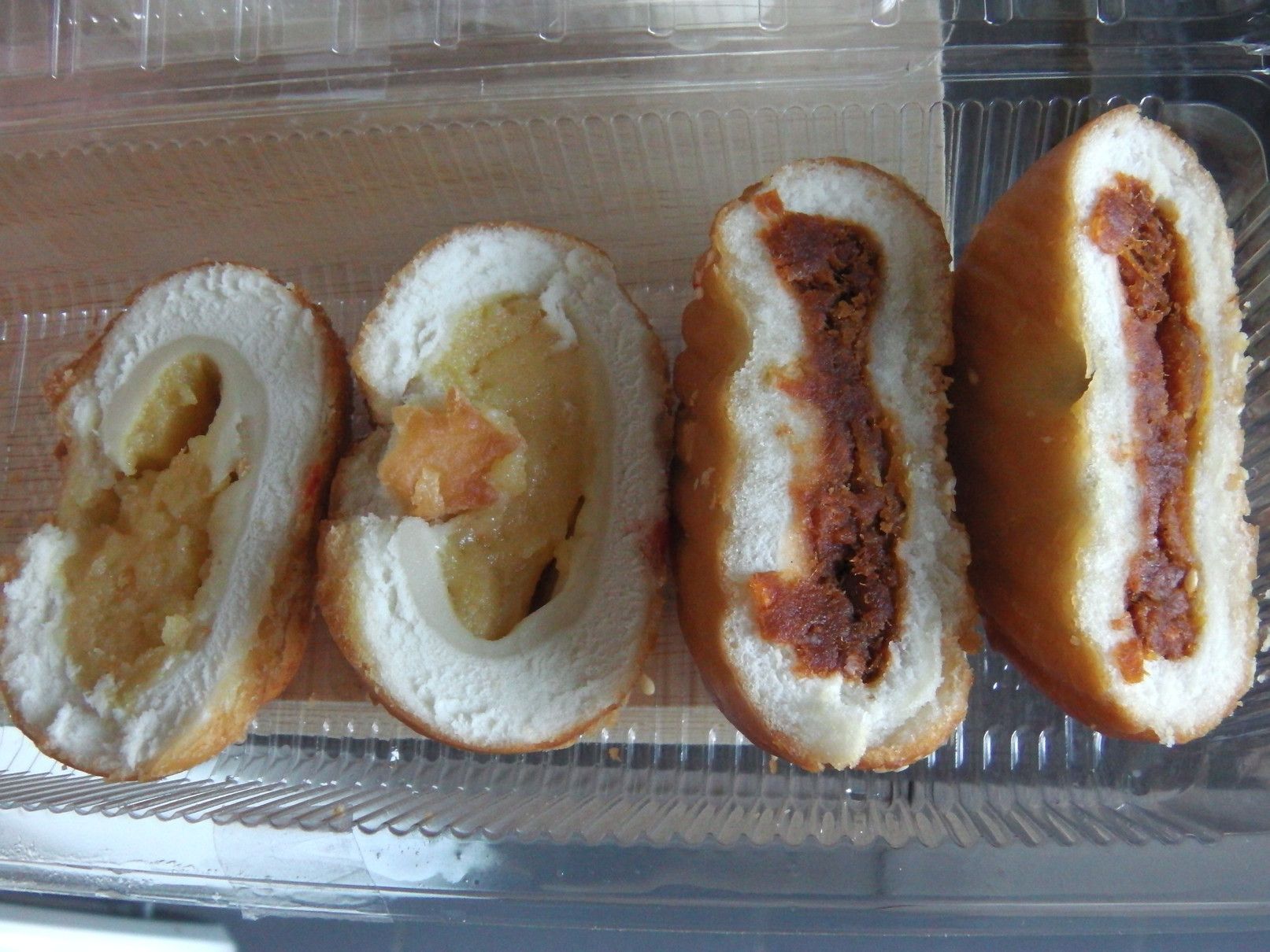 1時間くらいは見てまわったけれど興味を持った物は発見できなかった。 従って地下の売り場へ。 この階は、レストランやフードコートがある。 こうしてチラチラ店を覗くと、日本語が時々目に飛び込んでくる。 これが、フードコート。 目が留まったのは、この店。 面白そうなので、購入。 そして、帰ろうと思い1階に上がると、この店にも目が留まってしまった。 美味しそうな品々。 どちらも美味そう。 ついでに、お茶も購入。 全部一気に食べる事は出来ないので、何回かに分けて食べる事にした。 まずは、これを摘まんで食べると。。。 チョコとクリーム。 クリームと豚肉。 これは、豚肉??と卵の黄身。と注文するも通じていなかった可能性もあり。